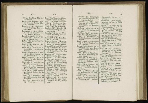 BWïJÖïiiüïïï .' Si BO . bij de Kapelfteeg No . 78 ,~ Kopetfla^er . Boom , ( H .) Keizersgr . over den Gouden Ketting No . 241 , Makelaar . Boom . ( A.L P .) Leijclfcheffr . bij de Keizersgr . No . « 6 , Med . Doet . Boomgaard , ( J - E .) Prinfen - gr . bü de Kruisllr . No . 12*2 , Kantoor Bediende . Bpomheuver , ( H . D ) Wees - perftr . bij de Kerkïlr . No . 2d , in Droogerijen . Bo&s , ( H ) GravenflraatNo . 14 , Tapper . Bootz , ( H ) Bloemgr . No 95 , Fabrijk . Booy , ( J . C ) Hoor te van de Kadijk No . 1 , Scheepstim merman . Booy , ( N .) Geld;tfche Kade bij het Kamneihocfd No SP , MastenmaKer . " Booy , ( Haring ) vier Win - denftr . No . 26 , S cheeps timmerman . Boas , ( B . EO Jodenbrcêilr ., No . 70 , Logement . Boas , ( D . ï . ) Kloveniers burgwal-bij de Staailtraat No . 3 , Advocaat . Boas , ( J . SO Joden Heeren - gr . No . 5 , Splitter in de Loterij . Boas , ( M .) Weesperflr . bij de Keizersgracht No . 3 , Koopman . Boss , ( S ) Houigiacht No . 37 , Procureur . BO . Boas , ( S .) Mmderar.Nc 6 , Commisfaris van Policie . Boas , ( S .) Joden Amflellrr . No . 1 , in Garen en Line , Boas , Jz . ( TO Zwanenbur - gerilr . No . 13 , - Koopman . Boasfo , ( M ) Kalverfrr . bij de Olicflagerfteeg No . 157 , ■ Kleermaker . Bocard , fC .) op het Water bij de Kapellteeg No . 98 , Hoeden w'iikel . Bock , ( W J . de ) Ramskooi No . 6 , T pper . Bock en Koenen , Heerengr . Z Z . tmCchen Me Utrecht ' ieheftr en Amflel No . 612 , Bock , ( Mevr . de ) Keizersgr . btj de Vijzelfh . Nj . 6:1 . Boddens , ( G .) op het Water bii de Kapellteeg No . 82 , Winkelier . Boddens , ( J ) P.-infcngr . over de Noorderitr No . 58 . Bödeker , ( J . C .) Anjeliersjr . No . 174 , Apotheker . Bodeman , ( J , H ) Nieuwen . dijk bij de Vrouwe-fteeg No . 50 , Koopman . Bodeman , (|. H ,) Vreden - burgfteeg No . 3 , Koopman ". Boeken , ( Wed .) rrinfen - wacht bij het Molenpad No . 220 . Boekhorst,(W .) op den Dam No . 18 , Topper . Boekhout . ( J . W ) Geldér - ffche Kade bij den Schrei - jerstoren No , 62 , Karga - door . SO . Boettmm , ( c .) Kaiveritr . hij de OlieflagerslteegNo . 151 , Knoopeuwinkelier.Boekman , ( J . M .) Voor- burgwal bij de Jonge Roe- loffieeg ; No . 29 , Knoopen- maker;Boekman , ( R ) Rockin bijde Kapel No . 146 en 147 , Tapper . K ' BoeIders,(Wed .) Martelaars - gr . No . 196 , Kruidenier . Bode , ( G .) Voorburgwal bij ■ de Lijnbaanficeg No . 112 , Kuiper . Boele ,' ( G ) Achterburgwal bij de Korte Kolkfleeg No . 173 , Kuiper . Boele , ( P .) Keizersgr . bij de Prinfenftr . No . 450 , Koop- man . Firma Boele'en van Hinsbeek. Boele , ( Wed ) Achterburg- wal bij de Korsjestteeg No 230 , Kuiper . Boelen , ( M . A . W .) op hei Singel bij de Toorenfteeg , in Maliha , Infiituut , met primo Mei . Boelen , ( M .) Prinfengr . bij de TJtrechtfcheftr . No 34 . Boelen , ( J ) Nieuwe Heeren - gr . No . 57 . Boelen , Q ) Warmoesftr . bij de Nieuwebrugft . No . 113 , * Wijnkooper . Boelen , ( J R ) Bikkerftraat No . 5 , Scheepstimmerman . Boelbouwer , ( J .) Buiten - 2J BO . Brouwersftr . N0.S7,Lood - gieter . Boelhouwer , ( Wed . W .) Vij . gendam No . 25 , in Fruit * en Visch . Boeling , ( F .) Singel bij ds Torenlteeg No . 171 . Boer , ( D . de ) Brouwersgr . bij de Prinfengr . No . 52 , Koopman . Boer en van Mouiik , ( de ) op het Water bij de Kar- nemelkfleeg No 83 . 3oer , ( B . Cohen de ) Rapen- burgertlraat No 31 , Ma- ■ keiaar . Boer , (. Cohen de ) Hout . gracht No . 4 , in Manufac turen. Boer , ( F de ) Haarlemmer Houttuinen bij de Brou- wersftr . No . 36 , Sclieeps - Victalien . Boer , ( J . de)Groeneburgwal No . 69 , Koopman . Boer , ( J . E . de ) Oude Kerksplein No . 34 , olie . kooper. fioer , ( s . M . de ) Zwanen , burgwal No . 6 , Commis-fionair . Boertigier , ( H .) Voorburg , wal over de Kolk No . 13s , Koopman . Boerricbter , ( H .) op het Wa- ter bij de Kapeiaeeg No . 100 , Wintelier . Boers en Corap ., ( AT ) Nien- wendijk ten huize v.n C . Hedeman , in Linnens . ' ffê &