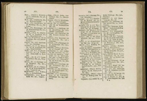 4 * ; jR *. CA . CA . VfL 4ï Jodêri Prinfengr . No . 190 , Makelaar . Capadofe , ( J . A ) Joden ■ eizetsgr . No . 16 . Capadofe , (&. j Heerengr . bij den Auillel No . 12 , Med . Doctor . Caper , ( H .) Heerengr . bij de Wijde Gasthuismolenfteeg Ni . 190 , Schilder ; Captein , (!'.) Nieuwendijk bij de oudebrugfteeg No . 49 , Loodgieter . Cacdofe , ( W \ E .) ' Veesper- ftr . bij de Joden Keizersgr » No . 6 , in Garen en Lint . Carels , ( W .) Kïizersgr . bij ' dé VijzeHtrai.t Nó . 706 , Bedden winkel . êaraïoB , ( Wed .) Rusland No . 4.'Iöfltwerkftcr . CarlbroeTt , ( C ) Keikiiraat bij de Spiegel ftr . No . 329 , Waagdtager . Carli , ( Ridder Baron D . B ,> Leijdfchegr . bij de Hee- rengr . Nó ;' 4 , Konrul van Oosienrijfè .' Carp,(Ji ) Keizersgr . bij de Leijdfcfiegratht Nó . ictf , Koopman , Carp.j ( C .) Singel bij het Utrechtfche veer No . 01 . Carp , ( il . N .) Keizersgr . over de Pakhuizen van Pel » No . 648 . Carp , ( j J ) Keizersgr . bij , ;' de Barrenftr . Ni . a8i . I . Carp en Zonen , ( 1 . W .) N . I z . Achterburgwal No . 3 ?& I D4 Bays , ( Martin ') Heerengr . bij ds Kaasmarkt No . 46 , Koopman , guys , ( H .) Lejj'dicoertr . No . 24 , Hiroloidemaker . Buys . ( P .) Leijdfcnesr . bij de Keizersgr . No , ia , Ma- — • keJaar .;-. Buys , ( P .) Brouwersgr . bij de Goudsbïoemgr.No . 173 , Keurmeester . Buysfeo , ( Wed . P ) PrinCeD gf . bij de Laurierftjr . No . . 5Sa , Kousfenwicbel . Byl- , ( J .) Biouwersgr . bij de LindeBgr . , Nö . 150 , Stehmfl -' houder . Caaten , ( B . ten ) Lauriergr .' N ■■. ip^WfeAelaaisi- Cadenne , ( A . F . J .> Koiver - ftr . bij de Karjenieeg No . 199 , Parap'uitvinkel . Caflf , ( z . D ) Regtboom - floot No . 31 , in Verfwfc - ren . Firma Gate tin ïferk-l han . P4e*t i (&. B . V .} Rapen . burgétflraat No . 3a , Koop- _; ; mafl . iy Calcar , ( B . v .) Heerengr . bij de Bergfltaat No . 173 , Koopman . Calésmeyer , ( s . G .) Heeren , gr . bij de Kè&jeïfteejjrNo . 276 , Coramlsfiftnaf »., CaldenhoVeri , ( J .) HaMeegi No . », igfch»ëö(naker Caideshoven , ( a .) Boom raakt No . 262 ,. Tapper . Cates , ( Wed .) Joden Am » ftelltraat No . 7 % Modea - winkel . Calisch , ( N . J ) Snoekjesgr . No . 1 , ftonvooSlooper . Calker , ( D . v .) Haarlemmer .- dijk bij de Dommerftraac No . aa3 . Calkoén , (<\ ) Prinïfe'ngr . bij de Spiegelïtraat Np . 138 * Militie Cornraïsfiiris . Caikoen , ( H ) Keizersgr . bij den Gouden Ketting No . ■ 546 . Calkoejj , ( p .). Beette*g & bij de Hartenltr . No . 038 , Makelaar . Caikoen , ( W .) Keizérsgï . bij , de Leijdfctaegr . No . 19a , Kooprhari . CalkaeaV'i^Wed .) HeereBgr . bij de Vijzelflr No 5 .!. Cairiïbacères , (., de ) Amft^l bij den Aftifélllr . No . 77 . Carobior en Dankerts , Heé . rengr . bij de WóWeffltf . No . 48S,ih Kóffij eft'TBee . Camerliog , ( J ) WeespeWr . \ bïj ' het Ffein No . 83 , Ho » rologièmaker . Catainha , ( D ) Prinfengr . bij het Aratteiveld No . 37 Timmerman ;-'' «&.* Cahfiillit , ( P . C .) PrfnleHjl bij de Utreeliticheftr . No . 19 , MaÉWaSK ! •*.'• • Caniaiaff » •$£.) Utrècbtréhe . ftraat bij de UtrèeSfthe - DvWWttrtkft No . 8a , fcfe . meaij » Cammon , ( W .) BlOerh'gr . No . n8 , Houtzager . Campen . CC . v ) Vijzelftr Mi de Kerkitr No '. 85 , Weekelijtefche PubliekeVer - koopplaats . Campen , ( A . J . v ) Voor - btfrgWai bij de Oude Doe - lenftr . No . 48 , Koopman . Campen , ( D . Birrius ) Prin ferrgï . bii de Nooraerftr .; No . 806 , CormnVs&ris " van | • Sfiiilaiie Zakèïi . Campo , (*. J - de ) Noor - dermaikt Nö . 4a , Uitdra - Canas , G L ) Rapenburger- ftr . No . 154 , Koop-nan . Canrié , ( C .) Haltteeg No . 44 , Ziiverfmid . Canne en Balwe , Geldcrfche Kade bij dcnSehreijeis to- ren No . Cs , Karsadoors . Cantor , ( C .) Beürs'fteeg No . a SpürKr H de Loterij . Canter Jz - (».) Joden Kei zersgr No . 19 , Koopman Capelle , ( A . G v .) ' sGrave- landfche Veer No . 1+7 - Capelle , ( J . H . A .) Nieu - " ' Wëndij *: bij di Dirkvan hasfeltfteeg No . aQ5 % Bak " ker . Cappelhof , ( Wed .) Printen- gracht bij de Vijzelgracht No . Ï39- WM .} Cappenberg , ( Wed .) Singel bij het Koningiplein No 491 . ,. ' Cag- aaofe , Cj.)'.AmIlel bij de
