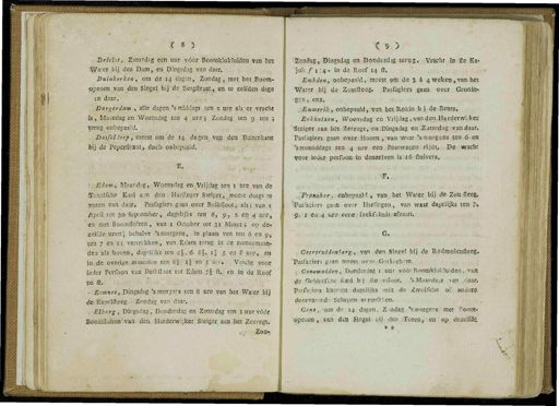 : c s 3 Tirielst , Zaturdsg een uur vóór BoomWokluiSen van liet '^ Tater bij den Dam , en Dingsdag van daar . Buitrkerken , om de 14 dagen , Zondag , met het Boom- openen van den Singel bij de Bergllraat , en te zelfden dsge in daar . . Burgerdam , alle dagen ' s middags ten a ure als v er vracht ïs , Maandag en Woensdag ten 4 ure •$ Zondag ten 9 ure ; terug onbepaald . . DusfHiorf , meest om de 14 dagen van den Buitenkant bij de Peperfttaat , doch oftbepaald . E . I . Biam , Mfandjg , Woensdag en Vrijdag ten 1 ure van de Sïexelfche K.3ai a.m den . Harjinger Steiger ,, meest daags te Toren van daar . Pasfagiers gaan over Buikiloot ,- als : van 1 April tot 3e » September , dagelijks ten 6 , 9 , 2 en 4 ure , en met . Boomflurten , van 1 October tot 31 . Maart ; op de- zelfde uren ', behalve ' s morgens , in plaats van ten ó en 9 , ten 7 en 11 vertrekken , van EOam terug in de Komermaan- den a-!s boven , dagelijks ten 4 §,- 6 . S |. ij 5 en S ure , en in de overige maanden ten 8 §. ij en s"ni <» Vracht voor ieder Pcrfoon van Büikfloot tot Edam yj ft . en in de Roef ïó ft .- j'lfcSj • Eamnes , Dingsdag ' s movers ten 8 ure van het Water bij de Kapelfteeg Zondag van daar . ' mpY ! Elburg , Dingsdag , Donderdag en Zarurdag ten 1 uur vóór . Boomiluiten van den . Harderwijker Steiger , aan ; jhet Zeeregt . • <« f Zon - C 9 ) ^ iZ^nrJag , Dingsdag en Donder&g terug . Vrgcht . in Öe Ka- juit ƒ 1:4- in de Roef 14 ft . Embden , onbepaald , meest om de a a 4 weke », van toet Water bij de Zotnlleeg . Pasfagiers . gaan over Gronin » • gpn , enz .- Emmerik , onbepaald , van het.Rokin;bi>de Beurs . Eèkhuizen , Woensdag en Vrijdag , van ^ Harderwijker ' Steiger san • hèt.-?eeregt , esuBiingsdag en Zaturdag^^ndaar . ' Pasfagiers gaan over Hoorn , van waar * s*mQrgens ten 6 - en ^ Wtamiddags ten 4 ure eenx-Bösjwagen rijdt . De wacht voor iedej!.- getroon in denzelven isla&tftuivers , m .' Franökety ónbepaiJd » van het Water bij de Zou neeg . % asfagiers gaan over Harlingen , van waar dagelijks ten ?» 9 . 1 en 4 ure eeoer » ftefcfch»itwfvaart . G . Oeertruiie»i<erg , van den Singel bij de Roómolenfteeg . ' Pasfagiers _ gaan meest ov er Gotinelwni . | , Genemuiden , Donderdag 1 uur vóórBoomklokluiden . van de fïelderfche Kaait bij Bo mdoot . ' s Maandags van , ,<! aa & pasfagiers - kunnen dagelijks mét de Zwolfche of anders doorvarend 1 ' ' Schepen vertreklfen . Gent , - om de 14 dagen . Z . ndag ' s'morgens met Boonjt- epeuen , van.&t Singel uij den Turen , en op dezelfde * *