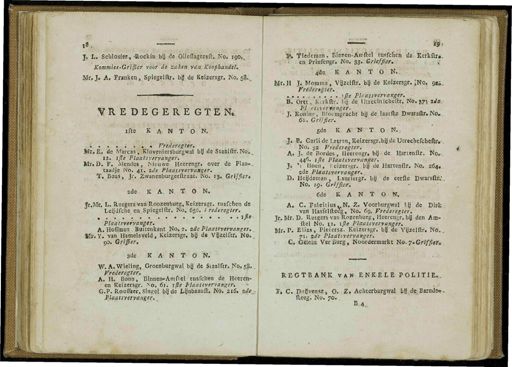 1 ~^~! Aé J , L . Sclilosfer , - Rockin bjj de Olicflagersfh.No . 190 », Kommies-Griffier voor de zaksn vaniKoèphaVdel . aai- , J . A , franken ., Spiegelflr . bjj de Keizersgr . No , 58 . VREDEGEREGTEN , ifce KANTON . M . ... Vrederegter . _ .' $ J!r„E , de Marcas , Kloveniersburgwal bn de Staalfti.No ., 13 . ijle Plaatsvervanger . ,'~ * t * ï Mr#D . F . Mendes , Nieuwe Heerengr , over de Plan ». taadje No . 41 . sde Plaatsvervanger . T , Boas , Jr . Zwanenburgerftraat . No . 13 . Griffier , 2de K A . N T O N . ? r Mr . L . Rutgers vart-Röbzérjbüïg , Keizersgr . tusfehen de Lejjdfche . en L Spiegelftr . No . 656 . t rederegter . m ... • .... •• ijle " Plaatsvervanger . A . Hoffman Buitenkan ! No . 5 . ide Plaatsvervanger . _ Vis . Y . van Hamel'sveld , Keizersgr . ojj de Vtjzelftr . No » . 90 . Gri§er . 3de KAN T-'-Q N . W.A . Wieling , Groenburgwal bjj de Staalftr . Nft , 58 . Vrederegter . A . H . Bonn , Binnen-Amfiel tusfclren de Heeren- en Keizersgr . mf . < 5i . ijle Plaatsvervanger . G.P . Rpuffaer , Singel by de Lynbïrauft . No . 216 . aó *, RlaatsyeTvenger . ■ r %, Tiederaan , Binrien-Am'ftel tusfclicn deï-Refkftr ». en . Prinfengr . No . 33 . Qrieffier . I '■ / fa . KANTON . fclr.H J * Momma , Vjjzelftr . brj de Keizersgr . INo ^ oji », rrg'deregter . . . iêe Plaatsvervanger . - B . Ortc , Kcrkftr . ö | de Uuechiicheltr . No . 575 2rfffi .: T'&mtsver*enger . LL-S . «. Ê « J.Ko"ntri.a , Bloemgracht bij de laatffce Dwsrsftr.No . 68 . Griffier . 5 de K A NT ON . • J . B . CarlideT,?tran,K«izersgr.brj,deUtrachtfcbe.{te »-. ► V s ' No . 32 Vrede ) egter . A . J . de Bordes , Heerengr , bij de Hartenltr . No .. 446 . jfte Plaatsvervanger . J- s ; ' i Hoen , i'eizersgr . bij de Hartenftr . No . 264 ». zd&.Pfaatsyervanger .^ D . Heijdemaii , Lauriergr . bg de eerfte Dwarsftr .' , No . 19 . Griffier . 6de KANTON . A . C Fabrhius v N . Z . Voorburgwal tjj de Dirfc ; van HasfelfteJg , No . 69 . ^ rederegter . Jr . Mr . D . Rutgers van Rozenburg , Heerengr . bg den Am - ft-el No . i ,!. ififi Plaatsvervanger . Mr . P . Elias , Pietersz . Keizersgr . bg de Vijzelftr . No . . 71 . zde Plaatsvervanger . C . Gelein Ver Burg , Noordennajfcc No . ?. Gf iffitr ,-. REGTBAN;K van enkele politie ». I » C . Duïjvensz , O . Z . Achterburgwal bSde^Barnde *. fteea . No . 70 . . B^4 .