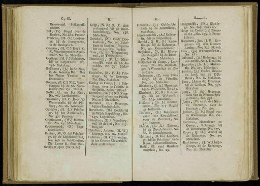 wsmmSXgBBBS G,H . Kraanvogel . Suikerraffi- nadeur . Fol , ( F .) Singel over de Doelen , No . 482 . Pastoor . Frerichs , < H . G .) Looijers- gr . bg de Baarikracht , in de Bruinyisch . Gasman , ( H . C .) Hoek O . Z . Voorburgwal en Agnie- tenrtr . No . 19 . Makelaar . Gerlings , ( H . J .) Keizëfsgï , by de Legdfcheftr . No . 153- Makelaar . Geijkema , Q .) in de Nes , in de Goiiden Bal . Met het Najaar Vauxhal^en Estamiriez . Godzen , ( F . C .) N.Z . Voor- burgwal by de St . Noco- laasftr . No . 171 . Makel . Golly , ( L . en P .) Nes , No . 78 . Leerkoopers . Graafland , ( H . C . Hooft's ) Gerteler , ( H . JO Prinfen- gr . by het Araftelveld , No . 47 . Pastoor . Griethuizen , ( W .) Harten -' ftr . No . 12 . Makeliafr ''' - Groenewoüd , ( G ) t Regt- boom floot . Gruïter , ( VV . G . de ) Prinfen - gr . by de Leydfcheftraat No . 196 . in Schilderden , Zie Letter R . ftaat abu . fivelijk RuytêF.^W . G.de ) ' H7 " Grijp , ( N . J .) O . Z . Ach - '! terburgwal by de Oude - | kennisfteeg , No . 148 . 1 Makelaar . Gunckel , ~( N .) Oude ' Doe - f lenftraat , No . 17 . Fabri- kant ; ifc<Saayen , ïïnperia - ; len en gedrukte Baayen . Hoas , ( A . P .) Trippenburg wal , by Trippénhuts . Hanenberg , ( P . j .) Nieu- wendy'k over de ^ St . ' Ja - | cobftr . No . 73 . Make - ; laar . Harckfen , ( R . F . J .) Prin - . , fengr . bij de Rózengr . No . 58o . Makelaar . Haring en Corap . (!?.') i Pffin - I fengr . over,de Tuinftr . in de Helm . Suikeflafffhad . Harmfeir^G . J .) N&.Voor - ; burgwal achter het Paleis , No . 213 . Makelaar . Hartfinck , ( P .) Heerengr . 1 hg het Koningsplein . Hartebuht , ( HO Rockin bij ' de Wijde Kapelfteeg , No . 147 . Logement . Heineken , ( D .) Voorburg- wal by de Hal , No . 223 . Drogist . Heihfius , Aukesz . ( H . W .) Bioemgr . No . 26 . Makel . Hekman , ( H . C .) Elandsgr . in het/Groene Klaverblad . Suikvrraffinadejir . H . Hendrik , ( J .) Gelderfche Kade bij de Stormfteeg , Makelaar . Herckenzadth , ( A .) Ralver - ftr . bij de Gaperfteeg . Herold , ( J . H . P ) Regu- liersgr . bij de Keizersgr . No . 22 . Commisfionair . Heijblom , ( J . H .) Klove- niersburgwal by de Raam- gr . No . 35 . Makelaar . Heijbcock & Comp . , Lau- riergr . No . 86 . Betaalda- gen ' s Woensdags en Za-turdags . Heijningen , ( C . van ) Prin- fengr . hij de Vijzelftr . No . 100 . Makelaar . Hinsbeek , ( J . A .) Heerengr . bij de Wolvenftr . No 463 . Hinsbeek , ( C , G .) Heeren- gr . bij de Wolvenftr . No . 463 . Makelaar . Hoffman ., ( J . J .) Erwten- markt , No 117 Regis- ter Inftructie . Hofman , ( B .) Ruitenkant naast het Kwaekfcliool voor de Zeevaart , No . 30 . Pastoor . Holrah , ( B . A .) Boterm . bg ' de Utrechtfcheftr . No . 5o . in Manufacturen . Holtman , ( H . H .) Looijers- gr . bij de Prinfengr . in de Roos . Suikerraffinadeur . Holy , ( B . van ) Haarlem- merplein , No . 29 . H K . Hoogendyk , ( W .) Elands- gr . No . 105 . Bakker . Hoop en Comp ' (.) Bloem- markt , No . 255 . in Steen- kolen . Horstman , Jun . ( J - H .) Kei- zersgr . bij den Gouden Ketting , No . 533 . Makel . Isler , ( J . - ) Waniioesftraat , No 182 . Isfouai'd j ( A .) Keizersgr . by denAmltel,No.4 . Dentisce . JacobfojK - ( A . L .) Aluider - ',' ftr . No . 27 . Makelaar . Janfen , ( j .) Ouden Schans en hoek van de Dijk- ftraat , No . 8 . Makelaar , jong , ( Amos de ) Heerengr . by de Leliegr . No . 397 . Makelaar . Jong , ( J . d'eO Heerengr . hoek van de Nieuwe Spie- gelftraat , No . 552 . Jonge , ( W . en J . de ) Nieu- we Heerengr . over de Plantagie , No . 50 . Jonker , ( J . P .) Singel over de Warmoesgr . No . i52 . Makelaar. Karthaus , Hazenlever en Comp . , Keizersgr . bij de Brouwersgr . No . 377 , Keere , ( J HO Amftel bij de Keizersgr . No . 50 . Makelaar . - Kerkhoven , ( J . W .) Ley'd- fchegr . bij de Keizersgr . No . 11 . Makelaar -
