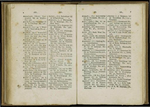 teiOsijjJSir 4 AN ., Amersfoord , ( Wed .) Voor- burgwal bij de PijlItee E : No . 206 . Ameshrff , ( A .) Heerengr . bij de Heerénttraat No . 368 , ' Koopman . AmeslirfT , ( A .) op ' t Water ' bij"de Baafjcsfteeg No . 41 , Kantoor . Ameshoff . ( Lud . Hsmerfter ) - KlovelHers Burgwal bij het Oude Ma-huis No . 104 , Raad der Stad Ameshoff , ( H .) Singel bij de Ber„'ftraat No . 329 . Amejhoff . ( P . J ) Heereqgr . bij de He renitr . No 315 . AmesbofT , QVed .) Leidfchegr . bij de Kêfzersgr No go . Ames,nofF , ( A ) Nieuwendijk bij de Vrouwonfteeg No . 41 , in Katoenen en Lijn- waden . Ameshoff en van Kempen , Keizersgr . O . Z . bij de L > liegr . Ni >. 321 Ames , ( H J >) Keizerssr . bij de - Leiiegr . N0.451 , in Granen . Anions ( L .) Noorderrnarkt No . iy , ' Winkelier . Amftel Izaacz . ( Pr . Ploos van ) Keizarsgr . tasfehfn de Vij - zelf r . en Reguliersgr . No . 731 , in Droogerijen . Am ( lel en Lud wig , ( B . J . Ploos van ) Heerengr . tus - fchen de GastlmUmoIenft . en Warmoesgr . No . 205 , Anaraa , ( P . F .) Regtthers - Breeftraat No . 15 , ScTlui - jermaker ? . AN . Aneher , (|.) Buitenkant bij de Schipperftraat , ~ d'Ancona , (.) Weesperft ». bij de Heerengr . No . E , Med , Docr . d'Ancona , ( G ) Heerengr . bij de Heerenftr . No . 35e , ■ Med Doet . Ancpr.a , ( G . d ) Muidergc . No : 22 , Chirurgijn . Andel , ( F . v . d .) Warmoes - fir . hij de Wijde Kerkft . No 64 , Koopman . An.lerfon , ( G ) Reguliers - Dwarsftr . bij ' de Vijzelilr . No . 87 , Chirurgijn . Andrae . ( E . W .) Zeedijk bij ' t Kolkje No . 83 , Apoth . Andre , ( J . s .) Voctbo-igür . No . 21 , AdGftent in de t Wisfelbank . Andres ^ ( P .) Rockin bij de Beurs No . 127 , L.kenkoo - per . ■ An.ireas . ( Jtifr ) Panfeftr . No . 15 , Tapper . Aiidringa , ( Wed . J .) Singel • bij de Vjzelllr . No . 535 , Stalhouder . Andriesfen , ( A .) op het Wa- ter bij de Zoutftceg No . - 20 , Spiegelwinkel . Andriesfen , ( A .) Prinfengr . bij de Brouwergragt No . 454 , Droogist . Andriesfen , ( J . S ) Harteftr . No . 18 , Banketbakker . Andriesfen , ( J .) Prinfegr . bij de Vijzelgracht No . 786 . Anfing , (£) BlaauwburgwaJ No . 24 , Schoenmaker . AP . Anspach , ( J .) Keizersgragt 1 bij de Huidsnftr . No . 230 , Koopman . Anke , ( Johs .) Nes bij de Heremietenfteeg No . 61 , in Zoiitevlsch . Ankerman , ( H .) Oude-Kerks - ' plein No . 28 , Ordinaris- houder . Anink , ( P .) Oude Waal No . 75 , Vlotter . Angely , ( Jufvr . M .) Keizers- gracht bij de Kuidenftraat No . 222 . Angemeen , ( C .) Halfteeg No . 10 , Schoenmaker . Angemeer , ( J.J Utrechtfche- ftr . bij de Achtergr . No . 72 , Tapper . . - Angenent , (.)~ Nieuwendijk bij de NieuwflraatNo . 216 , Hoeden winkel . Angenent , ( J .) Nieuwendijk . bij de Kaïnemelkfteeg No . 80 , Hoedenwinkel . Angenent , ( H . L .) Zeedijk No . 120 , Kommenijswinkel .- Angler , ( F .) Haarlemmerdijk bij de Prinfegr . No . 278 , Vleeschhouwer . * Angler , Leidfcheflr . bij de Prinfengr . No . 41 , Vleesch- houwer . Appenzeller , ( W . R .) Voor- burgwal bij de Stillteeg No . 229 , Kleermaker . Apostool ( C .) Kloveniers- burgwal bij de Nieuwe Hoogftr . No . 59 , Direc- teur van het Koninklijk Mufeunx , AR , S d'Arripe (.) Keizergr . bij de Hatteflraat N •. 5cp , Koopman . Aratie , ( D .) BloemmarktNo . 256 , Konful van Sardinië . Arbmanj , ( 1 .) Acluerbu-gwal bij de Korsjesfteeg No . 234 , Konvooiiooper . ArnoKIt , (.) Achterburgwal bij den Korten Niezeï NoV ia6 . Arends , £ H .) Prinfengracht bij de T^gelantïerftraat No . 512 , Uitdrager . Arends , - ( J .) Achterburgwal bij de Korte Kolkfteeg No . 183 , Kuiper . Arends , (ƒ.) St . Nicolaasftr . No . 6 , Bakker . Ar-'ntfs ( L , F .) Binnekant bi- de Kraanfluis No . 1 , Blokj kenmaker . Arends , ( J.J .) Heerengr . bij de Wolvenltigat No . 450 , Makelaar . Arens , ( E .) Vijzelftraat bij de Heerengr . No . 105 , Schoolhouder . Arens , ( M .) Vroiiwenlteeg No . 2 , Bakkeïl * Arinkfen , ( J .) ütrechtfehe - ftraat bij de Prinfegraet No . 46 , Boekwinkel . Arneaud en Comp . , ( D .) ■ Kalkmarkt No . 53 . Aron , ( J .) Jooden Breeftraar No . 2 , in Horologien . Arons , ( B L .) Joden Kef . zersgr . No . 21 , Juwelier . Arp en B . W . HageiMn , ( jH .