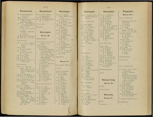 2658 2659 Warmoesstraat . 90 Gasgloeilicht-Maatij . „ Concordia ". 92 J . Verbeek . 94 Spangenthal & Co . But- tinger & Ruijs . Oebrs . Rikmenspoel . 96 N . V . Korkenfabriek W . Sohotte & Zonen . Firma P . ' Pot . Firma Wed . F . van der Vorm . Hischberg , Lagerman en Co . M . Friedlich . 98 Wansink & Daemberg . 100 Wed . H . C . de Jong . Paternostersleeg . 102 N . V . Thee - en Koflie- bandel v/h . Wijs en Zonen . 104 D . Rühl . Firma S . Hakkert . 106 J . Koetse . Gerhard Mcutstege . W . J . Kouw . 108 Mej . G . Meijer . 110 A . J . Faubel . 124 A . N . Poetsma . 126 Bijkantoor Disoonto - en - Effectenbank . Papenbrugsteeg . 138 W . N . Waalewijn . Naaml . Venn . L . v . d . Maesen's Fij ne Vleeseh - waren en Comestibles - handel . 140 F . A . Brinkmann . 142-146 N.V . Handelsvcnn . v/h S- 1 . de Vries . 150 W . de Lange & Co . . 152- 154Naaml . Venn . Han- delsvereen- Gebrs . Rikkers . 156 B . T . Strater . 158 A . L . Aldenkainp . Hotel en Restaurant « de Hoop ". 162 Mej . M . Bühsgen . 164 Theodor Werdêlmaun . 170 W . Lehmann . 174 Jnlius Wulff & Co . Naaml . Venn . Boek , Kunst- en Handels- drukkerij , voorheen Gobr . Binger . Gebr . Been . Warmoesstraat . 176 P . J , W . Walters . R . Branderhorst . 178 Th . Rademakersi- 182 van Es , Houtman & Co . N . S . van Es . Visschersdam . Vygendam . Waterlooplein . Huurt tl . Zwanenburgwal . 1-3-5-7-9-11 de Vries van B uuren & Co . 13 M . Beer . 15 H . Maykels H . B . de Beer . Naaml . Venn.Wijnhand - en Likeurstokerij v/h . Brendel en Zoon . „ TJnitas ", Mij . t . Expl . van Wijnkooperijen , Distilleerder ijen en Likeurstokerijen . Compagnie des Caves Oeconomes . Firina J . H . v . Hasselt Jr . M . van Saxen . D . Werkendam . E . Coster . 17 II . Groen . 19 A . Premselaar . 21 E . L . Brouwer . Jac . Brouwer Ezn . M . L . Brouwer . " Simon Brouwer . I ). G . de Mesquita . 25 H . A . Poons . Houlkoopersdwarsslraat . 27 A . H . Nebig . 29 W . van Kreéveld . M . I . Wessel . J . Velleman . 33 de Goede en Lap . J . Canes . S . Cohen . 35 S . Plotske . W . Agsteribbe . 37 E . Luza . B . Italian er . 39 B . Groen . Waterlooplein . 41 M . E . Nijkerk . Firma Maurits Nopol ' & Co . . M . Cohen de Lara . 43 A . Harmsen . Firma J . M . Hergt . 45 J . C . Polak . 47 Louis van der Woude . I J . Elsas . M . Wegloop . 49 H . Salomons . B . Groenstad . 51 J . D . Cohen . S : N . Houtkruijer . J . Querido . 53 B . Broekman . Gebrs . N . en J . van Gelder . B . Barend . 55 L . S . Onderwijzer . S . Abrahams . 57 A . Mcndes Coutinho , Ph . Gobes . 61 » J . W . B . van Heel . C . van der Valk . 65 Adr . Dam . Lazarussleeg . Buurt P . Jonas Daniël Meijerpl . Tarfsteeg . 77 Ph . Nikkelburg . 79 J . de Jong . B . M . Speler . G . Bed . 81 G . Staal . A . Hakker . 83 B . H . Levee . Ph . Bont . 85 A . Witteboon . S . Corper . 89 A . S . Bolle . 91 H . Platvoet . 93 S . I . Bolle . 95 Dr . A . May . J . Matteman . M . Walg . M . Walg Mz . G . P . Korf Jr . D . Molgo & Co . 101 A . Montanhes Jr . A . A . Montanhes . M . Allegro . Waterlooplein . 103 105 Lingeïiefabriek - en Manufacturenhandel „ Exelsior ". Nieuwe Amstelslraal . 107 Betsy Sanders . 109 II . J . Peter *. 111 J . J . L . de ' Roos . Es K . F . Strove . J . G . van Santé . - 115 Maurits Weill . 117 M . van Rooijcn . 119 M . de Lange . Baphaël Gobets . Mej . Joh . Witjas . 121 Fa . Gebr . Pijnappel en Beth . - '.' 123 S . M . Keizer . Jmilel . Zwanenburgwal . 2 A . Kok . D . Cartoef . 4 H . Cok . Il N . van Stratum . W . Corper . t 8 S . Engelander . I 8-12 S . de Leeuw . ■ O B . L . Abas . 12 J . A . Bolle . 14- 16 Firma J . I . Drukker . 16 I . Winnik . I . J . Bak . 26 J . Stuwer . 28 S . Gobetz . 30 Wed . B . Gobetz . N . Monnikendam . Korte Houtstraat . '■ 82 S . Gobetz . S . J . Winnik . 40-44 Gang . 46 A . Bachra . Gebr . D . en J . Blits . 150 F . de Metz . 8 . de Metz . 50- 52 W . Schornisheim . 56 A . Wolf . 58 J . de Beer . S . Lam . Waterlooplein . 60 A . J . Brilleman . W . Aandacht . 60- 62 B . Groen . 62 Sam . Blits . 64 ° B . Montezinos . 70 D . Wagenhuis . 72 G . N . Prins . 74 Wed . E . E . Talhttizen . Gebr - Vischraper . Simon Visehschraper Sr . 78 W . Knocker . 80 D . Pach . ' 80- 82 S . van Gelder . 84 M . Schuijer . 86 M . Elekan . E . Monnikendam . J . Tak . Lange Houtstraat . 88 S . Tak . 92 G . Ossedrijver . H . Platvoet . 94 H . I . Blitz . D . I . Goudsniit . B . L . Springer . 96 I . van Kollem . 96- 98 S . van-der Bijl . 98 J . van der Bijl Jr . 100 J . Appelboom . 102 H . Roozeudaal . F . van Zuiden & Co . 104 A . de Magtige . S . Dclden . Zioanenburgcrslraat . Amstel . Waterpoortsteeg . Buurt SI . Zeedijk . Qeldefschekade . Watersteeg . Buurt IS . Rokin . Kalverstraat . Weesperplein . Buurt W il . Hieuwe Achtergracht . 1 . Diamantcl . „ Concordia ". Privé Club . H . Zimak . 3 C . G . Riene . 9 A . Frank , 11 A . A . Witmond . Familie van den Ban . Wed . A . van den . Ban . 13 G . S . Binger . D . W . Leuw.H . van der Kar.W . Druif . 18 Mej . Lewin.Ant . Hoogstraalc . 17 A . Volkers . E . Dreese . W . Vahrmeijer . 19 J . Ooms . 21 Wed . B . Ordas . J . Ch . Ordas . ; L . Leger . S . Dukler . Valckeiiierslraat . Sarphaüslraal . Nieuwe Achtergracht . 4-10 Beurs voor den Dia- manthandel . Davids en Rozelaar ." D . Band . Joodsch NationaalFonds . Vereeniging van Make- laars en Commissio- nairs in Diamant Vecht & Wetzlar . J . H . David ». 12 Dames Bolle . 14- 16 F . E . Murjsers . Hotel „ Rotterdam ". 16 W . L . Courlander . H . Hoffmann . Wed . Godschalk . 18 FirmaH.Schoonderbeek . A . C . M . Bischoff . Voormalige Stadstiinmertuin . Sarphaüslraat .