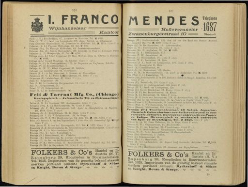 57 ? I . FRANCO ' Wijnhan d e laar Kantoor Felix ( J . H .) Ruysdaolkade , 47 . Aannemer en Makelaar . Tel . SE 6215 . Mix ( M . W . C .) Jacob van Lcnnepkadc , 208 . Huis -, Fabriek - en - Scheepssmid . Felix ( Nieolnas ) Ruysdaelkade , 47 . Aannemer en Makelaar . Tel . SE 6215 . Giro F S Felleman ( A . L .) Plantage Middenlaan , 68 . Tel . V 306 . Felleman ( Mej . D .) Plantage Middenlaan , 68 . Dameskleedermaakster . Felleman Azn . ( J .) Nieuwe Heerengracht , 139 . Koopman in Fruit en Koloniale Warm . Felleman ( L . J .) Weesperzijdc ,. 62 . Tel . SE 4238 . Fellinga ( Alex . L .) Albert Oirypstraat , 58 . Huis . Wcrkpl . : idem 71 . Scltilder en Makelaar . Tel . UK 4086 ,. Fellinga ( Joh .) Gerard Doustraat , 17 . Schilder . Giro F 1464 . Felling » Jr . ( J .) 2e Oosterparkstraat , 170 . In Drogerijen en Verf maren . Schilder . Fellinga ( P .) 2e KeucheniüsstTaat , 5 . Fellinga Jr . ( W . F .) Albert Cuypstraat t 60 . Schilder . Fellinger ( A .) Keizersgracht , 87 . Onderwijzer . Felman ( F . J .) Ie Jan Steenstraat , 5 . Scharen - en Messenslijper . Felpe'rlaan ( G . C . A .) Pieter Lafigeudijkslraat , . 62 . Giro F 729 . Felperlaan ( J .) Ceintuurbaan , 87 . Giro F 171 |. Feels ( O .)- Borgerstraat , 169 . - Fels ( F . B ) Ie Constanten . Huijgensstraat , 19 . Giro F 730 . Fels ( P .) Pootanusstraat , 55 . Pelser ( H . J .) Bellamystraat , 30 . Felser ( H . L .) 2e Kostverlorenkadc , 147 * Feit « fc Tarrant Hfg . Co ., ( Chicago > lioniniraplelii 1 » — Automatische Tel - en Rekenmachine /- Giro F 314 . Feiten ( J . H . L .) Overtoom , 227 . Horlogemaker . Giro F 731 . Feltkamp fMej . A . J .) Honth.irststra'at , 34 . Gjro F 1S74 . Feltkamp ( G . F . W .) Keizersgracht , 658 . Agent in Manufacturen en Tapijten . . Tel . 5879 . Giro F 1078 .^ Feltkamp ( G . J .) Bilderdijkkade , 32 . 2e E.tage . Giro F 2189 . Feltkamp . ( H . J . H .) Wilhelminastraat , 198 . 8e Etage . Feltkamp ( Dr . T . E . W .) Honthorststraat , 84 . Arts . Tel . SB 160 . Giro F 35 . Teltz ( Mr . Baron A . A . van der ) Ruysdaelkade , 9 . Proc.-Gen . bjh . Gerechtshof . Tel . SE 138JK Giro F/36 . Felti ( Baron H . B . van der ) Heerengracht , 611 . Tel . C 1277 . Giro F 37 . Femminis ( J . A .) Brouwersgracht , 29 . Schoorsteenveger en Rookverdrijver . Giro F 20?3 Fenenga ( G S .) Ie Oosterparkstrant , 232 . Fenenga ( Mej . * J .) Kever Auslostraat , 3 . Fenenga ( M .) Barentszstraat , 43 . Winkelier . Fenenga ( M .) Buiksloterweg , 9g . Leeraar Zeevaartschool . Fenenga ( P .) 2e Jan van der Heijdenstraat , 24 . Fenenga ( P . R .) Meeuwenlaan . 21 . Administrateur Amsl . Droogdok Mij . Tel . 9091 . Fenenga ( R . Th .) do Ruylerkade , 99 . Giro F 2232 . FOLKERS & Co's £ 3SJ £ £ Rapenburg 29 , Kooplieden in Bouwmaterialen . Tel . 1616 . Importeurs van de gunstig bekend staande merken portland cement : JOycherhoff « fc Söh «* en Knight , Sevan ét Stnrge . - v -:-:-:- * : " MEHDES ÏSft ======= Hoïle vera ncier ' L U 01 Zwanenburgerstraat ÏO == Noord Fenenga ( W .) Stadhouderskade , 120 . Bed . lid van den Raad van Bestuur Amsterd . Droogdok Mij . Tel . SE 2260 . GiRo F 39 . Fenger ( A .) 2e Jan Steenstraat , 15 . Laarzenmaker '. Fenger ( J . H .) Frederiksplein , 28 . Giro . F 1747 . Fennema ( Mr . E .) Sophialaan , 38 . Tel . SE 5868 . Fennema ( K . J .) Bilderdijkkade , 112 Fennema ( P . H .) Kanaalstraat , 44 . Fennema ( T .) Bilderdijkkade , STTGiro F 2149 . Fennema ( W . J .) Lootsstraat , 28 . Huis . Fenneman ( J . A .) Jacob van Lennepstraat , 126 . Giro F 1869 . Fennet ( A .) Rozengracht 91 . Huis . Fennik ( A .) Commelinstraat , 66 . Fennik Jr . ( A .) Borgerstraat , 167 . Barbier . Tennis ( G . JO 3e Oosterparkslraat , 174 . Lood - en Zinktoerker . Tel . SE 5476- ij?ens ( Wed . JTJ .) Kanaalstraat , 72 . • Fcnstra ( Joh .) Lauriergracht , 77 en 100 . Fabriek,v . Salon - en Slaapk.-Amtublem . Tel . - 7186 Giro F 40 . Fcrcken ( C .) Nassaukade , 112 . Giro F 741 . Ferdinandus ( J .) 2e Oosterparkstraat , 149 ; Giro F 768 , Feringa ( H . J .) Jacob van Lennepstraat , 178 . '. Feringa ( C .) Govert Flinckstraat , 89 . Kruier . Giro F 1675 . Feringa ( E . F .) Jan Bernardusstraat , 24 . Kruier . ■ Feringa ( K . J .) Bloemstraat , 75 . Giro F 2014 . Feringa ( K . J } Jacob van Lennepstraat . 178 . In Spreekmachines . Tel . SE 8025 . fakcuius ( C .) Ie van Swindenstraat , 10 . In Piano's en Orgels ? Giro F 04S . ïeiman ( Firma C . W .) Looiersgracht , 28 Commissionnair in Suiker . Tel . 3325 . Giro F 17 . jFerman ( Wed . C . W .) Emmastraat , 13 . Giro F 743 . Forman ( Dames ) Valeïiusstraat , 192 . Giro F 744 . . Verman ( P .) Tesaelscltadestraat . ÏO Schrik . Ingenieur . Chemisch Laboratorium voor Suikerondersoek en aan- verwante Artikelen , Il urea 11 voor onderzoek van fapier en Mnilif/o . Microscopisch en mechanisch onderzoek van Spin- en Weefstoffen . Tel . SE SllfïH . Giro F 318 . Ferment Sr . ( A . H .) Frans Halsstraat , 80 . Ie Etage . Giro F 1606 . • Ferment ( G . W .) Wagenaarstraat , 54 . Kl-eedermaker . Ferment ( H . C .) ten Katestraat , 97 . Vleeschhouwer . Giro F 41 . Ferment ( S . F .) Beukmplein , 5 . Vleeschhouwer . Giro F 1083 . ' Ferment ( W . P .) Pieter Langendijkstraat . 16 Kantoorbediende . / Fermie ( Jan ) Gieterstraat , 2 . Tapper . Fermie ( J .) Palamedesstraat , 11 . ■■ Fermie ( Wed . J .) Marnixkadc , 100 . Fermie ( J . C .) Le'.dschekade , 72 . Import van ] Ooskrsche Artikelen . Tel . ! E;1609 . Giro F 2093 . Fermie Jr . ( W .) Haarlemmerplein , 32 . Aannemer van Begrafenissen . FOLKERS & Co's S£S S ÜT Rapenburg 29 , Kooplieden in Bouwmaterialen . Tel . 1615 . Importeurs van de gunstig bekend staande merken portland cement : Dyckerhoft ' ét Sonne en Knight , Bevan ék Stnrge . -:-:-:-:-:- 19