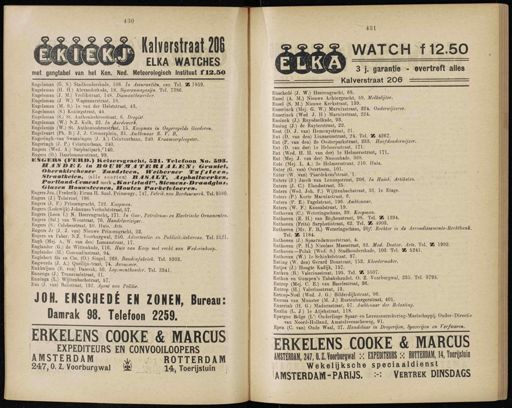 Gebruik tekstcoördinaten Transcriptie 430 431 KaEverstraat 206 Uil A:jfc mmmrn *. < aPU94JNaH***Ur ELKA WATCHES met gangtabel van het Kon . Ned . Meteorologisch Instituut f 12.50 Engelsman ( G . S .) Stadhouderskade , 108 . In Assurantiën , enz . Tel . SE 1959 . Engelsman ( H . H ) Alexanderkade , 18 . Sigarenmagazijn . Tel . 7386 . Engelsman ( J . M .) Vrolikstraat , 148 . Diamantbewerker . Engelsman ( J . W .) Wagenaavstraat , 18 . Engelsman ( M . S .) Ie van der Helststraat , 43 . ' Engelsman ( S .) Koningstraat , 44 . Engelsman ( S .) St . Anthonjesbreestraat , 6 . Drogist . Engelsman ( W .) Ix.Z . Kolk , 22 . In Aardewerk . Engelsman ( W.)-St . Anthoniesbreestfjat , 15 . Koopman in Ongeregelde Goederen . Engelvaart ( Ph . B .) J . J . Cremerplein , 35 . Ambtenaar R . V . B . Engeringh-van Swaaningen ( J . A .) Ceintuurbaan , 240 . Kraamverpleegster . Engeringh ( J . P .) Ceintuurbaan , 240 . Engers ( Wed . A .) Sarphatipark,'140 . Engers ( D .) Haarlemmerstraat , 99 . I;«(;i:hS ( KKHH .) Keizersgracht , & 21 . Telefoon Mo . S98 . Mi.i IV BUL in BHV WM.MTMitlM ALMiX : Graniet * Obernklrchemer Zandstee ** Weiberner Tufsteen , Straatkeien , ( alle soorten ) Ml tülLT , jMsphaltiverken , Portland-Cement merk „ Karlstadt ", Siemens-Braadglas , Glazen Mtoutvsteenen , Mouten Parketvloeren . Engers Jzn . ( Frederik ) Firma H . Saul . Prinsengr ., 747 . Fabrik . van Borduurwerk . Tel . 9580 . Engers ( J .) Tolstraat , 196 . Engers ( J . F .) Prinsengracht , 722 . Koopman . Engers ( Lodewijk ) Johannes Verlmlststraat , 57 . Engers ( Leon I .) N . Heerengracht , 171 . In Gas -, Petroleum - en Electrische Ornamenten . Engers ( Sal .) van Woustraat , 76 . Handelsreiziger . Engers ( S .) Celebesstraat , 50 . Hois . Arts . Engers Jr ( J . J . van ) Nieuwe Prinsengracht , 22 . Engers en Faber . N.Z . Voorburgwal , 250 . Advertentie - en Publiciteitsbureau . Tel . 2l£l . Engh ( Mej . A . W . van den ) Lomanstraat , 17 . Englander ( 6 .) de Wittenkade , 116 . Huis van Koop met recht van Wederinkoop . Englander ( H .) Commelinstraat , 94 . Englebert fils en Cie . ( O .) Singel , 268 . Bandenfabriek . Tel . 8303 . Engwerda ( J . A .) Quellijn-traat , 74 . Aannemer . Enkhmjzen ( E . van ) Damrak , 50 . Logementhouder , Tel . 3341 . Ennenga ( J .) Transvaalstraat , 21 . Enninga ( L .) Wrjttenbachstraat , 57 . Ens ( J . van ) Balistraat , 132 . Agent van Politie . JOH . ENSCHEDÉ EN ZONEN , Bureau : Damrak 98 . Telefoon 2259 . IÈRKELENS C00KE & MARCUS EXPEDITEURS EN C0NV0OIL00PERS AMSTERDAM * # ROTTIRDAM 247,0 . Z . Voorburgwal w . 14 -, Toer\jStufn Ëmm ïïiï WATCH f 12.50 3 j . garantie - overtreft alles Kalverstraat 206 Enschedé ( J . W ;) Heerengracht , 68 . Ensel ( A . M .) Nieuwe Achtergracht , 59 . Melkslijter . Ensel ( S . M .) Nieuwe Kerkstraat , 139 . Enserinck ( Mej . G . W .) Marnixstraat , 324 . Onderwijzeres . Enserinck ( Wed J . H ) ' Marnixstraat , 224 . Ensinck ( J .) Ruysdaelkade , 93 . Ensing ( J .) de Ruyterstraat , 22 . Enst ( D . J . van ) Hemonystraat , 21 . Ent ( D . van den ) Linnaeusstraat , "? 4 . Tel . SE 4267 . Ent ( P . van den ) 2e Oosterparkstraat , 233 . Hoofdonderwijzer . Ent ( D . van der ) Ie Helmersstraat , 171 . Ent ( Wed . H . H . van der ) Ie Helmersstraat , 171 . Ent ( Mej . J . van der ) Nassaukade , 368 . Ente ( Mej . L . A .) 2e Helmersstraat , 210 . Huis . Enter ( G . van ) Overtoom , 101 . Enter ( W . van ) Taardekraa'straat , 1 . Enters ( J .) ' Jacob van Lennepstraat , 208 . In Huish . Artikelen . Enters ( J . C .) Elandsstraat , 35 . Enters ( Wed . Joh . F .) Wijttenbachstraat , 33 . Ie Etage . Enters ( P .) Korte Marnixstraat , 6 . Enters ( P . E .) Fagelstraat , 196 . Ambtenaar . Enters ( W . F .) Kanaalstraat , 19 . Enthoven ( C .) Weteringschans , 39 . Koopman . Enthoven ( E . H .) van Eèjhenstraat , 98 . Tel . SE 1394 . Enthoven ( Frits ) Sarphatistraat , 62 . Tel . SB 4903 . Enthoven ( Mr . F . B .) Weteringschans , 20 /. Rechter in de Arronditsementt-Rechtbank . Tel . SE 1184 . Enthoven ( J .) Spaamdammeratraat , 4 . Enthoven ( P . H .) Nicolaas Maesstraat , 32 . Med . Doctor . Arts . Tel . SE 1992 . Enthoven—Polak ( Wed . S .) Stadhouderskade , 103 . Tel . SE 5241 . Enthoven ( W .) Ie Schinkelstraat , 37 . Enting ( W . den ) Gerard Doustraat , 152 . Kleedermaker . Entjes ( J .) Hoogte Kadijk , 157 . Entken ( B .) Valeriusstraat , 195 . Tel . SB ' 5507 . Entken en Gompen's Tabakshandel . O . Z . Voorburgwal , 235 . Tel . 8795 . Entrop ( Mej . Ö . E .) van Baerlestraat , 86 . Entrop ( H .) Valeriusstraat , 13 . Entiop- Noël ( Wed . J . G .) Bilderdijkstraat , 96 . Enuma van Munster ( M . J .) Küstenburgerstraat , 401 . Enzerink ( H . G .) Madurastraat , 57 . Ambtenaar der Belasting . Enzlin ( L . J .) Ie Atjehstraat , 118 . Epargne Beige ( L ') Onderlinge 8paar - en Levensveraekering-Maatsohappij . Onder-Directie van Noord-Holland , Amatelveenscheweg , 91 . Epen ( C . van ) Oude Waal , 27 . Handelaar m Drogery'en , Specerijen en Ver/waren . ERKELENS C00KE & MARCIE ÜRH|.M7,lltaimrt x EMITEIl :•: « OTTERDAM , 14 , Toepijsluin Wekelijksche speciaaldienst ' AMSTERDAM-PARIJS . H Vertrek DINSDAGS