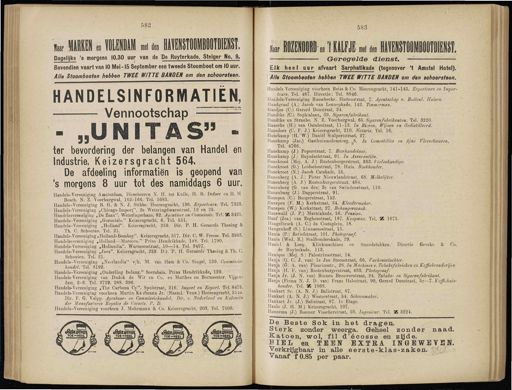 582 683 tar MARREN . ill - i fa H4ÏEHST00MBOOTDIENST . Dagelijks '* morgens 10.30 uur , van de De Ruyterkade , Steiger No . 9 . Bovendien vaart van 10 Mei- 15 September een tweede Stoomboot om 10 uur . Alle Stoombooten hebben TWEE WITTE BAHDEH om den schoorsieen . HANDELSINFORMATIES Vennootschap — - „ UN IT AS " - ter bevordering der belangen van Handel en Industrie , Keizersgracht 564 . De afdeeling information is geopend van ' s morgens 8 uur tot des namiddags 6 uur . Handels-Vereeniging Amsterdam , Directeuren N . H . ter Kuile , H . B . Defoer en H . M Bosch . N . Z . Voorburgwal , 162-166 . Tel . 5683 . Handels-Vereeniging B . G . & N . J . Stibbe . Heerengracht , 136 . Exporteurs . Tel . 7323 . Handels-Vereeniging „ Chicago-Importf '. 2e Weteringdwarsstraat , 12 en 25 . Handelsvcreeniging „ De Zaan ". Weteringschans ; 82 . Agentuur ew Commissie . Tel . SE 8425 . Handels-Vereeniging „ Gorontalo ." Keizersgracht , 6 . Tel . 551 . Handels-Vereeniging „ Holland ". Keizersgracht , 259 . Dir . P . H . Geraerds Thesing & Th . C . Schouten . Tel . 21 . Handels-Vereeniging „ Holland-Bombay ". Keizersgracht , 517 . Dir . C . W . Freese . Tel . 8983 . Handelsvereniging . Holland—Marocco.""Prins-Hendrikkade , 148 . Tel . 1790 . Handels-Vereeniging „ Hollandia ". Warmoesstraat , 10—14 . Tel . 9497 . Handels-Vereeniging „ Java ". Keizersgracht , 259 . D'.r . P . H . Geraerds ' Thesing & Th . C . Schouten . Tel . 21 . Handels-Vereeniging „ Neerlandta " v/h . M . van Ham & Co . Singel , 139 . Commissie- handel . Tel . 8192 . Handels-Vereeniging „ Onderling Belang ." Soerabaia . Prins Hendrikkade , 129 . ' Handels-Vereeniging van Dudok de Wit en Co . en Matthes en Bormeester . Vijgen- dam , 2- 6 . Tel . 3729 . 288 . 296 . Handels-Vereeniging « The Carbona Cy ". Spuistraat , 216 . Import en Export . Tel . 8475 . Handels-Vereeniging voorheen Martin Ka ifmann Jr . ( Naaml . Venn .) Heérengraclit , 554a . Dir . F . G . Volpp . Agentuur - en Commissiehandel . Dir , v . Nederland en Koloniën der Manufactures Rot/ales de Corsets . P . D . Handels-Vereeniging voorheen J . Mohrmann & Co . Keizersgracht , 203 . Tel . 7506 . tap ROZENÜORD eD ' t KALFJE ê fa HAVEK3T00MB00TDIENST . 1 Geroffelde dienst , —■ El Je heel uur afvaart Sarphatikade ( tegenover ' t Amstel Hotel ). Alle Stoombooten hebben TWEE WITTE BAHDEH om den schoorsteen . Handels Vereeniging voorheen Beiss & Co . Heerengracht , 141-145 . Exporteurs en Impor- teurs . Tri . 487 . Directie : Tel . 8846 . Handels-Vereeniging Boosebeeke . Hartenstraat , 7 . Agentschap v . Buitenl . Huize ». I landgraaf ( A .) Jacob van Lennepkade , 142 . Timmerman . Handjes ( C .) Gerard Doustraat , 24 . Handtke ( C .) Sophialaan , 39 . Sigarenfabrikant . Handtke en Straube . N . Z . Voorburgwal , 65 . Sigarenfdbrikanten . Tel . 3220 . Hanecke ( H .) van Ostadestraat , 11-13 . In Bieren , Wijnen en Gedistilleerd . Hanedoes ( C . Ei J .) Keizersgracht , 210 . Notaris . Tel . 16 . Hanekamp ( H . W .) Daniël aialpertstraat , 27 . Hanekamp ( Jac .) Gasthuismolens teeg , A 8 . In Comestibles en fijne ' Vleescnwaren . Tel . 4766 . Hanekamp ( J .) Peperstraat , 7 . Bierhandelaar . Hanekamp ( J .) Ruysdaelstraat , 91 . In Assurantiën . Hanekroot ( Mej . A . J .) Bustenburgerstraat , 863 . Verloskundige . Hanekroot ( G .) Leidsohestraat , 78 . Huis . Boekhouder . Hanekroot ( N .) Jacob Catskade , 15 . Hanenberg ( A . J .) Pieter Nieuwlandstraat , 68 . Melkslijter . Hanenberg ( A . J .) Bustenburgerstraat , 404 .' Hanenberg ( G . van den ) 2e van Swindenstraat , 110 . Hanenbnrg ( J .) Dapperstraat , 91 . Hanepen ( C .) Borgerstraat , 152 . Hanepen ( F . M .) Kerkstraat , 34 . Kleedermaker . Hanepen ( W .) Kerkstraat , 27 . Behangerszaak . Hanewald ( J . P .) Marnixkade , 56 . Pension . Hanf ( Jos .) van Eeghenstraat , 187 . Koopman . Tel . SE 1675 . Hangelbroek ( A . C .) da Costaplein , 18 . Hangenhoff ( S .) Linnaeusstraat , 15 . Hania ( P .) Retiefstraat , 101 . Photograaf . Hania ( Wed . K .) Stadhouderskade , 29 . Hanii-1 & Laeg . Klinkmachines en Smcedstukken . Directie Geveke & Co . de Ruyterkade , 113 . Hanique ( Mej . S .) Palestriiiastraat , 14 . Hanja ( O . C . J . van ) Ie Jan Steenstraat , 66 . Varkensslachter . Hanja ( G . A . van ) Planciusstr ., 28 . /» Machines v . Tahaksfabrieken en Koffiebranderijen Hania ( H . F . van ) Bustenburgerstraat , 433 . Photograaf . Hanja Jr . ( J . N . van ) Binnen Brouwerstraat , 24 . Tabaks - en Sigarenfabrikant . Hanja ( Firma N . J . D . van ) Frans Halsstraat , 90 , Gerard Doustraat , 85—7 . Koffiehuis- houder . Tel . 515 1068 . Hankart Sr . ( A . N . J .) Balistraat , 87 . Hankart ( A . N . J .) Wcsterstraat , 54 . Schoenmaker . Hankart Jr . ( J .) Balistraat , 87 . Ie Etage . Hanlo ( J . H . M .) Keizersgracht , 107 . Hannema ( J .) Roemer Visscherstraat , 50 . Ingenieur . Tel . SE 3224 . De Beste Sok in het dragen . Sterk zonder weerga . Geheel zonder naad . Katoen , wol , fil d'éoosse en zijde . HIEL en TEEN EXTEA INGEWEVEN . Verkrijgbaar in alle eerste-klas-zaken . T$0 >^ Vanaf f 0.85 per paar .