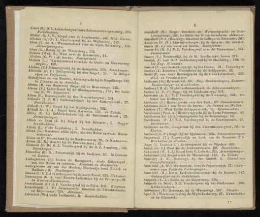 A,far ZÖ ^ hter,,l,rgWa,hoekSch ''''«^ ve g e rM « ee g>3 7 0 . ai'T fA ; L , ki 2 b Ö de Walersteeg , 158 . Alten m U W ^ e °; er iV L , ' 4 i " »' ii„r . J i V ., ° oven . Scheepssmid . AioJjen (.) Warmoesstraat tu*»chen do Oud * »„ w i ( tegen > 130 ™ ao uuae - en Nieu webrug - r#«i < m Ver/waren . J S ' * lm In ° rooge - A Sn . ! piÏÏ .! e5 , l Tl ! i ;« el b « de B'onwer,gr . 278 . fnl"A ( l Hr ne r e ^ raeht b ' J deB B'«auwburgwal 2B4 AU,n l^i B ; r " Chekade ^ ^-^, 83 . Rogge - Ju«nk / r '{ n Ude , Kapel * ff e S ' 5 - Broodbakker . Althu en C . Binnenkant bij de Bantammerstr 2il /■- ct „ , A,,B aji 0 - V00rb »^ 1 W de ^ Armsteeg , , 84 . A " T »"^„ D -' Nieuwend Ök bö de Baafje »,. te . Z *^,,, A 3tn r ^ i -^ Ra z ^ ^- r- d > Amb B s . dt°n ', ï xX- en ' rf - Mi.^«a ,. e „ Ament(C.)0.Z . Achterburgwal bij de korte Kiezel 133 * r„t ; Amerongen Jfc A , vanj N?euwe 7 » Kom-en-Eischwaren . '" uoengr.iu . Amer.foordt ( J .) 0 . 2 . Voorburgwal bii de Pulst 2l)B *- Amersfoordt IJ , P .) Keiier«.«i.lii i . i J j ü K ° op n " i n . en 5 Ameshoff ( Hl ) Singel timehcn ' de ' Warmoesgraeht ' en»Driei * koningstraat , 369 , ten huize van S . van Spreekens . Advocaat . Ameshoff ( P . J .) Heerengr . tusschen dé Leliegr . en Heerenstr . 368 . Ameszcn C °. ( X .) Kloveniersburgw . bij de Hoogstr . 88 . Grutter . Ames : ( H . J .) ten huize als boven . Koorn/actor . Amen Jr . ( H . J .) N . Z . Voorburgwal , over de Nieuwstraat , 154 . Timmerman * Amsen ( P .) Nieuwendijk bij de St . Jncobstraat , boven 177 . Amsink ( J . van ) 0 . Z . Achterburgwal bij de Stoofsteeg , 180 . In het Eng . Weeshuis . Amstel ( P . van ) Oostenburgergr . bij het Funen , 51 . Touwslager . Ancher ( J . Brouwer ) Binnenkant'bij de Schipperstr . 28 . Andel ( F . van den ) Heerengracht bij de Oude Leliestraat , 2881 Heel - en Vroedmeester . Anderson ( A .) Ilartenstrant , 39v Bngt Beekverkooper\-Kantoor - Boekverkooper en Boekbinder . Andrea(J . H.d ') WijdeGasthuismolensl . 5 . Schoorsteenveger . Andrea ( J . P . d ') Singel bij de Lijnbaansteeg , 201 . Andresen ( A . J .) N . Z . Voorburgwal bij de Kolksleeg , 149 , ten huize van Kirberger . Anderson ( J .) Heerengraoht over het Parky B & Commissionair . Andreson ( Geb .) ten huize als boven . Iw Garens en Wollen . Andries ( T .) Waal bij de Schipperstraat , 50 . KistenmmktrJ Audrietsen ( Wed . A .) Brouwersgracht bij de Korte Prinsengr . 49 . Andriesscn Jr . ( A .) Prinsengracht bijde-Brouwersgr : 52 . Andriessen ( P . J .) N . Z . Voorburgwal bij de Gravenstraat , 48 . Jnstituteur . Andriesse en Co ., Hoogstraat bij den Kloveniersburgwal , 36 , Ia Kanten . Andrcoli ( J . P .) Singel bij de ' Lij nbaanst , , 205 ;. Schoorsteenveger . Angenendt ( T .) Nieuwendijk en hoek van de Nieuwstr . 216 . Winkelier : itP Hoeden . Ange ( J . Tcisèdre L ') Keizersgracht bij de Vijzels Ir . 688- Anink ( G . J .) Waal bij de Jonkerdwarsstr . 69 . Houtvlotter : Ankersmit ( W . F . J .) Singel hoek O . Lelieslr . 353 . Artsenijmenger . Ankersmit ( J .) Singel over de Warmoesgr . 145 . In Tabak . Anneslcy ( J . H .) Heerengr . bij den Amstel . 2 . Consul tan Groot-Britlanie . Anneveld ( Ai W ) Warmoesslr . over de Papenbrugst . 39 » Onder ~ nemer van Publieke Vorkoopingcn . Anneveld ( H .) Korte Leidschedwarsstraat bij de Kruisstr . 145 . Onderwijzer in de Godsdienst . Anspach ( F . J .) Rokin bij de Gapersteeg . 134 . Anspach en Donk , N . Zr '. Voorburgwal bij het Postkantaar , 200 . Geldwisselaars . Antonijsen ( F .) Heerengt ; bij de Warmoesgr . 207 . Sleeper . Apol ( E .) Warmoesstraat bij de Wijde Kerksteeg . 60 . Kunstlakkcr en in Glaswerk , 1 *