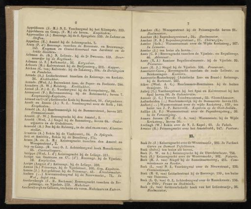 6 A ^ e M O0r " ( J V M -» 1LZ - V^'targwal b.j hei " ZfeV [ } HeeraD S '-*« d«O.Spie g eI . t r . ÏSQ . In Zaken , en AppeUon ( H .) Anutel bij de Achtergracht . 7 . Arata IP . d ) Heerengr . tu.«chen de Heerenstr . en Arbman J r . , D .) 11 . r . e »" iS ;^. Kalve " , r - " ü deT * Lees > tórLËSk- Aren M . ( A iL*iS ;.' traa ' tu,,ohen de KeiMr «« 5r - en *"*•* Arend . ( Wed . J .) Buitenkant tuss . de Pepe *. * i Arend ( J P ) O . Z . Voorburgwal b « do Kreupel.tceg , 86 . Aren.poot ( P .) Koopvaardij . Kapitein , ' """•'• Arnaud ea C°(d ">) Gelder.che Kade bij Boom.loot , 10 . Cargadoor » A*ndt en tonen ( J .) If . Z . Voorburgwal over do Kofk , m ' Kooplieden . ' Arnold ( A . J .) Haarlemmerdijk bij de Dommerstraat , boven « 07 Commissionair . « u-u <. Arnold . ( J . W .) Ueerengraoht bjj den Amslel , 8 . Arnold (. Wed . 1 .) Singel bij de Raamsleeg , boven 64 . Onder - wüxtres in de Godsdienst . ArnonTd ( A .) He . by de Hal.teeg , in de stad MANcroat . Klavier - S(0.£t0ft Arn.tein ( A .) Rokin bij do Vijch poort , 84 . In Spieeels Arti et Amicitia , Rokin bij de « raaibrug , 17 '; ' ^" wieVrltr'aifi /. 1W « i ~" »«"*« " en Am.te . en Arp en Comp . ( B van ) O . Z . Achterburgwal hoek oo . Con vo oiioopers . Arrippe ( Wed , I . ?). Keizer.gracht by de Leliegr . 311 . Arnpe van Qo.terzee en CV ( d ') Heerengr . bd de oo . Kooplieden . Arripe ( August d'J kZZni f ri . Ma ? f * ^.^/ B " 18 '™»». 100 . Gep . Kapitein . tZ ( V fi»««e»«*r«*t . b U de Pr,n.engr . 41 . Kleedermaker . A«cben (.} Kloven.ernburgwal bij de Ificuwmarkt , 71 . In trol , tiajet ens . A.soheribergh ( J.H . Hackman ) Heerengracht lu.»chen de Re - . en 7 Aa.cher ( E .) Weesper.traat bij de Prinsengracht boven 91 . Heelmeester . Asscher ( B .) Rapenburgerstraat , 84 » Heelmeester . Asscher ( P . B .) Rapenburger.traat , 17 . Chirurgijn . Asseler ( Geb .) Warmoesstraat over de Wijde Kerksteeg , 167 . In Linnens . A.eler ( J .) ten huize al . boven . Asser ( C . D .) Heerengracht tu.schen de Vijiehtr . en 46 , Advocaat . Asser ( E . J .) Kantoor Regulicrsdwarsstr . bij de Procureur . Asser ( E . J .) Singel bij de . Kassiers . Assuranlie- Mautscliappij ( Aziatische Zee - an Brand -) bij de . 11 . Aubrij ( C .) Voetboojjstraat bij het Spui en Kalver.traat bij bet Spui boven 90 . fit Galanteriën . Auener ( J . G .) Tweede Tuindwarsstraat ) 55 * Vlceschhouwer . Anfterheiden (.) Haarlemmerdijk bij de huize van J . P . Barneveld . Kapitein op de Oust-Indiën . Aulike ( A . F .) . Warmoesstraat over de Papenbrugsteeg , 38 . In de Vereeniging . Alissen Jansen ( H . H . C . A . von ) Warmoesstr . bij de Wijde Kerksteeg , boven 50 . Avelingh ( W .) Rokin over de If . Z . Kapel , 61 . In Tabak . Awater ( II .) Prinsengracht over het Am.telveld , 847 . Pastoor . B . Baak Jr . ( J . ) Keizer.gracht over de Westermarkt , 293 . In Turksch Garen en Damast Tafellinnen . Raak ( Jufvr .) ten huize al . boven . Baak ( C . W . en A .) Keizer.gracht bij de Baak ( E .) Keizersgracht over de Westermarkt , 302 . Notaris . Baak ( H . i . van ) Singel bij de Romeinsarmsleeg , 415 , Com- missionair en Reeder . Baak ( L . van ) If . Z . Voorburgwal over de Nieuwstraat , 158 » Commissionair . Baak ( 91 . H . van ) Leidiohe.lraat bij de Heerengr . 110 , ten huize van Thierens . Baak ( L . Q . van ) O . Z . Achterburgwal over de Baak ( J . van ) Gelder.chekade hoek van hel Leliestraatje , 26 . Heelmeester .