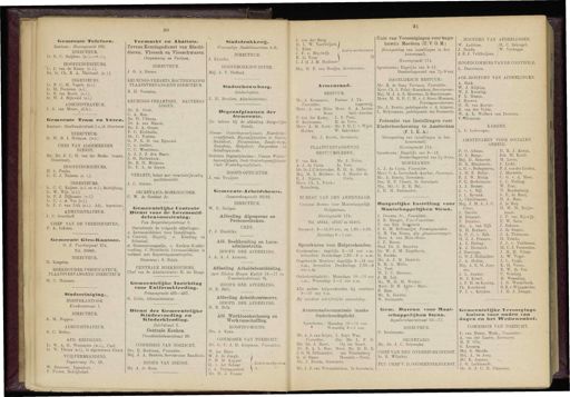 20 21 Leden ■ werknemers & Gemeente Telefoon . Kantoor : Heerengracht 295 . DIRECTEUR . Ir . G . C . Snijders , ( e . i . — w.i .). HOOFDINGENIEURS . Ir . J . van de Kamp . ( e . i .). Dr . Ir . Ch . E . A . Maitland . ( e . i .). INGENIEURS . Ir . F . C . M . Vogels , ( e.i .) Ir . M . Peekema . ( e.i .) Ir . B . ten Bosch . ( e.i .). Ir . W . J . Bijleveld ( e.i .) ADMINISTRATEUR . J . G . van Meurs . ( d.h .). fiemeente Tram en Veren . Kantoor : Stadhouderskade 1 o.jd . Overtoom DIRECTEUR . Ir . W . B . I . Hofman , ( w.i .) CHEF VAN ALGEMEENEN DIENST. Mr . Dr . J . C . H . van der Beeke . ( waarn . Directeur ). HOOFDINGENIEURS . H . J . Funke . Ir . O J . Neiszen ( e . i .). INGENIEURS . Ir . C . C . Kaijser . ( e.i . en w.i .) Bedrijfsine . Ir . W . Wijt . ( e.i .) Ir . P . J . Dijksman ( w.i .) Ir . C . v . A . Vos ( e.i .) Ir . F . J . van Lith ( e.i .). Adj . ingenieur . ADMINISTRATEUR . J . C . Groothoff . CHEF VAN DE VEERDIENSTEN . P . A . Lekskes . Gemeente Criro-Haatoor . O . Z . Voorburgwal 274 . Tel . 30900 . DIRECTEUR . H . Keegstra . BOEKHOUDER-VERIFICATEUR PLAATSVERVANGEND DIRECTEUR M . C . Munters . Stadsreiniging *. HOOFDKANTOOR Kwakersstraat 1 . ■ DIRECTEUR . A . M . Noppen . ADMINISTRATEUR . G . C . Boden . AFD . REINIGING . Ir . W . A . G . Weststrate ( w.i .), Chef . Ir . W . Ybema ( e.i .), in algemeenen dienst VUILVERBRANDING . Papaverweg No . 59 . W . Brouwer , Ingenieur . P . Puster , Bedrijfschef . Veemarkt en Abattoir . Tevens Keuringsdienst van Slacht- dieren , Vleesch en Vleeschwaren . Cruquiusweg en Veelaan . DIRECTEUR . J G . A . Reeser . KEURINGS-VEEARTS , BACTERIOLOOG PLAATSVERVANGEND DIRECTEUR R . H . Veenstra . KEURINGS-VEEARTSEN , BACTERIO - LOGEN . Dr . K . Over . O A . Bon . Dr . H . Ubbens . Dr . A . van Manen . Dr . J . A . Gunst . P . C . Eichholtz . Dr . C . Postma . G . P . G . D . van Egmond . C . v . Gelder . C . C . Weertman . A . J . J . J . den Baars . J . G . Buitenhuis . Dr . B . II . Molanus . Dr . F . A . de Zeeuw . VEEARTS , belast met veeartsenijkimdig markttoezicht. J . C . Stüven . SECRETARIS-BOEKHOUDER . C . W . de Grebber Jr . Gemeentelijke Centrale * Dienst voor de Levensmid- delen voorziening -.- Van Reigersbergenstraat 2 . Omvattende de volgende afdeelingen : a . Levensmiddelen voor Instellingen . b . Centrale Slagerij , c . Kleeding enSchoeisel . d . Gemeentemagazijn , e . Keuken-Kinder- voeding . /'. Distributie Levensmiddelen in verband met Regeeringsmaatregelen . Directeur : S . Polak . CENTRALE BOEKHOUDING . Chef van de Administratie : G . ter Heege . Gemeentelijke Inrichting voor Uniformkleediug . Prinsengracht 435—437 . G . Licht , Administrateur . Dienst der Gemeentelijke Mindervoeding en Hlnderkleeding . Falckstraat 2 . Centrale Keuken . Utrechtschedwarsstraat 30 . COMMISSIE VAN TOEZICHT . Drs . E . Boekman , Voorzitter . Mej . J . A . Sanders , Secretaresse , Raadhuis . HOOFD VAN DIENST . Mr . A . de Roos . Stadsdrukkerij . Voormalige Stadstimmertuin 4-6 . DIRECTEUR . J . KI under . HOOFDBOEKHOUDSTER . Mej . J . P . Hofland . Staflsscbouwburg . Leidscheplein . J . M . Bendien , Administrateur . Begraafplaatsen der Gemeente . ( In beheer bij de afdeeling Burgerlijke Stand ). Nieuwe Oosteriegraafplaats , Noorderbe- graafplaats . Begraafplaatsen te Sloten . Buiksloot , Nieuwendam , Zunderdorp , Ransdorp , Holysloot , Durgerdam en Schellingwoude . Gesloten Begraafplaatsen : Nieuwe Wester- begraafplaats , Oude Oosterbegraafplaats- Oude Westerbegraafplaats . HOOFD-OPZICHTER J . van Twuijver . Gemeente-Arbeidsbeurs . Passeerdersgracht 30/32 . DIRECTEUR . W . F . Detiger . Afdeeling Algemeene en Personeelzaken . CHEF . P . J . Hendriks . Afd . Boekhouding en Loon- administratie . HOOFD DER AFDEELTNG . J . A . A . J . Aernout . Afdeeling Arbeidsbemiddeling , ( met filialen Hoogte Kadijk 15—17 en Tesselschadestraat 9 ). HOOFD DER AFDEELING . H . R . Balk . Afdeeling Arbeidersreserve . HOOFD . DER AFDEELING . H . R . Balk . Afd . Werkloosheidszorg en Werkverschaffing . HOOFDCOMMIES . A Kaan . Drs COMMISSIE VAN TOEZICHT.Mr . (. O J . D . Kropman , Voorzitter . W . ten HaveW . J . de Jongh . ) P . H M . Kuyper f . J H . v . der Schaar ( Uden-werkgevers J . A . Verbaarschntt 1 " Mr . W . J . Vroom ; J . van der'Burg H . L . W . Voorhuijzen I C . Kitsz J . F . v . Muylwijk B . de Vries I . J.H . J.M . Madlener Mej . H . P . van Rooijen , Secretaresse . Armenraad . BESTUUR . Mr . J . Kruseman , Pastoor J . Th . Voorzitter . Lagerweij . Mevr . A . van Blitz - Mevr . S . A . Leven- Bonn bach- Asscher . P . van der Kamp . L . F . Pont.P . Keulemans . B . de Vries . Mevr . A . M . Koek - Mr . F . H . C . v . Wijck.Mulder . W . Schrikker . Mr . J . Everts , Secretaris . PLAATSVERVANGENDE BESTUURSLEDEN . Mr . J . Nol en . Is . Voet . E . H . A . Melis . A . J . Men des da Costa . P . van Eek . A . J . da Costa . Mr.Dr.J.C.Scbreuder. Mej . M . L . Biichner . E . J . Nijsten . Mevr . Ch . L . Pojak- Rosenberg . BUREAU VAN DEN ARMENRAAD . Centraal Bureau voor Maatschappelijk Hulpbetoon . Heerengracht 174 . Tel . 48344 , 42547 en 45405 . Geopend : 9—12.30 uur , en 1.30—5.30 . Zaterdags 9—1 uur . Spreekuren voor Hulpzoekenden . Kinderzaken : dagelijks 9—12 uur v.m . bovendien Donderdags 7.30 — 9 u . n.m . Ongehuwde Moeders : dagelijks 9—12 uur v.m ., bovendien Donderdags 7.30—9 uur n.m . Onderhoudsplicht : Maandags 10—12 uur v.m ., Woensdags 3—5 uur n.m . Alle andere hulpzoekenden bij voorkeur 9—10 uur v.m . Bij voorkeur schriftelijke aanmelding . Armenraadscommissie inzake Onderhoudsplicht . Spreekuren : Maandag 10—12 uur . * Woensdag 3 — 5 uur . J . Kuyt Wzn . Jhr . Mr . L . P . Op ten Noort . Mevr . Mr . M . H . E van Woudenberg Hamstra—Pouw . Mr . A . J . van Roijen , D . Voorzitter . Mr . Dr . J . Baert . Mr . E . A . L . Boas . J . G . M . Erftemeijer . G . di Gazar . Mr . J . Everts , Secretaris . Mr . J . J . van Wermeskerken , 2e Seen Unie van Vereenigingen voor onge- huwda Moeders ( U . V . O . M