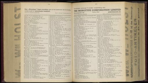 Gebruik tekstcoördinaten Transcriptie 884 885 Inlichtingen ontvangt U zonder verplichting van : THE MONOTYPE CORPORATION LIMITED 1 . 1A9 Telefoon 43606 AMSTERDAM ( C ) Keizersgracht 14 ^ Een „ Monotype " Supra machine giet al het materiaal dat de drukker nodig heeft in uitstekende kwaliteit . Gezet in „ Monotype " Rockwell series 371 e n 331 Gezet in „ Monotype " Rockwell series 371 en 391 Ingeschreven Handelsmerk MONOTYPE Moné ( W . F .) van Spilbergenstraat 69 . Monfrooy ( A . N .) Ie Helmersstraat 259 . Huis . Monfrooy ( Mej . C . D .) Krayenhoffstraat 33 . Monfrooy ( J . N .) Middenweg 230 . ( Vm . Wgrmeer ). Monincx & Co . Ferd . Bolstraat 119 . Monis ( A .) Emmastraat 25 . Monjan ( W .) Boterdiepstraat 27 . Monkelbaan ( E .) Vogelenzangstraat 6 . Monker ( G . P . J .) Ruysdaelkade 5 . Comm . in Effecten . Tel . 24822 . ' Monker ( P .) Stadhouderskade 7 . Monné ( A .) Spui 7 . Concierge . Monné ( A .) Ie Helmersstraat 170 . Chauffeur . Monné ( A . B . W .) Kijkduinstraat 49 . Monné ( A . M . O ) Speerstraat 21 . Monné ( O ) Geldersehekade 95 . Caféhouder . Monné ( F . J .) Jacob Catskade 41 . Aann . van Begrafenissen . Tel . 83617 . Giro M 2504 . Monné ( H . A .) Lodewijk Boisotstraat 13 . Giro M 3035 . Monné Jr . ( H . A .) Bosch en Lommerweg 36 . Giro M 3162 . Monné ( H . J .) Stolwijkstraat 22 . Monné ( J . H .) Waalstraat 59 . Monné ( N .) Postjeskade 111 . Monné ( N . J . L .) Dan . Willinkplein 19a . Monné ( Wed . P .) Ie Helmersstraat 6 . In Groenten , Aard - Monné ' S .) Monnikenstraat 23 . Giro M 3739 . Monné ( Th .) Makassarstraat 17 . Monné ( W .) Jacob Obrechtstraat 38 . Monné ( W . R . A .) Ie Helmersstraat 86 . Masseur . Tel . 80879 . Monnee ( J . W .) van Bossestraat 47 . Monnee ( W . L .) Marnixkade 90 . Waschverzender . Giro M 3735 . Monnereau ( E ) van Tuyll van Serooskerkenplein 52 . Mönnich ( H . J .) Elandsstraat 133 . Matrassenmaker . Tel . 31097 . Mönnich ( H . J . J .) van Speijkstraat 54 . Giro M 2987 . Monnich ( W . F . C .) van Baerlestraat 64 . Giro M 2783 . Mönnich ( Gebr .) Jan van Galenstraat 76 . In Matrassen . Monnickendam ( A .) Jan van Galenstraat S4 . Monnikendam ( A .) Zomerdijkstraat 23 . Monnickendam ( Wed . L . P .) 2e Weteringdwarsstraat 60 . Monnickendam ( Martin ) Stadhouderskade 92 . Portretschilder . Tel . 24792 . Monnier ( P .) Watergangscheweg 88 . Monnik ( A . J .) Livornostraat 7 . Monnik ( D . J . G .) Bloemgracht 138 . Caféhouder . Monnikendam ( A .) 2e Jan van der Heijdenstr . 78 . Giro M 398 . Monnikendam ( A .) Ruyschstraat 20 . Monnikendam ( B .) Ruysdaelstraat 31 . Werkplaats : Jacob Obrechtstraat 41 . Schoenmaker . Monnikendam ( B .) Corn . Trooststraat 20 . Monnikendam ( B .) Jac . Obrechtstraat 41 . Giro M 2093 . Monnikendam ( B . Ph .) Ruyschstraat 50 . Monnikendam ( D .) Weesperstraat 60 . Monnikendam ( F . K .) Zoomstraat 24 . Giro M 3447 . Monnikendam ( G .) St . Antoniesbreestraat 17 . Monnikendam ( H .) Molenbeekstraat 2 . Giro M 592 . Monnikendam ( I .) Topaasstraat 4 . Monnikendam ( I .) Holendrechtstraat 30 . Monnikendam ( Is .) Dusartstraat 65 . 3e Etage . Tooneelspeler . Monnikendam ( J .) Jan van Galenstraat 139 . 3e Etage . Red . Stenograaf . Giro M 1326 . Monnikendam ( J .) van Speijkstraat 32 . Monnikendam ( J .) Molenbeekstraat 2 . Giro M 1590 . Monnikendam ( M . S .) Vechtstraat 67 . Makelaar . Monnikendan » ( S .) Reitzstraat 4 . nmaijmy ». Monnikendam ( S . A .) Oudeschans 48 . Corsette , Monnikendam ( W .) Schollenbrugstraat 28 . Monossohn ( W . L .) Columbusplein 24 . Monotype Corporation Ltd . ( The ) Keizersgr . 142 . ' fel 43606 Alonroy ( B . J .) da Costakade 105 . 3e Etage Mons ( G .) Silenestraat 26 . Mons ( J .) Haarl . Houttuinen 92c . Mons ( J .) Heimansweg 8 . Mons ( J .) Hoofdweg 214 . Giro M 935 . Mons ( J .) Marco Polostraat 41 . Mons ( J . E .) de Wittenkade 190 «. Mons ( J . J .) Bilderdijkstraat 132 . Mons ( J . J .) Westerstraat 221 . Tel . 40871 en Brouwen . gracht 155 . In Brandstoffen . Tel . 48190 . Giro M m < Mons ( M.l Nassaukade 24 . Tel . 81110 . Giro M i«q Mons ( M .) de Wittenkade 49 . Mons ( P .) Westerstraat 221 . Giro M 1742 . Mons ( S .) Marnixkade 29 . Mons ( S . J .) Haarlemmerweg 183 . In Rijwielbanden . Mons ( S . J ) van der Hoopstraat 119 . Monsée ( F .) Jac . van Lennepstraat 355 . Behanger . Monsee ( F . W . A .) Orteliusstraat 125 . Giro M 3754 . Monsee ( G .) Zwanenburgwal 90 . Monsees ( A .) Celebesstraat 15 . Monsees ( A .) van Gentstraat 53 . Monsees ( Chr . P .) Madurastraat 122 . Giro M 1747 . Monsees ( H .) Haarlemmerweg 151 . Monsees ( H . W .) Insulindeweg 81 . Monsees ( H . W .) Pythagorasstraat 9 . Monsees Gzn . ( H . W .) Pieter Langendijkstraat 43 , Boekhandel , Leesbibliotheek en Boekdrukkerij.ltl 81852 , Giro M 4023 . Monsees ( J .) Bunsenstraat 15 . Giro M 1088 . Monsees ( Mej . W . C .) Hoogeweg 75 . Giro M 3152 . Monsees ( W . F .) Kalkoenstraat 6 . Monsees ( W . F .) Flamingostraat 5 . Monshouwer ( Wed : H .) Jac . van Campenstraat 76 . Monshouwer ( H .) Sophialaan 34 . Monshouwer ( Mej . M .) Sophialaan 31 . Tel . 26467 . Monshouwer — Roos ( Wed . S . H .) de Lairessestraat 54 . Tel . 29636 . Monshouwer ( Mej . T .) van Ostadestraat 311 . G1R0M6931 , Monshouwer ( W .) Koninginneweg 206 . Monshouwer & Hermans . Keizersgracht 751 . iiakelun . Monsjou ( L . J .) Weesperzijde 128 . Monsjou ( A . van ) Amstelveenscheweg 215 . Monsjou ( A . van ) Palmgracht 29 . Monsjou ( F . van ) Hobbemastraat 16 . Consul van Mlai . Tel . 91049 . Monsjou & Endel . Hobbemastraat IS . Agenten in Hout a Makelaars in fijne Houtwaren . Tel . 91049 , 91149 . Monsma ( F . J .) Pijnackerstraat 30 . Giro M 443 . Monsma ( J .) Linnaeusstraat 78 . 3e Etage . Monsma ( J .) Linnaeusparkweg 80 . Monsma ( J .) Kanariestraat 22 . Monsma ( Th .) Rijnstraat . 39 . Giro M 1295 . Monster ( B .) Weg langs Zijkanaa ! F ( Vm . Sloten ) F 214 . Monster ( C . A .) Heerengracht 559 . Giro M 2268 . Montaan Metaalhandel ( Niaml . Venn .) Rokin 9-15 . Tel . 