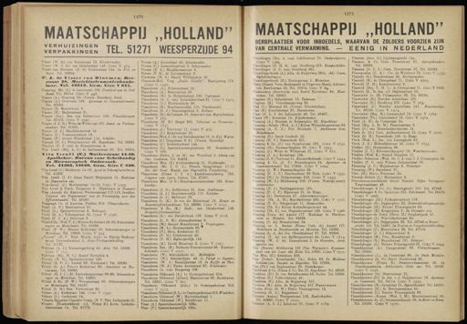 1270 1271 MAATSCHAPPIJ „ HOLLAND " ÏerpTkk'.n^n TEL . 51271 WEESPERZIJDE 94 MAATSCHAPPIJ „ HOLLAND " BERGPLAATSEN VOOR INBOEDELS , WAARVAN DE ZOLDERS VOORZIEN ZIJN VAN CENTRALE VERWARMING . — EENIG IN NEDERLAND Visser ( W . de ) von Zesenstraat 13 . Kleedermdker . " Visser ( W . J . de ) van OstaJestraat 143 . GlRO V 419 . " Visser van Bloemen ( J . de ) Kinkerstraat 144 . In Wol en Sajet . Tel . 83904 . 1 ". J . de Visser van Bloemen » Reestraat 588 . iTWuziekinsti-umentenhandelaar . Tel . 40813 . « en , Oiro V 615 . Vissering ( Mr . G .) de Lairessestr . 165 . President van de Ned . Bank . Tel . 28344 . Giro V 448 . Vissers ( A .) Hemweg 10c ( Voorin . Zaandam ) Smid , Vissers ( A .) Overtoom 149 . Agentuur en OommissieJiandel . Tel . 82339 . Vissers ( B ) Mauvestraat 9 . Vissers ( H .) Madurastraat 31 . Vissers ( Jac .) Jan van Galenstraat 109 . Vleesehhouwer . Tel . 81572 . Giro V 2540 . Vissers ( J . J . H .) Witte de Withslraat 107 . Rund - en Varkensslaehter . Tel . 81822 . Vissers ( J . J .) Shaekletonstraat 10 . Vissers ( L ) Vaucouverstraat 18 . Vissers ( P .) Govert Flinckstraat 114 . Schilder . Vissink ( D . J .) Pretoriusstraat 48 . Expediteur . Tel . 28295 " Visvliet ( P . J . van ) de Génesletstraat 4 . Vita Israël ( Mej . A . S .) de Lairessestraat 90 . Tel . 29305 . Vita Israël ( E .) Mui derstraat 14-16 . Apotheker . Bureau voor Scheikundig en Microscopisch Onderzoek . Tel . 41868 , 4S830 . Oem . Oiro C 88 ©. Vita Israël ( G .) Muiderstr . 14-16 . Agent in Schoenfoufnituren . Tel . 41S63 . Vita Israël ( I . J .) Jonas Daniël Meijerplein 15 . Makelaar in Diamanten enz . Vita-Israël . ( J .) Muiderstr « at 14-16 . Giro V 2105 . Vita Israël & Perth . Tnlpstraat 2 . Makelaar » in Diamant Vita ( Arnold de ) Kantoor : Warmoesstraat 117-119 . Drukker . Uitgever der Prijscourant van de Vereenïgïny voor den Effectenhandel , tel . 42492 . Vitftgraph Co ; of America , Postbus 619 . Filmproducers . " Vitali ( A . P .) Bataviastraat 51 . Vitali ( G .) Egelantiersstraat 6 . Behanger . Vitali ( G . A .) Tidoresstraat 55 . Giro V 1796 . Vitali ( P . J . A .) üelistraat 9 . Vitali & Zn . ( Wed . P . A .) Nieuwe Kerkstraat 48-50 . Schoorsteenvegers en Metselaars . Tel . 50236 . Vitali ( P W .) Nieuwe Kerkstraat 50 . Schoorsteenveger en Metselaar . Tel . 50236 . Giro V 554 . .„ Vitesse " ( N . V . Eipl . Maatij . Auto - en Rijtuig Onderneming ) Commelinstraat 5 . Auto-Verhuurinrichting . Tel . 50767 . Vitringa ( A . J .) Linnaeusparkweg 45 . Arts . Tel . 53036 . Giro V 717 . Vitriuga ( Mej . M . C .) Roelof Hartplein 4 . Vitruly ( M . H .) Egelantiersstraat 186 . Vittali ( A . P . J .) Amstel 83 . Eierhandel . Tel . 50888 . Vittali ( G . A .) Nieuwe Kerkstraat 69 . Aannemer en Timmerman . Tel . 53092 . Vittali ( H . J . C .) KI . Kattenburgerstraat 88-90 . Schoorsteenveger en Metselaar . Tel . 54250 . Vittali & Zn . ( P . W .) Weesperstraat 60 . Schoorsteenvegersen Metselaars . Tel . 54197 . ? ï > Vittali ( S . M .) Gen . V etterstraat ' 32 . . Vitters ( A .) Kerkstraat 144 . Giro V 2342 . Vitters ( L .) Geulstraat 14 . V ittoria Egyptian Cigarette Camp . ( N V . Tie ) Leliegracht 16 . Vivario ( Hoed en fabriek v/h . Firma R .) Korte Leidschedwarsstraat 14 . Tel . 87779 . Viveen ( A .) Zoomstraat 43 . Schoenmaker . Viveen ( O ) Leimuidenstraat 3 . Schoenmaker . Viveen ( E . A .) Magalhaensstraat 8 . Viveen ( P . K .) de Lairessestraat 9 . Vheboxse ( M . S .) Daniël Willinkplein 40 . Vlaamsch-Holl . Verg . „ Guido Gezelle ". Baarsjesweg 179 . Giro G 1450 . Vlaanderen ( A .) Polanenstraat 56 . Vlaanderen ( A .) Mauvestraat 25 . Vlaanderen ( B .) Ie Helmersstraat 190 . Teekenaar . Vlaanderen ( G . C . van ) Leimuidenstraat 37 . Giro V 2465 . Vlaanderen ( O ) Houtmankade 96 . Vlaanderen ( E .) Haarlemmerdijk 118 . Vischhandel . Vlaanderen ( G . J .) Semarangstraat 8 . Kellner . Vlaanderen ( H .) da Costastr . 55 . Aannemer van Begrafenissen . Giro V 569 . Vlaanderen ( H . E .) Singel 360 . ' Advocaat en Procureur . Giro V 1837 . Vlaanderen ( J .) Veerstraat 11 . Giro V 403 . Vlaanderen " ( J .) Bataviastraat 35 . Vlaanderen ( Wed . J .) 2e van S windenstraat 16 . In Kol . Waren . Vlaanderen ( J .) Dorpstraat B 51 . ( Voorm . Sloterdijk Vlaanderen ( J .) Bestevaerstraat 144 . Vlaanderen ( J .) Spaarndam merplantsoen 28 . Brandwacht . Giro V 688 . Vlaanderen ( Gebrs . J . en M .) van Woustraat S.Admin.van Onr . Goederen . Tel . 24938 . Vlaanderen Mzn . ( J .) A rchimedesweg 81 . Boekhouder . Vlaanderen ( Mr . J . C . L .) Nieuwe Spiegelstraat 17-21 Dir . der Amst . Maatij . van Ongevallen Verzekering . Vlaanderen ( Firma J . F . A .) Amstelveenscheweg 755 . uitgever van Opera Gidsen . Tel . 27501 . Vlaanderen Mzn . ( J . G .) Haarlemmermeerstraat 162 . Bouwkundige . Vlaanderen ( J . G .) GaSelstraat 31 . Oem . Ambtenaar . Vlaanderen ( J . J .) Haarlemmerdijk 118 . Schilder . Vlaanderen ( J . J .) Balistraat 78 . Vlaanderen Jr . ( K .) 2e van der Helststraat 18 . Kruier en Brandstof fenhandelaar . Tel . 29696 . Giro V 2137 . Vlaanderen & Zn . ( K .) Zaak : van Ostadestraat 148 . Brandstof fenhandelaar . Vlaanderen ( K .) van Ostadestraat 129 . Giro V 2618 . Vlaanderen ( L . P . M .) Alexanderstraat 9 . Vlaanderen ( M .) Gerard Brandtstraat 3 . Verpleegster . Vlaanderen ( M . L .) Houtmankade 63 . Vlaanderen ( P .) Bern . Kochstraat 21 . Vlaanderen ( P . H .) Celebesstraat 40 . Vlaanderen ( P . H .) Zqeburgerdijk 152 . Vlaanderen ( R .) David Blesstraat 2 . Giro V 1297 . Vlaanderen Rzn . ( R .) Bosboom-Toussaintstraat 36 . Kantoorbediende . Giro V 2221 . Vlaanderen ( W .) Schinkelkade 41 . Melkslijter . Vlaanderen ( W .) Sehinkelkade 43 . In Tabak en Sigaren . Vlaanderen ( W . J .) Zaandijkstraat 18 . In Koffie en Thee . Vlaanderen ( W . J .) Pieter Aertzstraat 67 . Kruidenier . Vlaanderen ( A . van ) Hoogeweg 102 . Vlaanderen Oldenzeel ( A .) Ie Oosterparkstraat 214 . Vlaanderen Oldenzeel ( Albert ) Blasiusstraat 66 . Boekbinder . Tel . 52851 . Giro V 827 . Vlaandere