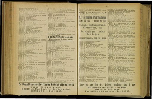 Gebruik tekstcoördinaten Transcriptie 416 41 ? Naar en van Delft , iedepen werkdag n.m . BALHÜIZEN & VAN WEERT . - Tel . 42308 . ROKIN o/d . Ned . Bank . Van SINGEL 99 n.m . 4 uur Tel . 49087 . De Dagelijksche Delftsche Pakschuitendienst ( BALHÜIZEN & VAN WEERT ). ROKIN old . Ned . Bank . — Tel . Int . 42308 . SINGEL 99 . — Tel . 49087 . ' Hendriks ( E . Linnaeüsdwarsstraat 35 . Hendriks ( E .) Overtoom 401 . Boekhouder . Hendriks ( Gr .) Kerkstraat 54 . huis . Handelsagent . Vert . van Dijk , Boolsma Sf Co . te Enschede . Tel . 34136 . Hendriks Jr . ( 6 .') van der Hoopstraat 20 . Kleedermaker . Hendriks ( G . J .) Nigellestraat 135 . Hendriks Sr . ( Gr . J .) van der Hoopstraat 20 . In Groenten . Hendriks ( G . W .) Ie Atjehstraat 69 . Hendriks ( H .) Marnixstraat 14 . : Hendriks ( H .) Elandsstraat 176 . Hendriks ( H .) Agatha Dekenstraat 25 . Hendriks ( H .) Kleine Kattenburgerstraat 30 . In Tabak en Sigaren . Hendriks ( H .) Emmastraat 9 . Kapper . Hendriks ( H .) Jacob Catskade 27 . Leeraar Schoonschrijven . Hedriks ( H .) 3e Schinkelstraat 17 . Hendriks ( H .) Palmgracht 17 . Hendriks ( H .) Linnaeusslraat 35 . Kantoorbediende . Hendriks ( H .) Thérèse Sc hwartzestraat 5 . Hendriks ( H .) Distel weg 54 . Hendriks ( H .) Harmoniehof 56 . Kunstschilder . Hendriks ( H .) van Helt Stocadestraat 31 . Wasschervj . Hendriks Czn . ( Wed . H .) Nieüwendijk 41 — 43 . Hendriks ( H . C .) Marnixstraat 255 . Stucadoor . Hendriks ( H . J .) Sumatraplantsoen 14 . Agent van Politie . Hendriks ( H . J .) Jacob van Campenstraat 30 . Hendriks ( H . S .) Tollensstraat 66 . Hendriks H . W .) Kleine Kattenburgerstr . 127 . Metselaar . Hendriks ( J .) Adm . de Ruijterweg 70 . Huis . Inspecteur Levensverzekering Maaiij . „ Utrecht " . Hendriks ( J .) Kerkepad 2 ( Voorm . Nieuwendam ). Hendriks ( J .) Jacob van Lennepkade 110 . Hendriks ( J .) Kalkoenstraat 16 . Hendriks ( J .) Bankastraat 51 . Handel in Brandstoffen . Hendriks ( J .) 2e Helmersstraat 83 . Hendriks ( J .) Witte de Withstraat 128 . Hendriks ( J .) Ie Weteringdwarsstraat 54 . B } anger . Hendriks ( J .) Zeeburgerdij kj 119 . Hendriks ( J .) Vijzelgracht il . Hendriks ( J .) van Hilligaertatraat 21 . Hendriks ( J .) Generaal Vetterstraat 34 . Aannemer van Begrafenissen . Hendriks ( J .) Kerkstraat 176 . Hendriks ( J .) van Houweningenstraat 19 . Hendriks ( J .) Lekstraat 28 . Hendriks ( J .) Akkerstraat 48 . Hendriks ( J .) Kwakersplein 7 . Kunstschilder . ■ Hendriks ( J .) Jozef Israelskade 97 . Hendriks ( J . A .) van Ostadestraat 340 . Waschverzender . Tel . 22011 . Hendriks ( J . A ) 3e Helmerstraat 63 . Pianohandelaar . Tel . 25511 . Hendriks ( J . A . Veerstraat 42 . Hendriks ( J . B .) Linnaeusd warsstraat 19 . Hendriks Ph . Jzn . ( J . C .) Turnerstraat 6 . Ie Penningm . der Ned . Vereen , van Chr . Kant . en Handelsbedienden , Afd . Amsterdam . Assistent-Accountant . Hendriks ( J . F . H .) Mesdagstraat 2 . Kapper . Hendriks ( J . G .) Huso de Grootkade 12 . Hendriks ( J . G .) Kerkstraat 324 . Bloemist . Hendriks ( J . H .) Olympiakade 40 . Hendriks ( J . H . A .) Jan Mayenstraat 25 . Hendriks ( J . H . L .) Laing's jtfekstraat 18 . Giro'H 166 . Hendriks ( J . J .) Brouwersgracht 78 . Schilder . Tel . 34183 . Hendriks ( J . J .) Celebesstraat 119 . Hendriks ( J . L . H .) Javastraat 50 . j Hendriks ( J . M .) Sumatraplantsoen 60 . Stucadoor . Hendriks ( J . N .) Cornelia Krusemanstraat 89 . GiroH 125 . Hendriks ( J . W .) van Hilligaertstraat 20 . Hendriks ( J . W .) Oosthuizenstraat 16 . ( Voorm . Nieuwendam ). Monteur . Hendriks ( J . W . G .) Javastraat 150 . Hendriks ( K .) Egelantiersstraat 105 . In Groenten Aardappelen ens . Hendriks ( K .) van Beuningenstraat 82 . Hendriks ( Mej . L .) Kwakersstraat 2 . Pensionhoudster . Hendriks ( L . J . H .) Jozef Israelskade 10 . Hendriks ( L . R .) Vrolikstraat 174 . In Chocolade en Suikerwerken . Hendriks ( Wed . M .) Overtoom 379 . - Hendriks ( Wed . M .) Ruysdaelstr&at 97 . Hendriks ( Wed . M .) Linnaeusslraat 63 . Hendriks ( M . H .) Keizersgracht 294 . Makelaar en Comm . in Assurantiën . Hendriks ( Wed . M . J .) Sloterkade 81 . Hendriks ( M . M . H .) van Hogendorpstraat 19 . Hendriks ( N .) Frederik Hendrikplantsoen 76 . Ie Etage . In Assurantiën . Hendriks ( O . G .) Keizersgracht 90 . HENDRIKS ( FUini r .) Vijzelstraat 81 . b/d . Munt . Tel . 44763 . KANTOORBOEKHANDEL Advertentiebureau . Drukkerij . Binderij . Hendriks ( P .) Kraraatweg 60 . Hendriks ( P .) Orteliusstraat 51 . Hendriks ( P ) Bentinckstraat 40 . Hendriks ( P .) Bestev&erstraat 138 . Behanger . Hendriks ( Ph .) Zeedijk 107 . In Visch en Kruit . Hendriks ( Ph .) Nieuwmarkt 20 . Hendriks ( P . A .) Keizersgracht 557 . Leeraar in Teekenen en Kunstgeschiedenis . Hendriks ( P . A .) Jan Pieter Heijestraat 63-65 . Giro H 7865 . In Manufacturen . Hendriks ( P . G .) Maanstraat 39 . Hendriks ( P . G .) Zuivelplein 30 . Hendriks ( P . G . R .) Schoutenstraat 11 . Metselaar . Hendriks ( P . G . R .) Hoofdweg 280 . Hendriks ( P . J .) Hoofdweg 382 . Gem . Ambtenaar . Hendriks ( Wed . Ph . J .) Kwakersstraat 12 . Hendriks ( R .) Adm . de Ruijtèrweg 59 . In Tabak en Sigaren . Hendriks ( S .) Ie Atjestraat 63 . Hendriks ( Th .) Burmaustraat 30 . Koopman . Hendriks ( Th .) Rustenburgerstraat 64 . Hendriks ( Th .) van Kinsbergenstraat 29 . Hendriks ( Th . A .) Kerkstraat 247 . Llectro-Technisch Bureau . Hendriks ( W .) Gerard Doustraat 254 . Hendriks ( W .) van Boetzelaerstraat 10 . Hendriks ( W .) Govert Flinckstraat 388 . Hendriks ( W . A .) Lange Leidschedwarsstraat 44 . Boekdrukker . Hendriks ( W . F .) Sumatraplantsoen 39 . Hendriks ( W . G .) Ombilinstraat 9 . Hendriks ( W . J .) Rhijnvis Peithstraat 24 . Gasfitter . Hendriks ( W . J .) Linnaeusstraat 37a . Hendriks & Co . ( W . J . A .) Stationsplein 1 . ( Centraal Station ). Tel . 49614 . Hendriks ( Dr . W . L .) Harmoniehof 17 . Bir . der Afd . Onderwijs . Tel . 26433 . Giro II 3659 . Hendriks ( W . L . J .) Ringdijk 23 . Steenhouwer . Hendriks ( Fir