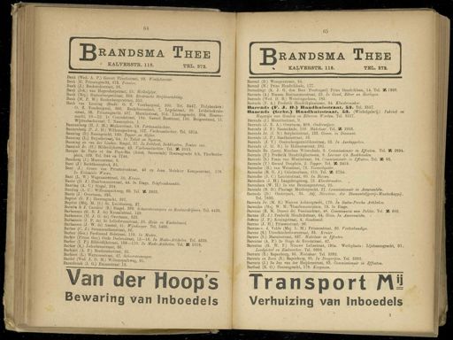 Gebruik tekstcoördinaten Transcriptie 64 65 JJrandsma Thee K4-LVERSTR . 115 . TEL . 272 . ^*™ MI ' "" ™ ' " * " — m t . ii n n i m inii im nrmmii , ,„, Bank ( Wed , A . P .) Govert Flinckstraat , 99 . Winkeliersier . Bank ( H ) Prinsengracht , 675 . Pension . Bank ( J .) Brederodestraat , 28 . Bank ( Joh .) van Hogendorpstraat , 35 . Melkslijter . Bank mH wf p bn ? eI , Stl ' aat ' 353 " «"**«* Strijkinrichling . £ ank ( M . P . W .) Eustenburgerstraat , 353 . Bank van Leening ( Stads ) 0 . Z . Voorburgwal , 300 . Tel . 3447 Hulnbanken • + ' f ' 7 ( l 00r ^ wal ' 30 °- Kechtboomsloot , 7 . Lepelstraat , 20 Leidschekrms " mSt 10 ^ n 7 ^ ch S 4 ? 7 . Marnixstraat , 315 . P Lindengracht , 204 . HeZ - wSïUtfc^ïïïS ^^ MD — > 156 . Borgerstraat , 11 . Bannenberg ( H . J . M .) Jonkerstraat , 18 . Varkensslachter . BannLTn^Ti ^ ^ T 1 * 1 ™* 157 ' *»** tórf*r . Tel . 5314 . fanning ( D .) Rozengracht , 160 . Tapper en Slijter Banning ( 1 .) Ruyschstraat , 54 . In Tabak en Sigaren Snnïnk Jr mi '% ff\^^t , ' t U Zead oek , DekUeeden , Tenten en ,. Bamunk Jr . ( H .) Bilderdijkstraal , 49 . Varhensslachter . Tel X 2513 ^^ m%£££Viï : ( Am3t - !~«*> ^^ racht b/h . Thorbecke- Bansberg ( J .) Marcusstraat , 9 . Bant ( J .) Reehtboomsloot , 25 . Bm y J iS ^^ rinStererStraat ' 48 £ Q J ° a * **** Kemperstraat , 118 . Bant ( L . W .) Wagenaarstraat , 50 . Inw . I^f(A J ' kfsiS m 20t ' aat ' 44 ' 3e Et8ge - W**W , Banting ( A . C .) " Willemsparkweg , 60 . Tel . 35 3923 Bantz ( J .) Overtoom , 338 . Baptist ( G . F .) Heerengracht , 397 . Baptist ( Mej . M . H .) St . Lnciënsteeg , 27 BaTblnsot ^ T^^ZtiSnt '^^ ™ ' t **»*****- ™- « 88 . Barbanson ( II . J . G . de ) Overtoom , 322 BarbanZ rt W ^ w ^^ f *' 23 . Huis - en Kachelsmid , Baibanson ( J W . de ) Amstel , 51 . Wijnkooper . Tel . 5486 . Barber ( O . J .) Swammerdamstraat , 66 Barber ( Gez .) Ferdinand Bolstraat , 110 . In Modes . Barter IP , %$ ^ w ^ ff ^- 12 ~™- * Mode-Artikelen . Tel . 4239 . fl»rW Ti s '\ , Bllderd y tstraa '> 108-110 . In Mode-Artikelen . Tel . 25 2918 . Barber ( K .) Jodenbreestraaat , 66 Barbie'ri ( A . P .) Brederodestraat , 25 . Barbien ( L .) Warmoesstraat , 47 . Bardet ( Wed . J . D . M .) Willemsparkweg , 91 .' Barenbroek ( J . G .) Emmastraat 13 . n der Hoop's Bewaring van Inboedels ^ randsma Thee % KALVERSTR . 11B . TEL . 272 . Barend ( B .) Weesperstraat , 55 . Barend ( N .) Prins Hendrikkade , 177 . Barendregt ( K . J . G . den Beer Poortugael ) Prins Hendriklaan , 14 . Tel . 26 1960 . Barends ( A .) Binnen Bantanimerstraat , 22 . In Goud , Zilver en Horloges . Barends ( Wed . I ). B .) Weteringschans , 185 . Barends ( F . A .) Frederik Hendrikplantsoen , 34 . K/eedermaker . Barends ( F . 1 . O .) Raadhuisstraat , 53 . Tel . 3557 . Bacends ( fneur .) Raadhuisstraat , » 3 . ( Winkelgalerij .) Fabriek en Magazijn van Gouden en Zilveren Werken . Tel . 3557 . Barends ( J .) Mauritsstraat , 9 . Barends ( J . E . A .) Overtoom , 568 . Onderwijzer . Barends ( J . F .) Nassaukade , 109 . Makelaar . Tel . ' M , 2936 . Barends Jr . ( J . N .) Sarphatistraat , 133 . Comm . in Diamant . Barends ( J . F .) Raadhuisstraat , 53 . Barends ( J . T .) Oostenburgermid denstraat , 32 . In Aardappelen . Barends ( J . IJ . B .) Ie Helmersstraat , 281 . Barends Bz . ( Leon ) Nicolaas Witsenkade , 3 . Commissionair in Effecten . Tel . ' M , 2894 . Barends ( P .) Frederik Hendvikplaotsoen , 8 . Leeraar i/A Boekhouden . Barends ( S .) Frans van Mierisstraat , 54 . Commissionair , in Effecten . Tel . ' M , 93 . Barends ( Y .) Gerard Douplein , 2 . Tapper . Tel . X 2424 . Barendse ( B .) van Woustraat , 72 . Tooneelspelèr . Barendse ( B . G . J .) Ceintuurbaan , 210 . Tel . K 3734 . Barendse ( J . O ) Laurierstraat , 60 . In Bieren . Barendsen ( J . H .) Langebrugsteeg , 13 . Kleedermaker . Barendsen ( W . H .) Ie van Beuningenstraat , 23 . Barendz ( B . D .) Plantage Muidergracht , 27 . Commissionair in Assurantiën . Barendz ( D .) Oosterpark , 35 . Adj . Directeur , der Diamantslijperij-Maatschappij . Tel . 7830 . Barendz Jr . ( M . E .) Nieuwe Achtergracht , 170 . In Gutta-Percha Artikelen . Barendze ( Mej . W . M .) tiaarlemmerplein , 19 . Ie Etage . Barenne ( É . M . Dusser dé ) Vossiusstraat , 48 . Commissaris van Politie . Tel . ' M , 602 . Barens ( F . J .) Frederik Hendrikstraat , 64 . Huis . In Assurantiën . BaSPens ( J . F .) Koningstraat , 4 . Goudsmid . Barens ( J . H .) Prinsenstraat , 20 . Barens-v . d . Velde ( Mej . L . M .) Prinsenstraat , 20 . Verloskundige . Barens ( S .) TJtrechtschedwarsstraat , 65 . Kruier . Barens ( S .) Marnixstraat , 337 . Makelaar in Effecten . Barentsz ( A . P .) 2e Hugo de Grootstraat , 47 . Barentsz ( H . W . F .) Nieuwe Leliestraat , 190 «. Werkplaats : Lijnbaansgracht , 91 . Loodgieter en Zinkwerker . Tel . 8908 . Barentz ( E .) Rapenburg , 95 . Makelaar . Tel . 3392 . Barentz en Zoon ( E .) Rapenburg , 95 . In Drogerijen . Tel . 3392 . Barentz ( J .) 2e Jan van der Heijdenstraat , 83 . Oommissionair in Effecten . Barfoed ( E . O .) Heerengracht , 178 . Koopman . Transport Kü Verhuizing van Inboedels 3