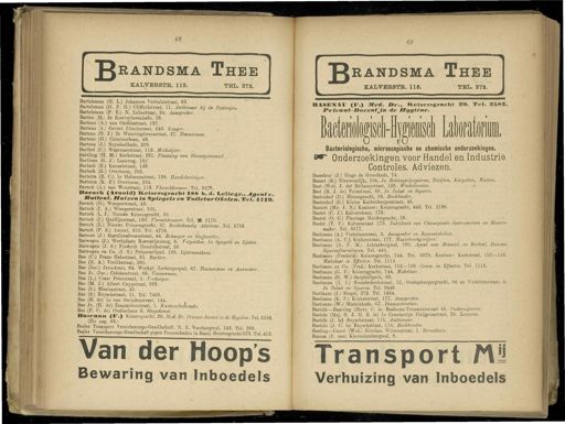 Gebruik tekstcoördinaten Transcriptie 68 69 RANDSMA Thee KALVERSTR . 115 . TEL . 272 . - 0 ^ randsma Thee TEL . 272 . KALVERSTB . 115 . Bartelsman ( H . L .) Johannes Verhulststraat , 63 . Bartelsman ( H . P . H .) ClifFordstraat , 11 . Ambtenaar lij de Posterijen . Bartelsman ( P . E .) N . Leliestraat , 24 . Aanspreker . Barten ( H .) 2e Kostverlorenkade , 28 . Bartens ( A .) van Ostldestraat , 137 . Bartens ( A .) Govert Flinckstraat , 243 . Kapper . Bartens ( D . J .) 2e Weteringdwarsstraat , 27 . Timmerman . Bartens ( H .) Ceintuurbaan , 43 . Bartens ( J .) Buysdaelkade , 209 . Barthel ( C .) Wagenaarstraat , 112 . Melkslyjter . Bartling ( H . M .) Kerkstraat , 231 . Plaatsing van Dienstpersoneel . Bartman ( 6 . J .) Laanweg , 18 /. Bartsch ( E .) Kanaalstraat , 146 . Bartsch ( E .) Overtoom , 252 . Bartstra ( E . C .) Ie Helmersstraat , 138 . Handelsreiziger . Bartstra ( K . E .) Overtoom , 254 . Baruch ( A .) van Woustraat , 113 . Vleeschhouwer . Tel . 9376 . « ariirli ( Arnold ) Keizersgracht 188 ï ,. d . Iielie S r.,^«e «* u . Uuttent . Huizen in Spiegels en Toiletartikelen . Tel . 471 ». Barnch ( D .) Weesperstraat , 42 . Baruch ( I . A .) Weesperstraat , 105 . Baruch ( I . J .) Nieuwe Keizersgracht , 53 . Baruch ( J .) Quellijnstraat , 130 . Vleeschhouwer . Tel . 35 2170 . Barnch ( L .) Nieuwe Prinsengracht , 37 . Rechtskundig Adviseur . Tel . 5738 Baruch ( P . S .) Amstel , 310 . Tel . 4719 . Barvoet ( J .) Eeguliersdwarsstraat , 44 . Behanger en Stojfeerder . Barwegen ( J .) Werkplaats Rosmarijnsteeg , 6 . Vergulder . In Spiegels en lijsten Barwegen ( J . S .) Frederik Hendrikstraat , 56 . Barwegen en Co . ( J . S .) Prinseneiland , 103 . Lijstenmakers . Bas ( O ) Frans Halsstraat , 61 . Bartier . Bas ( E . A .) Vrolikstraat , 281 . Bas ( Jac ) Javastraat , 64 . Werkpl , Zeeburgerpad , 67 . Timmerman en Aannemer . Has Jr . ( Jae .) Celebesstraat , 66 . Temmerman . ■ Bas ( L .) Czaar Peterstraat , 5 . Veekooper . Bas ( M . J .) Albert Cuypstraat , 263 . Bas ( S .) Blasiusstraat , 45 . Bas ( S .) Euyschstraat , 11 . Tel . 7403 . Bas ( B . de ) Ie van Swindenstraat , 144 . Bas Jr . ( H . de ) Zaagmolenstraat , 1 . Kantoorbediende . Bas ( P . C . de ) Oudeschans 6 . Sleepdienst . Dasenan < ï \) Keizersgracht , 29 . Med . Dr . Privaat-Docent in de Hygiene . Tel . 2583 ( Zie pag . 69.1 Basler Transport Versicherungs-Gesellschaft . N . Z . Voorburgwal , 156 . Tel . 299 Basler Versicherungs-Gesellschaft gegen Fener schaden in Basel . Heerengracht 573 . Tel . 419 . Van der Hoop's Bewaring van Inboedels H.lSEÜiAl ' ( F .) mea . Br ., Keizersgracht 3 ». Tel . 3583 . Privuat- Bocent'jin tie Hygiene , Jacteriölögiscli-HjgieDiscli Latoratoium . Bacteriologische , microscopische en chemische onderzoekingen . ■•* Onderzoekingen voor Handel en Industrie Controles . Adviezen . Basseleur ( J .) Hugo de Grootkade , 74 . Basset ( E .) Nieuwendijk , 104 . In Behdngselpapieren , Tapijten , Karpetten , Matten . Bast ( Wed . J . del Bellamystraat , 126 . Winkelierster . Bast ( E . J . de ) Tuinstraat , 68 . In Tabak en Sigaren . Bastenhof ( D .) Bloemgracht , 59 . Boekbinder . Bastenhof ( G .) Kleine Kattenburgerstraat , 45 . Bastert ( Mr . J . N .) Kantoor : Keizersgracht , 442 . Tel . 2196 . Bastet ( C . J .) Kalverstraat , 173 . Bastet ( O . C .) Plantage Mnidergracht , 16 . Bastet ( T . F .) Kalverstraat 173 . Fabrikant van Ohirurgicale Instrumenten en-Messen- maker . Tel . 3517 . Bastiaans ( A .) Violettenstraat , 3 . Aanspreker en RouwwinJcelier . Bastiaans ( A . C .) Kinkerstraat , 177 . Muziekondgi-wijzer . Bastiaans ( A . F . M .) Achterburgwal , 160 . Agent van Binnenl . en Buitenl . Huizen . Sigarenfournituren . Tel . 445 . Bastiaans ( Frederik ) Keizersgracht , 744 . Tel . 5070 . Kantoor : Kerkstraat , 152 — 156 . Makelaar in Effecten . Tel . 1115 . Bastiaans en Co . ( Fred .) Kerkstraat , 152—156 . Comm . in Effecten . Tel . 1115 . Bastiaans ( G . F .) Keizersgracht , 744 . Makelaar . Bastiaans ( G . W .) Sarphafipark , 69 . Bastiaans ( I . I .) Noorderkerkstraat , 12 , Oostenburgergracht , 89 en Violettenstraat , 5 . In Tabak en Sigaren . Tel . 9448 . Bastiaans ( J .) Singel , 272 . Tel . 1964 . Bastiaans ( K . F .) Kinkerstraat , 177 . Aanspreker . Bastiaans ( W .) Mar-nixkade , 67 . Diamantwerker . Bastide — Baarslag ( Mevr . C . la ) Bosboom-Toussaintstraat 45 . Onderwijzeres . Bastide ( Mej . G . J . H . E . la ) Ie Constantijn Huijgensstraat , 76 . Leerares . Bastide ( J . la ) Euyschstraat , 115 . Ambtenaar . Bastide ( J . C . la ) Euyschstraat , 115 . Boekhouder . Basting — Gunst ( Wed .) Nicolaas Witsenstraat , 1 . Bovenhuis . Basum ( F . van ) Kloveniersburgwal , 8 . Transport t\ï Verhuizing van Inboedels