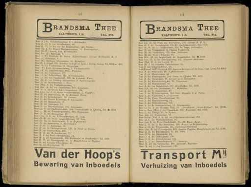 Gebruik tekstcoördinaten Transcriptie 140 141 RANDSMA Thee KAL VERSTE . 115 . TEL . 272 . ^ randsma Thee KALVERSTR . 115 . TEL . 272 . Boer ( A .) St . Willibrordusstraat , 111 . Zadelmaker . Boer ( A . J .) Ie van Swindenstraat , 43 . Boer ( A . T .) Ie Jan van der Heijdenstraat , 145 . Schilder . Boer ( H . A . B .) Binnen Bantammerstraat , 16 . Boekhandelaar . Boer ( H . H .) Amstel , 232 . Kleedermaker . Boer Pzn . ( J .) Balistraat , 8 . Boer ( J . W .) Ringkade , 30 . Boven . Rijksambtenaar . Leeraar Boekhouden M . O . Boer ( L .) Sluisstraat , 9 . Boer ( M .) Balthasar Floriszstraat , 55 . Kelkslijter . Boer ( P . A .) Singel , 338 . Makelaar in Koffie en Agent e . Buitenl . Huwen . Tel . 8055 en 7466 . Boer ( R . C .) Vondelstraat , 15 . Hoogleeraar . Boer ( W .) Korte Korsjespoortsteeg , 5 . Varkensslachter . Boer ( W . J .) Anjeliersstraat , 200a . Winkelier . Boer ( A . de ) Vrolikstraat , 375 . Boer ( A . de ) Tollensstraat , 114 . Matrassenmaker . Boer ( A . de ) van Ostadestraat , 208 . In . Koloniale Waren . Boer ( A . de ) van Limburg Stirumstraat , 9 . Sig ar enmaq azijn . Boer ( A . de ) Sumatrastraat , 7 . Huis . Boer ( Mej . A . de ) Vredenburgersteeg , 1 . Boer Dzn . ( A . de ) van Ostadestraat , 319 . Kruidenier . Boer ( A . A . de ) Groote Kattenburgerstraat , 160 . Boer J Az . ( A . J . de ) Korte Overamstelstraat , 7 . Winkelier . Boer ( C . de ) Dusartstraat , 39 . In Koloniale Waren . Boer ( C . de ) Leidschegracbt , 59 . Leeraar . Boer ( C . de ) Nieuwe Kerkstraat , 6 . Schoenmaker . Boer ( D . de ) Emmastraat , . 19 . Boer ( D . de ) Oosterpark , 57 . Boer . ( D . de ) Reinwardtstraat , 165 . Schoenmaker . ?° er S - ? t ^ Stadhouderskade , 134 . Commissionair in Effecten . Tel . üi 2059 . Boer ( D . H . de ) Rustenburgerstraat , 365 . Timmerman . Boer ( D . H . de ) Emmastraat , 19 . Boer ( Mej . D , K . de ; Wilhelminastraat , 40 . Huis . Boer ( D . M . de ) Pieter Langendijkstraat , 52 . Huis . Boer ( D . Th . de ) Keizersgracht , 2 . In Koffieextract . - Boer ( E . de ) Sparrenweg , 3 . Meubelmaker . Boer ( P . de ) Ie Atjehstraat , 25 . Boer ( F . de ) 2e Oosterparkstraat , 129 . In Tabak en Sigaren . Boer '. ( E . de ) Ceintuurbaan , 366 . Boer ( F . H . de ) Brederodestraat , 77 . Boer ( F . J . de ) Jacob Obrechtstraat , 78 . B ° er ™ w de ) Keizers g racilt > 555 . Boekbinder en Brocheerder *- Tel 5369 e ) r \' f ' „> Heerengracit , 83 . In Manufacturen en Tapijten . Boer ( G . de ) Cornelis Scbuytstraat 31 . Boer ( G . de ) Ruyschstraat , 77 . Van der Hoop's Bewaring van Inboedels Boer Jzn . ( G . de ) Frans . van Mierisstraat , 116 . Leeraar E . B . S . Boer ( G . J . de ) Leidscheplein , 19—21 . Koffehuishouder . Tel . 7713 . Boer ( G . W . de ) Ie Helmersstraat , 204 . 3e Etage . Onderwijzer . Boer ( H .' de ) Vossiusstraat , 8 . Pension Vondelpark . Boer ( H . de ) Vrolikstraat , 172 . Gem . Ambtenaar . Boer ( H . de ) Nieuwe Tolstraat , 95 . Boer Mzn . ( H . de ) Sarphatipark , 42 . Banketbakker . Tel . Z 2168 . Boer Azn . ( H . A . de ) Koninginneweg , 227 . Gemeente-Ambtenaar . Boer ( Wed . H . A . de ) Amstel , 61 . Boer ( H . J . de ) Johannes Verhulststraat , 10 . Boer ( I . de ) Kraijenhoffstraat , 25 . Boer ( Firma J.de)Pr.Hendrikk.l29 . J Ec / J ? ri en Szirsegoro.d . Seahisur . Comp Zif^.Tel.3054 . Boer ( J . de ) Stroomarkt , 29 . Koffiehuishouder . Boer ( J . de ! Meeuwenlaan , 43 . Boer ( J . de ) Prinsengracht , 784 . Comm . in Ejfecten . Tel . 4113 . Boer ( J . de ) Marnixkade , 10 . Leeraar in de Gymnastiek . Boer ( J . de ) Kloveniersburgwal , 35 . Timmerman . Boer ( J . de ) Hemonystraat , 50 . Boer ( J . de ) van Ostadestraat , 107 . Broodbakker . Tel . 4190 . Boer ( Joh . de ) van Ostadestraat , 61 . Me/kslijter . Boer ( J . de ) 2e Nassaustraat , 20 . Boer ( J . de ) Wilhelminastraat , 163 . Huis . Brigadier b . d . Politie . • Boer ( J . de ) Vaartstraat , 8 . Timmerman . Boer ( J . de ) Pieter Nieuwlandstraat , 93 . Boer ( J . de ) Haarlemmerweg , 35 . Boer ( J . de ) Bilderdijkstraat , 102 . Boer ( J . de ) 2e Oosterparkstraat , 12 . Kleedermaker . Boer en Co . ( J . de ) Kromme Waal , 16 . Astbestfabriek „ Noord-HollamV . Tel . 10020 . Boer en Zoon ( Wed . J . de ) Nassaukade , 123 . Winkeliers . Teil 8163 . Boer ( J . de ) Zeedijk , 36 . In Sigaren . Boer ( Joh . de ) Madurastraat , 93 . Boer-Muller ( Wed . J . A . de ) van Oldenbarneveldtstraat , 870 . Boer ( J . C . de ) Wijttenbachstraat , 67 . Boer ( Jan E . de ) Prins Hendrikkade , 20—21 . Export-Agent . Boer ( J . H . de ) Ie Jan Steenstraat , 136 . Wasch - en Strijkinrichüng . Boer ( J . H . de ) Weesperzijde , 131 . Cartonnage-Fabrikant . Boer ( Joh . H . de ) Prinsengracht , 666 . Agent in Tapijten , Manufacturen enz . Tel . 3788 . Boer ( J . H . de ) Frederiksplein 55 . Tel . 3690 . Boer ( J . H . de ) Marnixkade , 69 . Boer ( J . K . de ) Lindengraeht , 220 . Boer ( J . R . de ) Bilderdijkstraat , 102 . Boer ( J . T . de ) Passeerdergracht , 27 . Concierge . Boer ( K . de ) van Ostadestraat , 200 . Aannemer . Makelaar . Transport Tvi Verhuizing van Inboedels Boer ( K . de ) Ie Jan Steenstraat ,, 136 .