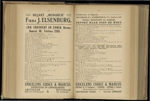 Use text coordinates Transcription 408 409 == BILJART „ MONARCH " = Firma J . EL SENBURG . JOH . ENSCHEDÉ EN ZONEN , Bureau : Damrak 00 . Telefoon 2250 . Enschedé ( J . W .) Heerengracht , 68 . Ensel ( A . M .) Nieuwe Achtergracht , 59 . Mellcslijtcr . Ensel ( S . M .) Nieuwe Kerkstraat , 139 . Enserinck ( Mej . G . W .) Marnixstraat , 224 . Onderwijzeres . Enserinck ( Wed J . II .) Marnixstraat , 224 . Eusinck ( J .) Euysdaelkade , 93 . Ensing ( J .) de Éuyterstraat , 22 . Eust ( D . J . van ) Hemonystraat , 21 . Kut ( D . vau den ) Linnaeusstraat , 87 . Tel . 5R 4267 . Ent ( P . van den ) 2e Oosterparkstraat , 233 . Hoofdonderwijzer . Ent ( Wed . H . H . van der ) Ie Helmersstraat , 171 . Ent ( J . van der ) 2c Oonstantijn fluijgeiisstraat , 79 . Ente ( Mej . L . A.i 2e Helmersstraat , 210 . Huis . Enter ( G . van ) Overtoom , 101 . Enters ( C . J . Ph .) Ie van Swindenstraat , 8 . Enters ( J .) Jacob van Lennepstraat , 208 . In Huisli . Artikelen . Enters ( J . C .) Elandsstraat , 35 . Enters ( Wed . Joh . F .) Wijttenbachstroat , 33 . Ie Etage . Enters ( W . F .) Kanaalstraat , 19 . Enthoven en Zoon ( D . 1 .) ' s Gravenhage . Filiaal : Singel , 178 . Tel . 8221 Enthoven ( E . H .) van Eeghen straat , 98 . Tel . ' M , 1394 . Enthoven ( Frits ) Sarphatistraat , 62 : Tel . ' Mi 4903 . Enthoven ( Mr : F . B .) Weteringschans , 20 /. Hechter in de Arrondissemenls-ltecJilba.nk . Tel . 5K 1184 . Enthoven ( P . H .) Xicolaas Maesstraat , 32 . Med . Doctor . Arts . Tel . ' M , 1992 Bnthoven—Polak ( Wed . S .) Stadhouderskade , 103 . Tel . ' M , 5241 . Enthoven ( W .) Amstelveenscheweg , 255 . Entjes ( J .) Hoogte Kadijk , 157 . Entken ( B .) Valeriusstraat , 195 . Entken en Gompen's Tabakshandel . Rokiii . 83 . Tel . 3795 . Entrop ( Mej . C . E .) van Baerlestraat , 36 . Entrop ( H .) Valeriusstraat , 13 . EntiopNoèl ( Wed . 1 . G.j Nassaukade , 314 . Enuma van Munster ( Al . J .) Rustenburgerstraat , 401 . Enzlin ( C .) Ie Oosterparkstraat , 105 . Enzlin ( L . J .) Ie Atjehitraat 118 . Epargne Beige ( L ') Onderlinge Spaar-en Levensverzekering-Maatschappij . Onder-Directie van Noord-Holland . Amstelveenscheweg , 91 . ERKELENS C00KE & MARCUS EXPEDITEURS EN C0NV00IL00PERS AMSTERDAM &. ROTTERDAM 247,0 . Z . Voorburgwal W 14 , Toerijstuin Hoofdkantoor en Magazijn : ■'■ ~ ■— — AMSTERDAM , N.Z . VOORBURGWAL 177 . Telephoon 2699 . FILIAAL : RITSEVOORT 25 , ALKMAAR . EXPORT NAA R OOST EN WEST . Epen ( G . van ) Oude Waal , 27 . Handelaar in Drogerijen , Specerijen en ' Ver/waren . Epen ( C . J . van ) van Oldenbarneveldtstraat , 108 en 110 . Koopman in Drogerijen , Specerijen en Verfwaren . Tel . 1442 . Epen ( G . 1 ). van ) Grensstraat , 17 . Epen & Co . ( Th . R . van ) Groote Bickersstraat , 46-54 . Ilouthandet . Stoomiimmer fairiek . Tel . 776 en 8089 . Epenhuyseu ( A . J . van ) Brachthiüjzerstraat , 1 . Contr . der Grondbelasting . Ephraim ( C .) de Wittenkade , 168 . Ephraim ( S . J .) Gelderschekade , 115 . Eppens ( 11 . E .) Jacob van Lennepstraat , 15 . Boter/iande/aar . Eppens ( W .) Weesperzijde , 123 . Handelaar in Tabak . EpsReerink ( Wed . Jac . van ) Roelof Haftstraat , 138 . Epskamp ( J .) 2e Oosterparkstraat , 9 . In Tabak en Sigaren . Equitable , Levensverzekering-Alaatschappij der V.S . N.Z . Voorburgwal , 262 . Tel . 2120 en 9172 . Erb ( H . J .) Prinsengracht , 931 . Meubelmaker en Stoffeerder . Erbachweler ( v/li . H .) MPOBT AGE.VTIillR „ HOI ,. IjAUf »", Spuistraat 841—84:8 . 5Kie bijfconderUeden onder Export Agentuur „ Holland ". Erbe ( L . F .) Bilderdijkstraat , 151 . Erbrink ( C . F .) Kanaalstraat , 162 . Huis . . Erbrink ( G . H .) Oude Looierssloot , 7 . Meubelstojj ' eerder . Erbrink ( H .) Frederik Hèndrikstraat , 46 . Diamantslijper . Erbrink ( J . W .) Bellamystraat , 51 . Erdin ( A .) Fagelstraat , 98 . Erdin ( H . J .) van Breestraat , 93 . Erdman ( J .) Loinanstraat , 98 . Boekhouder . Tel . ' M , 3890 ; Erdman ( Ludwig J .) Tolstraat , 130 . Tuinman . Erdmann ( H . L .) van Woustraat , 141 . Werknl . : St . W r illibrordusstraat , 59 . Stucadoor . Tel . ' M . 2163 . Erdman ii (. 1 . B . F .) Vrolikstraat , 375 . Erdmann ( J . F .) 2e van der Helststraat , 2 . Stucadoor . Tel . ' Ma 1096 . Erdmann ( R . II .) Kant .: Beursgebouw . Kamers 11 , 12 en 13 . Advocaat en Procureur . Tel . 2287 . Erdmann.Azn . ( W .) Ie Sweelinckstraat , la . Stucadoor . Tel . ' M 2614 . Erdmann & Hethey . Dir . : A . Erdmann , A . Hethey en W . llethey . Keizersgracht , 369—373 . Bankiers . Tel . 6095 en 7063 . Erdmansdörffer en Zoon ( Wed . J . Al .) Geelvinksteeg , 6 . Smeden en Slotenmakers . Tel , 3735 . Erdtsieek ( H . F .) Ie Constantijn Huijgensstraat , 19 . In Drogerijen . Erdtsieck ( J .) Sarpbatipark , 50 . Erdtsieek ( J . H .) Czaar Peterstraat , 190 . Erdtsieck ( J . 11 .) Vaartslraat , 36 . Erenst ( J .) da Costastraat , 12 . Erex ( A . J .) Pieter Vlamingstraat , 68 . ERKELENS C00KE & MARCUS AMSTERDAM , 247,0 . Z . Voorburgwal :•: EXPEDITEURS :-: ROTTERDAM , 14 , Toepijstuin Wekelijksche speciaaldienst AMSTERDAM-PARIJS . :-: Vertrek DINSDAGS