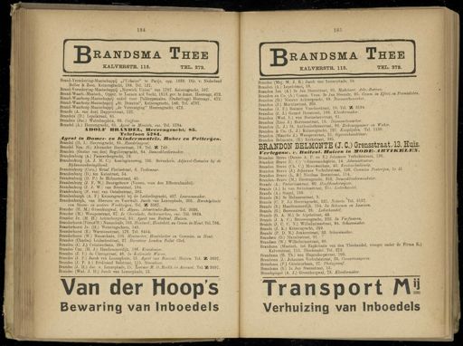 Gebruik tekstcoördinaten Transcriptie 184 185 JJrandsma Thee KALVEBSTB . 115 . TEL . 272 . -*.— .- i i i i i i iiiim-n—mnr — —— m^m^mmi ^— i am^mmm ^ — n ^ MH _ l Brand-Verzekering-Maatschappij „ l'ürbaine " te Parijs , opg . 1838 . Dir . v . Nederland Bollee & Zoon . Keizersgracht , 188 . Tel . 121 . Brand- Verzekering-Maatschappij „ Norwich Union " van 1797 . Keizersgracht , 167 . Brand- Waarb.-Maatseh ., Opger . te Loenen a/d Vecht , 1813 . gev . te Amst . Heerengr , 472 . Brand- Waarborg-Maatschappij enkel voor Poldergemalen . ( Onderlinge ) Heerengr ., 472 . Brand- Waarborg-Maatschappij „ St . Donatus ", Keizersgracht , 148 . Tel . 4787 . Brand- Waarborg-Maatschappij „ de Vereeniging " Heerengracht , 472 . Brande ( A . van den ) Dapperstraat , 127 . Brandeis ( D .) Lepelstraat , 85 . Brandeis ( Jac .) Waterlooplein , 68 . CoiJ'eur . Brandel ( A .) Heerengracht , 85 . Agent in Mantels , ens . Tel . 5784 . 4IDOI ,*" BRAMDEL , Heerengracht , 85 . Telefoon 5884 . jlgent in Dames - en liindei-mantels , Robes en Pelterijen . Brandel ( D . 1 .) Heerengracht , 85 . Handelsagent . Brandel Nzn . ( S .) Alexander Boersstraat , 18 . Tel . ' A 749 . Branden ( Gnstav van den ) Reguliersgracht , 64 . Dameskleedermaker . Brandenburg ( A .) Passeerdergracht , 19 . Brandenburg ( A . J . M . C .) Koninginneweg , 195 . Bovenhuis . Adjunct-Commies bij de Rijksverzekeringsban/c . Brandenburg ( Corn .) Graaf Florisstraat , 6 . Teekenaar . Brandenburg ( D .) ten Katestraat , 54 . Brandenburg ( D . P .) 3e Helmersstraat , 45 . Brandenburg ( J . F . W .) Beursgebouw ( Vereen , voor den Effectenhandel ). Brandenburg ( J . J . W .) van Breestraat , 184 . Brandenburg ( F . van ) van Ostadestraat , 385 . Brandenburgh ( A . F .) Keizersgracht bij de Leidsehegracht , 427 . Laarzenmaker . Brandenburgh , van Rheenen en Voorwalt . Jacob van Lennepkade , 305 . Hersklfilaats van . Stoom - en andere Werktuigen . Tel . % 3567 . Brander ( H . M .) Groenburgwal , 41 . Algem . Advertentie-Bureau . Tel . 3026 . Brander ( M .) Weesperstraat , 67 . In Chocolade , Suikerwerken , enz . Tel . 8824 . Brander Jr . ( M . H .) Achterburgwal , 55 . Agent van Buitenl . Suizen . Branderhorst ( FirmsfH .) Nassankade , 105 . Houtmet.,Houtvlott . en Comm . in Hout . Tel . 766 . Branderhorst Jr . ( H .) Weteringschans , 145 . Branderhorst ( R .) Warmoesstraat , 176 . Tel . 8454 . Branderhorst ( W .) Nassankade , 105 , Houtmeter , Houtvlotter en Commiss . in Hout . Brandes ( Charles ) Leidschestraat , 27 . - Directe ?»- London Toilet Club . Brandes ( C . J .) Ceintuurbaan , 394 . Brandes ' Czn . ( H . J .) Haarlemmerdijk , 186 . Kruidenier . Brandes ( J . F .) de Clercqstraat , 48 . In Koloniale Waren . Brandes ( J . F .) Jacob van Lennepkade , 15 . Agent van Binnenl . Huizen . Tel . SE 3697 . Brandes ( J . F . A .) Ferdinand Bolstraat , 115 . Stucadoor . Brandes ( J . H .) Jac . v . Lennepkade , 15 . Leeraar M . O . Boekh . en Account . Tel . 315 3697 . Brandes ( Wed . J . H .) Jacob van Lennepkade , 15 . Van der Hoop's Bewaring van Inboedels RANDSMA Thee KALVEBSTB . 116 . TEL . 272 . Brandes ( Mej . M . J . R .) Jacob van Lennepkade , 15 . Brandon ( A .) Lepelstraat , 58 . Brandon Izn . ( A .) 2e Jan Steenstraat , 95 . Makelaar . Adv.-Bureau Brandon en Co . ( A .) Comm . Venn . 2e Jan Steenstr . 95 . Comm . m KfJecl.enPremiebten . Brandon ( D .) Nieuwe Achtergracht , 89 . Diamantbewerker . Brandon ( J .) Marnixstraat , 205 . _ Brandon ( J . F .) Roemer Visscherstraat , 18 . lel . A 3194 . Brandon ( J . J .) Gerard Doustraat , 198 . Kleedermaker . Brandon ( Wed . L .) van Boetzelaerstraat , 61 . Brandon ( Lion J .) Burmanstraat , 15 . Diamantbewerlcer . Brandon ( L . J .) St . Anthoniesbreestraat , 92 . Ziekenoppasser en Waker . Brandon & Co . ( L . J .) Keizersgracht , 197 . Kooplieden . Tel . 1130 . , Brandon ( Maurits J .) Weesperstraat , 31 . ^ garenhandelaar . Brandon Belmonte . ( B .) Kerkstraat , 385 . _ BRANDON BELMONTE ( J . C .) Grensstraat , 13 . Huis . Vertegenu ,. p . It uit e nl . Buizen in iW©»E-^RT*K»tJEIV . Brandon Bravo ( Dames A . P . en E .) Johannes Verhulststraat , 126 . Brandon Bravo ( C . C .) ' s Gravesandeplein , 14 . Administrateur . Brandon Bravo ( Ch . C .) Meeuwenlaan , 43 . Kantoorbediende . Brandon Bravo ( J .) Johannes Verhulststraat , 126 . Commies Posterijen , Ye U . Brandon Bravo ( L . B .) Nicolaas Beetsstraat , 114 . Brandon-Bravo ( M .) Heerengracht , 353 . Dameskleedermaalcster . Brands ( A .) Pretoriusstraat , 60 . Hoofdonderwijzer . Brands ( A .) le van Swindenstraat , 31c . Lederhaudel . Brands ( A .) Singel , 159 . Brands ( B .) 3e Helmersstraat , 9 . , Brauds ( C . F . J .) Heerengracht , 521 . Notaris . Tel . 5157 . Brands ( E .) Haarlemmerdijk , 154 . In Schoenen en Laarzen . Brands ( G .) Beerenstraat , 28 . Lederhandel . Brands ( G . A . M .) 2e Atjehstraat , 42 . Brands ( J . A . C .) Brouwersgracht , 222 . In Verf waren . Brands ( J . C . C . N .) Wilhelminastïaat , 94 . Schoenmaker . Brands ( J . K .) Keizersgracht , 259 . Brands ( P . D . N .) Jonkerstraat , 32 . Schoenmaker . Brandsen ( D .) Marnixstraat , 91 . Brandsen ( W .) Wilhelminastraat , 66 . * ' ' . Brandsma ( Maatsch . tot Exploitatie van den Theehandel , vroeger onder de Dirma Ü -.) Kalverstraat , 115 . Theehandel . Tel . 272 . Brandsma ( H . Th .) van Hogendorpstraat , 103 . Brandsma ( J .) Johannes Verhulststraat , 35 . Concertzangeres , Brandsma ( P .) Ceintuurbaan , 27 . Photograaf . Brandsma ( S .) le Jan Steenstraat , 15 . Brandspiegel ( A . J .) Groenburgwal , 73 . Kleedermaker . Transport Mü Verhuizing van Inboedels