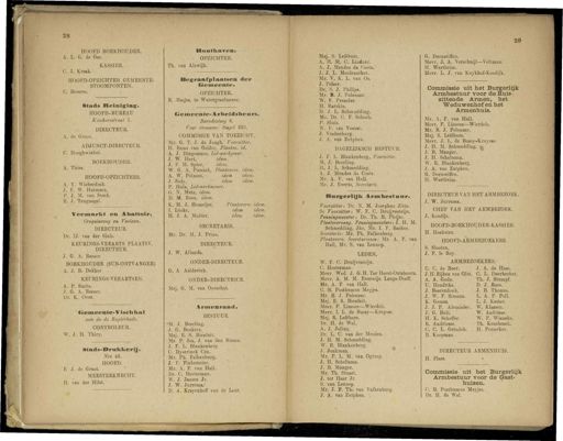 28 HOOFD BOEKHOUDER . A . L . G . de Gee . KASSIER . C . J . Kraak . HOOFD-OPZICHTER GEMEENTESTOOMPONTEN.C . Broerse . ' Stads Reiniging . HOOFD-BUREAU Kwahersstraat 1 . DIRECTEUR . A . de Grout . ADJUNCT-DIRECTEUR . C . Hooghwinkel . BOEKHOUDER . A . TMes . HOOFD-OPZICHTERS . A . Y . Wieberdink . J . F . W . Harmsen . P . J . M . van Stock . It . J . Tengnagel . Veemarkt en Anattoïr . Crnquiusweg en Veelaan . DIRECTEUR . Dr . IJ . van der Sluia . KEURINGS-VEEARTS PLAATSV . DIRECTEUR . J . G . A . Reeser . BOEKHOUDER ( SUB-ONTVANGER ) A . J . B . Dekker KEURINGS-VEEARTSEN . A . P . Smits . , T . G . A . Reeser . Dr . K . Over . Gemeente-Visckkal aan de de Ruyterkade . CONTROLEUR . W . J . H . Thiry . Statl s-OrukUer ij • Nes 43 . HOOFD . E J . de Groot . MEESTERKNECHT . H . van der Hilst . 11 o ii tli aveu . OPZICHTER . Th . van Alewijk . Begraafplaatsen der Gemeente . OPZICHTER . R . Mesjes , te Watergraafsmeer . Gemeente - Arkeidskeurs . Bamdesteeg 6 . Voor vrouwen : Singel 332 . COMMISSIE VAN TOEZICHT.Mr . G . T . J . de Jongh , Voorzitter . H . Enno van Gelder , Plaatsv . id . A . J . Dingemans , Lid-werhjever . J . W . Hart , idem . J . F . H . Spier , idem . W . G . A . Pienink , Plaatsverv . idem . A . W . Polman , idem idem . J . Zody , idem idem . P . Hols , Lid-werknemer . G . N . Metz , idem . D . M . Roos , idem . K . H . J . Homeijer , Plaatsverv . idem . I . Liicke , idem idem . H . J . A . Mulder , idem idem . SECRETARIS . Mr . Dr . M . J . Prins . DIRECTEUR . J . W . Albarda . ONDER-DIRECTEUR . G . A Aalderink . ONDER-DIRECTRICE . Mej . G . M . van Oorschot . Armenraad . BESTUUR . • M . J . Beerling . J . G . Beukers . Mej . E . S . Bienfait . Mr . P . Jos . J . van den Biesen . J . P . L . Blankenberg . C . Dyserinck Czn.Mr . Ph . Falkenbnrg.J . F . Finkemeier.Mr . A . F . van Hall.Dr . C . Hesterman.W . J . Jansen Jr . J . W . Jnrrema .' D . A . Krayenhoff van de Leur . Mej . S . Lefébure . A . H . M . C . Lindner . A . J . Mendes da Costa .' J . J . L . Moolenschot . Mr . V . K . L . van Os . J . Pelser . Dr . S . J . Philips . Mr . B . J . Polenaar . W . F . Prenzler . H . Raëskin . H . J . L . Schmedding . Mr . Dr . C . F . Schoch . P . Sluis . W . F . van Voorst . J . Vredenburg . J . A . van Zutphen . DAGELIJKSCH BESTUUR . J . F . L . Blankenberg , Voorzitter . M . J . Beerling . II . i . L . Schmedding . A . J . Mendes da Costa . Mr . A . F . van Hall . Mr . J . Everts , Secretaris . Burgerlijk Arm lies tuur . Voorzitter : Dr . N . M . Josephus Jitta . 2e Voorzitter : W . F . C . Druijvesteijn . Penningmeester : Dr . Th . B . Pleijte . Vlaatsvervang . Penningmeesters :}. H . M . Schmedding , Jhr . Mr . I . F . Backer . Secretaris : Mr . Ph . Falkenburg . Plaatsverv . Secretarissen : Mr . A . F . van Hall , Mr . S . van Lennep . LEDEN . W . F . C . Druijvesteijn . C . Hesterman . Mevr . Wed . J . G . H . Ter Horst-Ontshoorn . Mevr . A . M . M . Everwijn Lange-Doeff . Mr . A . F . van Hall . C . B . Posthumus Meyjes . Mr . B . J . Polenaar . Mej . E . S . Bienfait . Mevr . P . Lissone—Wierdels . Mevr . I . L . de Bussy—Krtrysse . Mej . S . Lefébure . Dr . H . de Wal . A . J . Joling . Dr . L . C . van der Meulcn . J . H . M . Schmedding . W . R . Blankenberg . , J . Jonkman . Mr . P . L . M . van Ogtrop . J . H . Scheltema . J . B . Manger . Mr . Th . Stuart . J . ter Haar Jr . S . van Lennep . Mr . J . S \ Th : van Valkenburg . J . A . van Zutphen . 29 G . Dornseiffen . Mevr . J . A . Verschuijl—Veltman . H . Wertheim . Mevr . L . J . van Kuykhof-Koedijk . Commissie uit het Burgerlijk Armbestuur voor de Huis zittende Armen , het Weduwenhof en het Armenhuis . Mr . A . F . van Hall . Mevr . P . Lissone — Wierdels . Mr . B . J . Polenaar . Mej . S . Lefébure . Mevr . J . L . de Bussy-Kruysse . J . H . M . Schmedding . q J . B . Manger . J . H . ScMtema . W . R . Blankenberg . J . A . van Zutphen . G . Dornseiffen . H . Wertheim . DIRECTEUR VAN HET ARMBEZOEK . J . W . Jurrema . CHEF VAN HET ARMBEZOEK . J . Koudijs . HOOFD-BOEKHOUDER-KASSIER . H . Hoekstra . HOOFD-ARMBEZOEKERS . S . Slooten . J . F . Ie Roy . ARMBEZOEKERS ." C . C . de Boer . J . A . de Haas . J . H . Rijken van Olst . C . L . Doerbecker . A . A . Gude . Th . J . Stumpf.U . Hendriks . D . J . Roos . J . Beerendonk . J . B . Thonus . J . W . F . Simons . L . A . P . Poll . K . Gomes . L . J . Koster . J . J . P . Alexander . W . Klaasen . J . G . Helt . W . Andriese . H . K . Scheffer . W . F . Wieneke . R . Andriesse . Th . Kousbroek . C . C . L . Grönloh . H . Ponneker . B . Koopman . DIRECTEUR ARMENHUIS . H . Flaes . Commissie uit het Burgerlijk Armbestuur voor de Gasthuizen . C . B . Posthumus Meyjes . Dr . H . de Wal .
