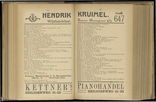 Gebruik tekstcoördinaten Transcriptie 801 HENDRIK f Wijnhandelaar . Kool ( W .) Hendrik Jacobszstraat , 9 . Kool ( W .) Goudsbloemstraat , 88 . Kool van Heerens ( W . C . van ) Balthasar Floriszstraat , 36 . Agent . Kool ( W . H .) Kanaalstraat , 21 . Kool ( Z .) Lange Houtstraat , 57 . Barbier . Koolbergen ( J .) Tasmanstraat , 5 . Koolbergen ( J . L .) Kozenstraat , 224 . Koolbergen ( Herman J . van ) Weteringschans , 92 . Kantoor : O . Z . Voorburgwal , 217 . Makelaar in Rubber , Copra , JOrogerijen , fijne Houtwaren , enz . Tel . 5310 eu6010 . Koolbergen ( Wed . J . J . van ) Weesperzijde , 140 . Koole ( C . Chr .) Bilderdijkstraat , 84 . Onderwijzer . Kooien ( Ad .) Keizersgracht , 212 . Agent . Tel . 3489 . Kooien ( J . C .) Frans van Mierisstraat , 124 . Onderwijzer . Koolhaas ( Bernardus ) 2e Gonstantijn Huijgensstraat , 77 . Bouwkundige en Makelaar . Koolhaas ( B . H .) Elandsgracht ,. 14 . Bouwkundige en Makelaai . Koolhaas ( Gebr . B . H . en H .) Elandsgr ., 14 . Makelaars , Aannemers en Timmert . Tel . 7800 . Koolhaas ( B . J .) van Oldenbarneveldtstraat , 44 . Koolhaas ( D .) van Oldenbarneveldtstraat , 44 en Ie Hugo de Grootstraat , 20 . In Aardap- pelen en Brandstoffen . ■ Koolhaas ( D . J . B .) Spiegelgracht , 8 . Mectro-Technisch Bureau . Tel . 6001 . Koolhaas ( H .) Johannes Vermeerstraat , 34 . Makelaar en Aannemer . Tel . K 511 . Koolhaas ( M . J .) Oranje-Nassaulaan , 81 . Koolhof ( J .) Govert Flmekstraat , 192 . Koolhoil ( Mej . P .) St . Wilübrordusdwarsstraat , 4 . Koolhoven J.Hz . ( A .) Gerard Brandtstraat , 3 . Koolhoven & Co . ( Comm . Venn . J . H .) Keizersgracht , 302—304 . Kooplieden in Koffie . Tel . 4514 . Kools ( E .) Bellamydwarsstraat , 6 . Schoenmaker . Kools Wzn . ( Joh .) Vondelstraat , 1020 . Inspecteur van Verzekering-Maatschappijen . Kools ( J . H .) Marnixstraat , $ 99 . Kools Jzn . ( P .) Houtrijkstraat , 54 . Kools ( W . F .) Nieuwe Spiegelstraat , 22 . Muziekonderwijzer . Koolsbergen ( P .) Heiligeweg , 41 . Kooltjes ( J . C .) Cornelis Schuvtstvaat , 26 . Ie Etage . Kooltjes ( J . Wilh . F .) Cornelis Schuytstraat , 26 . Ie Etage . Agent Algem . Groninger Levensverzekering . Koolwijk ( C .) Albert Cuypstraat , 166 . Koolwijk ( Wed . H . v . d .) Noordstraat , 21 . Koolzuur Maatschappij C . G . Rommenhöller . AMSTEL 16 . - TELEFOON 3633 . Koome ( D .) Jacob van Campenstraat , 123 . Koomen ( A .) Wittenburgergracht , 27 . Tapperij en Slijterij . KETTNER's HEILIGENWEG 21-25 ZZZZI Telepliofln KRUIMEL . Rn Kantoor : Heerengracht 473 . UlC / Koomen ( A .) Groen van Prinstererstraat , 73 . Broodbakker . Koomen ( A .) ter Haarstraat , 13 . Winkelier . Koomen ( B .) Ie van Swindenstraat , 12 . Melkslijter Koomen ( G .) Nieuwe Tolstraat , 127 . Koomen ( I .) Haarlemmerweg , 211 . Melkslijter . Koomen ( J .) Bentinckstraat , 56 . Koomeu ( J .) van Ostadestraat , 158 . Koomen ( J . C .) Gerard Douplein , 20 . Koomen ( K .) Schinkelkade , 7 . Koomen ( P .) Euysdaelstraat , 11 . Melkslijter . Kooning ( H . G .) van Honweningenstraat , 58 . Aannemer van Begrafenissen . Kooning Sr . ( J . J .) Jan Hanzenstraat , 139 . Aansprekei . Kooning Jr . ( J . W .) Jan Hanzenstraat , 58 . Barbier en Aanspreker . Koop ( F .) Utrechtschestra'at , 98—100 . In Garen , Band , enz . Koop ( J .) Czaar Peterstraat , 114 . Melkslijter . Koop ( J . F . B .) Rozenstraat , 91 . Timmerman . Koop ( Wed . K .) Marnixstraat , 335 . Koop ( N .) 3e Oosterparkstraat , . 162 . Koop ( 01 .) 2e Jan Steenstraat , 29 . Huis . Muziekleeraar . Koop ( Wed . P .) Ferdinand Bolstraat , 137 . In Koloniale Waren . Koopal ( D . J .) Houtrijkstraat , 66 . Kapper . \ Koopal ( E .) Rapenburg , 101 . Filiaalhouder . Koopal ( L .) Tasmanstraat , 31 . Koopal ( M . S .) Spinozastraat , 27 . Kant .: Gelderschekade , 61—63 . Papierhandel . Tel . 3350 Koopal ( W .) Achterburgwal , 146 . Papierhandelaar . Kooper ( D .) Ie Nassaustraat , 8 . Kooper ( W . H .) Binnen Oranjestraat . 20 . In Sigaren . Kooperberg ( Jacques ) JohanDes Verhulststraat , 61 . Kantoor : Singel , 486 . Tel . 7617 . Kooperberg ( Dr . Ph .) Moreelsestraat , 9 . Medisch Adviseur Rijksverzekeringsbank . Koopman ( A .) Amsteldijk , 36 . R . K . Priester . Koopman ( A .) Binnen Brouwersstraat , 42 . Koffiehuishouder . Koopman ( A . O ) Weteringschans , 5 . In Antiquiteiten . Koopman ( Mej . A . M . S .) Ie van Swindenstraat , 17 . Vroedvrouw . Koopman ( B .) Prinsengracht , 309 . Makelaar . Burgerlijk Armbestuur . Koopman ( B . A .) Nieuwe Prinsengracht , 78 . Armbezoeker Koopman ( O B .) Gerard Doustraat , 137 . Koopman ( C . J .) Ferdinand Bolstraat , ' M.-Agentuur - e Koopman ( O Theod .) Frans van Mierisstr ., 57 . Kant .: Keizersgracht , 455 . Assuradeur Koopman ( D .) Westermarkt , 27 . Koopman . Tel . 7726 . Koopman ( E .) Ruyschstraat , 75 . Koopman ( F .) ten Katestraat , 133 . Koopman ( G .) Kanaalstraat , 26 . Horlogemaker . Koopman ( G . O ) Weesperzijde , 108 . Agent v . Binnen - en Buitenl . Huizen . Tel . 3K , 3440 . PIANOHANDEL I HEILIGENWEG 21-25 36 Koopman ( G . F .) Frans van Mierisstraat , 57 .
