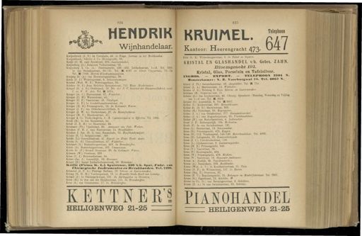 Gebruik tekstcoördinaten Transcriptie 824 825 , 647 HENDRIK Wijnhandelaar . KRUIMEL . Tepon Kantoor : Heerengracht 473 * Kreijenbroek ( J . E .) da Costakade , 44 . Ie Etage . Leeraar in het Boekhouden . Kreijenbroek , Schultz ' & Co . Bloemgracht , 68 . Kreijl ( C . M . van ) Spuistraat , 285 . Laarzenmaker . Krevmborg ( A .) Johannes Verhulststraat , 56 . Kreymborg & Co . ( A .) Heerengracht , 426—432 , Leidschestraat , 1—3 . Tel . 3200 , Ie van Swindenstraat , 29—31 . Tel . K 4187 en Albert Cuypstraat , 72—74 . Tel . SE 1948 . Heeren-Kleedingmagazvjnen . Kreijsig Jr . ( A .) van Houweningenstraat , 39 . Kriek ( J . J .) " Weteringstraat , 5 . Schoorsteenveger . Kriebel ( Wed . W . F .) Weteringschans , 65 . Krieboo ( G . J .) Joan Melchior Kemperstraat , 112 . Huis . Meubelmaker . Kriegel ( G . A . G .) Oosterpark , 18 . Dir . der N . V . Sociëteit der Blaauvjselfabrkk , voork C . en W . N . Avis . Tel . K 5074 . Krieger ( A . C .) Hartenstraat , 27 . Winkelier . Krieger ( C . H .) Westerstraat , 45 . Krieger ( C . P .) Vaaitstraat . 48 . Verpleger . Krieger ( G . F .) Ie Goudsbloemdwarsstraat , 24 . Krieger ( H . B .) Prinsengracht , 12 . In Koloniale Waren . Krieger ( J . P .) van Oldenbarneveldtkade , 9 . Krieger ( J . W . A .) Hartenstraat , 27 . In Manufacturen . Krieger ( M . P .) Blankenstraat , 47 . Krieger & Co . Frederiksplein , 6 — 8 . Commissionairs in Efeclén . Tel . 1365 . Kriek ( H .) Ie Jan Steenstraat , 2a . Kriek ( J . E . M .) ter Haarstraat , 24 . Kriekaart ( Ph .) Vijzelstraat , 30 . Aannemer van Publ . Werken . '• Krieken ( F . H . J . van ) Havenstraat . 14 . Broodbakker . Krieken J . Jzn . ( G . S . van ) Nassaukade , 92 . Hoofdonderwijzer . Krieks ( E . 1 .) Sarphatistraat , 169 . Krieks ( L .) Commelinstraat , 47 . Export - en Home Trade Agent . Krieks Jr . ( S .) Commelinstraat , 47 . Winkelier . Krielaart ( G .) Rustenburgerstraat , 453 . In Brandstoffen . Kriele ( A ). Rustenburgerstraat , 307 . Timmerman . Kriele Jr . ( P .) Gerard Doustraat , 26 . In Koloniale Waren . Krienen ( W .) Overtoom , 320 . Kries ( C . J .) Reinwardtstraat , 84 . Kriest ( Jac . J .) Amsteldijk , 99 . Hovenier . Kriger ( H .) Lange Leidschedwarsstraat , 58 . Metselaar . Krill.- ( Firma li . Ij .) Spuistraat , 316 fo/li . Spui , JFahr . van Chirurgische Instrumenten en Breuk/banden . Tel . SS98 . Krimmel.(J . F . A .) Plantage Badlaan , 10 . Schoen - en Laarzenmaker . Krimp ( G . H . M .) Voetboogstraat , 18 . \ e Beambte Stads Bank van Leening . Krissel ( J .) Ie Oosterparkstraat , 192 . In Aardappelen en Groenten . Krist ( H .) Ie Jan van der Heijdenstraat , 151 . In Brandstoffen . Krist ( S .) van Ostadestraat , 17 . In Brandstoffen . EETTNEE'3 HEILIGENWEG 21-25 ZZZZ Krist ( S .) KI . Witteuburgerstraat , 9 . In Tabak en Sigaren . KRISTAL EN GLASHANDEL v/h . Gebrs . ZAHN . Bloemgracht 191 . Kristal . Glas , Porselein en Tafelzilver . 1E\«KÖS . - EXPORT . - TELKPHOOÜ S104 , ST . Monsterkamer : SU K . Voorburgwal SS . Tel . BOSS S . Kristel ( J . Th .) Saenredamstraat , 46 . Aanplakker . Tel . K 784 . Kristel ( L . A .) Marnixstraat , 14 . Winkelier . Kristen ( J . G .) Heisteeg 2 . Huis . Schoen - en Laarzenmaker . Kristiaan ( H .) Sumatrasiraat , 15 . „■;,„„ Kritzler ( A .) Jan Luykenstraat , 46 . Chirurg . Spreekuur : Maandag , Woensdag en Vnjdag van 1—2 uur . tel . K 3059 . Kritzler ( O .) Amsteldijk , 6 . Tel . 5K 2657 . Kröber ( C .) Kinkerstraat , 291 . Metaaldraaier . Kröber Jr . ( D . G .) Marnixstraat , 303 . Kröber ( H .) Tuinstraat , 88 . Kofergieter . Kröber ( J . A .) van Ostadestraat , 277 . Diamantbewerker . Kröber ( J . G ) van Hogendorpstraat , 89 . Vischhandelaar ■ Kröber ( W .) van Boetzelaerstraat , 4 . Letterzetter . Kroeb ( J . P .) Zeeburgerdijk , 134 . M-'ksalon . Kroeb ( P .) 2e van Swindenstraat , 121 , Kroes ( G .) Berenstraat , 12 . Schoenmaker . Kroes ( H .) Prinsengracht , 478 . Kapper . Kroes ( H .) O.Z . Voorburgwal , 145-149 . Boterhandelaar . Tel . 480d . Kroes ( H .) Leliegracht , 50 , Kantoorbediende . Kroes ( J . C .) ütrechtschestraat , 116 . Kroes ( L .) Lijnbaanstraat , 8 . Lantaarnopsteker . Kroes ( M . B .) Prinsengracht , 945 . Kroes ( N .) Vaartstraat , 39 . Kroes ( P .) Heerengracht , 404 . Kroes ( W .) Prinsengracht , 478 . Modiste . Kroes ( W .) Smitstraat , 19 . Gemeente-Ambtenaar . Kroese ( A .) Zeedijk , 95 . Paardenslachtr . Kroese ( A .) Nassaukade , 329 . Boekbinder . Kroese ( Wed . A . N .) Ie Keucheniusstraat , 31 . Huis . Kroese ( D . P .) de Wittenstraat , 157 . In Bieren . Kroese ( Mej . F .) Overtoom , 27 . Kroese ( F . U .) Reguliersgracht , 35 . Behanger en Meubelfabrikant . Tel . 7d01 . Kroese ( G .) Fagelstraat , 73 . Schilder . 0 Kroese en Co . ( G .) van Beuningenstraat , 2 . Schilders . Kroese ( H . A .) 2e van Swindenstraat , 88 . Schilder . PIAN0HANDEL ZZZZ HEILIGENWEG 21-25