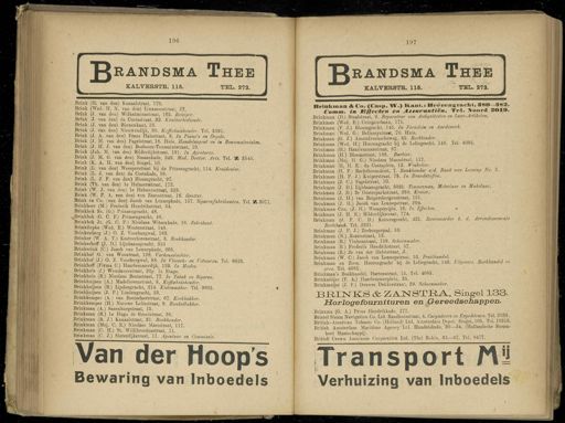 196 197 RANDSMA Thee KALVEBSTB . 115 . TEL . 272 . JJrandsma Thee KALVEBSTB . 115 . ? TEL . 272 . Brink ( H . van den ) Kanaalstraat , 170 . Brink ( Wed . H . N . van den ) Linnaeusstraat , 27 . Brink ( J . van den ) Wilhelminastraat , 165 . Reiziger . Brink ( J . van den ) da Costastraat , , 32 . Kantoorbediende . Brink ( J . van den ) Binnenkant , 13 . Brink ( J . van den ) Nieuwendijk , 30 . Koffiehuishouder . Tel . 5391 . Brink ( J . A . van den ) Frans Halsstraat , 8 . In Piano's en Orgels . Brink ( J . H . van den ) Fagelstraat , 18 . Huis . Handelsagent en in Bouwmaterialen . Brink ( J . H . J . van den ) Bosboom-Toussaintatraat , 10 . Brink ( Joh . M . van den ) Bilderdijkstraat , 191 . In Agenturen . Brink ( J . M . G . van den ) Nassaukade , 349 . Med . Doctor . Arts . Tel . 25 3545 . Brink ( K . A . H . van den ) Singel , 10 . Brink ( L . van den ) Weesperstraat bij de Prinsengracht , 114 . Kruidenier . Brink ( L . J . van den ) da Costakade , 58 . Brink ( L . J . F . van den ) Bloemgracht , 97 . Brink ( Th . van den ) Ie Helmersstraat , 172 . Brink ( W . J . van den ) Ie Helmersstraat , 323 . Brink ( W . P . A . van den ) von Zesenstraat , 16 ". Grutter . Brink en Co . ( van den ) Jacob van Lennepkade , 157 . Sigarenfabrikanten . Tel . K 3071 . Brinkboer ( M .) Frederik Hendrikstraat , 54 . Brinkbok Sr . ( G .) Prinsengracht , 48 . Brinkbok ( G . C . F .) Prinsengracht , 48 . Brinkbok Jr . ( G . C . F .) Nicolaas Witsenkade , 16 . Fairikant . Brinkdupke ( Wed . E .) Westerstraat , 148 . Brinkenberg ( J .) O . Z . Voorburgwal , 163 . Brinker ( W . A . T .) Kostverlorenstraat , 3 . Boekhouder . Brinkerhoff ( J . D .) Lijnbaansgracht , 310 Brinkerink ( G .) Jacob van Lennepkade , 266 . Brinkhof ( G .) van Woustraat , 128 . Varkensslachter . Brinkhof ( J .) O . Z . Voorburgwal , 88 . In Vleesch - en Vetwaren . Tel . 6625 . BrinkhofF ( Firma C .) Haarlemmerdijk , 139 . In Modes . Brinkhuis ( J .) Wenslauerstraat , 20g . Ie Etage . Brinkhuis ( E .) Nicolaas Beetsstraat , 77 . In Tabak en Sigaren . Brinkhuijsen ( A .) Madelievenstraat , 8 . Koffiehuishouder . Brinkhuijsen ( B .) Lindengracht , 214 . Kisienmaker . Tel . 9805 . Brinkljuijsen ( J . P .) Lindengracht , 53 . Brinkkemper ( A .) van Boetzelaerstraat , 67 . Koekbakker . Brinkkemper ( H .) Nieuwe Leliestraat , 9 . Banketbakker . Brinkman ( A .) Saxenburgstraat , 15 . Brinkman ( B .) Ie Hugo de Grootstraat , 36 . Brinkman ( B . J .) Kanaalstraat , 21 . Boekhouder . Brinkman ( Mej . C . E .) Nicolaes Maesstraat , 117 . Brinkman ( C . H .) St . WiUibrordusstraat , 11 . Brinkman ( C . J .) Sloterdijkstraat , 11 . Agentuur en Commissie . Van der Hoop's Bewaring van Inboedels Brinkman & Co . ( Casu . W .) Ilant . t Heerengraclit , 380—383 . Comm . in Bffecten en Assurantiën . Tel . SToord SOI ». Brinkman ( D .) Staalstraat , 9 . Reparateur van Antiquiteiten en Luxe-Artikelen . Brinkman ( Wed . E.).Ceintuurbaan , 171 . Brinkman ( F . J .) Bloemgracht , 145 , In Porselein en Aardewerk . Brinkman ( Wed . G .) Bellamystraart , 70 . Huis . Brinkman ( G . J .) Amstelvecnscheweg , 85 . Boekbinder . Brinkman ( Wed . H .) Heerengracht bij de Leliegracht , 148 . Tel . 4085 . Brinkman ( H .) Haarlemmerstraat , 87 . Brinkman ( H .) Bloemstraat , 188 . Barbier . Brinkman ( Mej . H . G .) Nicolaes Maesstraat , 117 . Brinkman ( H . H . E .) da Coataplein , 12 . Winkelier . Brinkman ( H . P .) Reehtboomsloot , 7 . Bankhouder a/d . Bank van Leening No . 2 . Brinkman ( H . P . J .) Kuiperstraat , 78 . In Brandstoffen . Brinkman ( J . C .) Fagelstraat , 10 . Brinkman ( J . D .) Lijnbaansgracht , 3025 . Timmerman , Metselaar en Makelaar , Brinkman ( J . D .) 3e Oosterparkstraat , 250 . Kruier . Brinkman ( J . H .) van Keigersbergenstraat , 151 . Brinkman ( J . H .) Jacob van Lennepstraat , 204 . Brinkman Czn . ( J . H .) Weesperzijde , 16 . In Effiecten . Brinkman ( J . H . E .) Bilderdijkstraat , 174 . Brinkman ( J . P . C . 1 ).) Keizersgracht , 421 . Deurwaarder b . d . Arrondissements Rechtbank . Tel . 2221 . Brinkman ( J . P . J .) Zeeburgerpad , 59 . Brinkman ( N .) Rozenstraat , 13 . Brinkman ( R .) Vinkenstraat , . 159 . Schoenmaker . Brinkman ( R ) Frederik Hendrikstraat , 57 . Brinkman ( R .) 2e van der Helststraat , £. Brinkman ( W . C .) Jacob van Lennepstraat , 53 . Fruit handel . Brinkman en Zoon . Heerengracht bij de Leliegracht , 148 . Uitgevers . Boekhandel en . gros . Tel . 4081 . Brinkman's Boekhandel . Hartenstraat , 15 . Tel . 4085 . Brinkmeijer ( F . A .) Haarlemmerplein , 35 . Brinkmeijer ( J . F .) Douwes Dekkerstraat , 29 . Sclwenmaker . BJRXNKS & Z AINSTKA , Singel 133 . Horlogefournituren en Gereedschappen , Brinxma ( G . A .) Prins Hendrikkade , 177 . Bristol Steam Navigation Co . Ltd . Raadhuisstraat , 4 . Cargadoors en Expediteurs . Tel . 2038 . British- American Tobacco Co . ( Holland ) Ltd . Amsterdam Depot . Singel , 105 . Tel . 10316 . British Amsterdam Maritime Agency Ltd . Handelskade , 20—24 . ( Hollandsche Stoom- boot Maatschappij ). British Crown Assurance Corporation Ltd . ( The ) Rokin , 65—67 . Tel . 9477 . Transport Mü Verhuizing van Inboedels