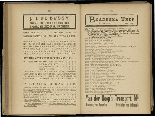 230 231 J . H . D E B M S S Y . BOEK - EN STEENDRUKKERIJ . BINDERIJ EN ZINCOGRAF . INRICHTING . ROKIN 60 & 62 . f f f t TEL . NRS : 675 & 2719 . RUSTENBURGERST R . 148 . TEL . NRS : Z 2234 & Z 1890 . BOEKEN . TIJDSCHRIFTEN . BROCHURES . GEÏLLUSTREERDE HANDBOEKEN & GIDSEN . HANDELSDRUKWERK IN HET ALGEMEEN . WAARDE PAPIEREN . TELEGRAAF-CODES . LANDKAARTEN . PLANNEN . DIPLOMA'S . ENZ . RECLAME-BILJETTEN IN KLEURENDRUK . ATELIERS VOOR VERVAARDIGING VAN CLICHÉS . UITGEVER VAN : DE INDISCHE MERCUUR . f f t t DE INDISCHE GIDS . f f f t t t DE ZONDAGSBODE . f f f f t t EIGEN HAARD , f f f t t t t t HANDBOEK VAN CULTUUR - EN HANDELSONDER- NEMINGEN IN NED . O . & W . INDIË . - ADRESBOEK VOOR DE NEDERLANDSCHE NIJVERHEID EN EXPORT . — FINANTIEEL ADRESBOEK VOOR NEDERLAND ENZ . ADVERTENTIE-KANTOOR . VOORDEELIGE CONTRACTEN VOOR BINNEN - EN BUITENL . BLADEN . HOOFDAGENTSCHAP VAN : DE LOCOMOTIEF ( SEMA- RANG ). JAVA BODE ( BATAVIA ), f f f f f f f f DELI COURANT ( MEDAN ). ONZE WEST EN DE WEST ( PARAMARIBO ), ttt + ttttttttt GENERAAI>AGENT VOOR AANKONDIGINGEN IN DE WACHT- KAMERS , PERRONS EN VESTIBULES VAN ALLE STATIONS DER STAATSSPOOR- EN DER NEDERLANDSCHE CENTRAAL SPOORWEGEN , f " f fff ff f f f f f f f f TEL . NR . 2721 . JJrandsma Thee KAL VERSTE ,. 115 . . TEL . 272 . Büter ( Firma H .) Heerengraclit , 65 . Commissionair en Koopman . Tel . 4793 . Büter ( Firma H .) Kantoor Heerengraclit , 65 , van de Stoomfabriek Old-Holland o»er liet IJ . Fabriek van f etherische Oliën , Vruchten - Aethers , Aroma's , Essencen en giftvrije Kleurstoffen . Telegram- adres Buter , Amsterdam . Telepltoon Interc . 4793 . Buter ( J . G .) Reinwardtstraat , 9 . Kapper . Butót ( Wed . Iï . B . L .) Jan Hansenstraat , 61 . Butót ( H . P . A .) van Ostadestraat , 380 . Aanspreker . Butót ( L . A .) Sarphatipark , 2 . Cand.-Notaris . Butót & Co . Rozenstraat , 62 . Metaalwarenf abri/c anten . Buttenaar en Co . ( M .) Kuiperstraat , 24 . Fabrikanten van Matrassen . Tel . K 2571 . Buttenaar ( P . C .) Haidekoperstraat , 17 . Butter ( K .) Ie Atjelistraat , 60 . Onderwijzer . Butter Jr . ( M .) Kloveniersburgwal , 63 . Koopman . Tel . 9857 . Butterling ( Mevr . A . F .) Roelof Hartstraat , 122 . Buttinger ( A .) Ringkadc , 18 . Buttinghausen ( J .) Heerengracht , 150-152 . Fotograaf . Buttinghausen ( Firma M .) Spui , 15—19 . Photograaf . Tel . 1482 . Butzelaar ( W . van ) Ie Oosterparkstraat , 172 . In IJzenoaren . Tel . 5636 . Buur ( W .) Ferdinand Bolstraat , 154 . Buuren ( A . van)"Weesperzijde , 11 . Tel 4853 . Kant . iDamrak . 28 . Tel . 3209 . Comm . in Effecten . Buuren ( Mej . A . vau ) van Breestraat , 105 . Huis . Buuren ( André van ) Wouwermanstraat , 19 . Tel . SB 9701 . Buuren ( Arnold van ) Jan Luykenstraat , 10 . Tel . K 3478 . Buuren ( A . 11 . J . van ) Wagenaarstraat , 6 . Buuren ( A . J . van ) Hartenstraat , 15 , Buuren ( B . van ) Vinkenstraat , 172 . Uitdrager . Buuren ( B . van ) lc Helmersstraat , 134 . Makelaar . Buuren ( B . J . F . van ) Overtoom , 278 . 2e Etage . Buuren ( E . van ) Reguliersbreestraat , 21 . Buuren ( G . van ) 2e Jan van der Heijdenstraat , 7 . Meubelmaker . Buuren ( 11 . van ) Marnixkade , 11 . Bouwkundige . Buuren Jr . ( H . van ) Marnixkade , 11 . Leeraar Boekhouden M . 0 . Buuren ( H , van ) Celebesstraat , 48 . Timmerman . Buuren ( Wed . H . van ) van Breestraat , 143 . t Buuren ( H . G . van ) Ie Schinkelstraat , 29 . Buuren ( H . J . van ) Veerstraat , 30 . Kleedcrmaker . Buuren ( H . N . van ) Singel , 560 . Buuren ( J . van ) Blasiusstraat , 40 . Koopman . Buuren ( J . van ) Verbindingsstraat , 1 . Timmer num . Buuren- Huijs ( Mevr . Jo van ) Linnaeusstraat * 43 . Buuren ( J . C . van ) Zeebnrgerdijk , 187 . Van der Hoop's Transport 1 tan noedels ïerüziiii van