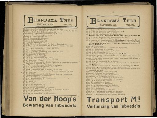 Gebruik tekstcoördinaten Transcriptie 234 RANDSMA Thee KAL VERSTE . 115 . TEL . 272 . Bijbelgenootschap ( Nederlandsen ) Heerengracht , 366 . Tel . 2896 . Bijdendijk ( Mr . J . H .) Leidschekade , 98 . Raadsheer in het Gerechtshof . Tel S £ 3964 Bijderwieden ( H . H .) Korte Leidschedwarsstraat , 97 . Bijderwiedeu ( P . C .) Korte Leidschedwarsstraat , 42 . Machinist . Bye ( Jonkvr . E . A . de ) Tan Eeghenstraat , 37 . Bijhouwer ( P .) Amsteheenscheweg , 99 . Bijker ( J .) Sparrenweg , 26 . Schoenmaker . Bijkerk ( C .) 2e Boerhaavestraat , 40 . Bijkerk ( J .) 2e Kostverlorenkade , 156 . Bijl ( A .) Ie van Swindenstraat , 60 . Bijl ( Mej . A .) Jacob van Lennepstraat , 91 . Koek - en Banketbakkerij . Bijl en Co . ( A .) Ie van Swindenstraat , 60 . In Bedden en Tapijten . Tel 5287 Bijl ( Adr . A .) " Wilhelminastraat , 116 . Huis . Photograaf . Bijl ( A . C .) Prins Hendrikkade , 11 . llêtel J . van Gelder . Bijl ( C .) Ie Oosterparkstraat , 126 . Bijl ( C . H . J .) Erederik Hendrikstraat , 124 . Expert . Tel . 5795 Bijl ( E . R .) Ie van Swindenstraat , 17 . Bijl ( G .) Bloedstraat , 9 . Machinist . Bijl ( H .) Fannius Scholtenstraat , 10 . Bijl ( Dr . H . C .) Roelof Hartstraat , 151 . Leeraar . Bijl ( J .) St . Nicolaasstraat , 48 . Broodbakker . Tel . 9224 . Bijl ( J .) Marnixkade , 111 . Smid . Bijl ( J A . P .) Binnenkant , 12 . Beëedigd Translates en Leeraar aan de Handels- school voo ) de Zioeedsche Taal . Bijl ( J . C .) Ie van Swindenstraat , 84 . Barbier en Aanspreker . Bijl Jr . ( J . C .) Lange Leidschedwarsstraat , 138 . Coiffeur Bijl ( K . J .) Albert Cuypstraat , 22 a . Bijl ( Firma L .) Vrolikstraat , 449 . In Brandstoffen . Tel . 8262 . Bijl ( L .) Vrolikstraat , 449 . Makelaar in Assurantiën en Hypotheken Tel 8262 Bijl ( L .) Singel , 419 . 3 \ £ A S £ W , iUib ™ 1 ' dll8strai it . 11 - Mj . Inspecteur Bouw - en Woningtoezicht . Bijl ( M .) Reguhersbreestraat , 40 . Costumière . Bijl ( M . F .) St . Willibrordusstraat , 44 . Bijl ( R . G .) Kloveniersburgwal , 62 . Kofp,ehuishouder . Bijl ( S .) Ie Jan Steenstraat , 65 . Bijl"(T .) Zeedijk , 13 . Bijl ( W . F . K .) Kinkersti-aat , 10 . Schoenmaker . Bijl ( D . van der ) Kinkerstraat , 12,5 . Bijl ( D . van der ) da Costastraat , 4 . Bijl ( F . L . van der ) Ruysdaelstraat , 97 . Machinist . Bijl ( Gt . van der ) Middenweg , 54 . Eoutkooper en Houtzager . Tel . 6076 Bijl ( G . van der ) Nassaukade , 83 . Eoutkooper . Bijl ( J . van der ) Pretoriusplein , 9 . Bijl ( J . van der ) Ruysdaelstraat , 95 . In Assurantiën . Van der Hoop's Bewaring van Inboedels Jrandsma Thee ] KAL VERSTE . 115 . TEL . 272 . b — * Bijl Jr . ( Johs . van der ) Jacob van Lennepkade , 6 . Bijl ( J . C . van der ) Middenweg , 54 . Eoutkooper . Tel . 6076J Bijl ( J . G . van der ) Rozengracht , 247 . In Effecten . Bijl ( P . C . van dei ) Egelantiersgracht , 17 . Makelaar-Expert . Interc . Telepli . Muniiiirr Voord 113 . Beurs Pilaar II . Bijl ( S . J . van den Wecsperzijde , 125 . Rijioiethandelaar . Tel . 3494 . Bijl ( Theo van der ) van Woustraat , 157 . Onderwijzer . Bijl en Zoon ( van der ) Egelantiersgracht , 17 . Makelaars in Assurantiën , Roerende en Onroerende goederen en Correspondenten der Ond . Br .- Waarborg - Mij . de Jong en Co . Interc . Telepli . Kinmmer Woord 113 . Beurs Pilaar B . Bijlaard ( W .) Pretoriusstraat , 7 . Bijland ( A .) Hugo de Grootkade , 14 . Aannemer can Begrafenissen . Bijleveld ( A .) Hobbemakade , 157 . Loodgieter . ngenievr . Tel . K 157 . 22 . Dir . der Assur . Comp . te Amsterdam Keizersgracht , 323 . Advocaat en Bijleveld ( A .) Cornell's Anthoniszstraat , 81 . Loodgiete Bijleveld ( C . B .) Zeeburgerdijk , 11 . Bijleveld ( E .) Roelof Hartstraat , 33—35 . J Bijleveld ( F . D .) Kantoor : Raadhuisstraat van 1771 . Tel . 1149 . Bijleveld Jr . ( H .) Nicolaes Maesstraat , 117 . Kantoor Procureur . Tel . 2217 . Bijleveld ( H . C . B .) Zeeburgerdijk , 11 . In Rijwielen . Bijleveld ( Mr . P . J .) van Eeghenstraat , 21 . Vice-President van het Gerechtshof . Tel . « 1012 . Bijleveld ( Mr . W . F .) Vossiusstraat , 25 . Raadsheer in het Gerechtshof . Tel . K 391 . Bijlevelt ( Fred , vqjn ) N . Z . Voorburgwal , 17 . Informatie-Bureau . Bijlevelt ( George van ) Reguliersgracht , 73 . Makelaar , Administrateur , Taxateur en in Assurantiën . Tel . 4255 . Bijlhout ( J .) 2e Atjehstraat , 3 , Huis . Schoenmaker . Bijlhout ( W .) Vrolikstraat , 164 . Schoenmaker . Bijlhouwer CA .) Ie Jan Steenstraat , 88 . Kleedermaker . Bijll Nachenius ( de ) zie Nachenius ( de Bijll ). Bijlmer ( J . J . F .) Korte Lijnbaansteeg , 3 . Tapper en Slijter . ' Bijlmer ( J . P . M .) St . Willibrordusstraat , 15 . Onderwijzer . Bijlmer ( W . J . F .) Singel , 159 . Pedicure . Bijloo ( M .) Pontanusstraal , 2 . Draaier . Bijlsma ( D .) Teerplein , 1 . In Aardappelen . Bijlsma ( J .) 2e Spaarndammerstraat , 92 . Winkelier . Bijlsma ( K .) Rustenburgerstraat , 299 . Diamantbewerker , Bijlsma ( S . J .) Amaliastraat , 1 . Bijlsma ( Thomas ) Kniperstraat , 70 . Melkslijter . Bijma ( B . W .) Frederik Hendrikplantsoen , 38 . Onderwijzer . Bijmholt ( B .) Ie Helmersstraat , 206 . Privaat Onderwijzer . Bijmoer ( J . G .) Haarlemmerstraat , 139 . Behanger ;*. Tel . 10491 . Transport Mü Verhuizing van Inboedels