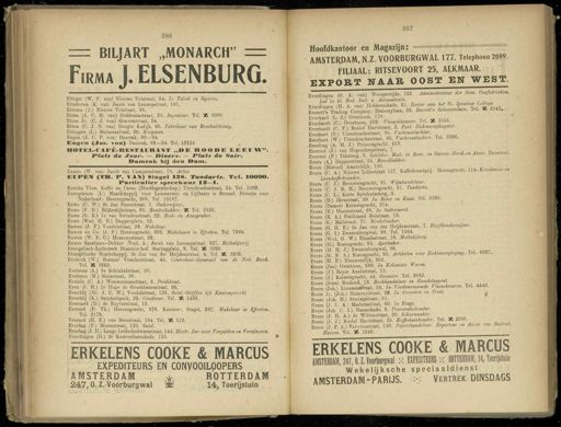 Gebruik tekstcoördinaten Transcriptie 386 —= BILJART „ MONARCH " = F.rma J . ELSENBURG . Etteger ( W . F . van ) Nieuwe Tolstraat , 84 . In Tabak en Sigaren . Ettekoven ( K . van ) Jacob van Lennepstraat , 181 . Ettema ( J .) Nienwe Tolstraat , 96 . Etten ( A . C . M . van ) Hobbemastraat , 22 . Ingenieur . Tel . „ 2060 . Etten Jr . ( C . J . van ) Gravenstraat , 24 . Etten ( C . J . N . van ) Hoogte Kadijk , 95 . Fabrikant van Beschuithonig . Ettingen ( L .) Burmanstraat , 20 . Koopman . Eugen ( J . C . P . von ) Damrak , 93—94 . Eugen ( Jus . von ) Damrak , 93—94 . Tel . 10124 HOXEI-CAFK-RESTAIIRABTT »» K KOOI » E „ EEUW ". Plats du nïïour . — niners . — Plats du Soir . Damrak Dij den Dam . Eunen ( W . van ! Jacob van Campenstraat , 78 . Artist . KIl'Eli ( TH . 1 ». VAM ) Singel 188 . Tandarts . Tel . ÏOOSO . Particulier spreekuur 13—1 . Eureka Thee , Koffie en Cacao ( Hoofdagentschap .) Utrechtschestraat , 34 . Tel . 1069 . Européenne ( L ') Maatschappij voor Levensverz . en Lijfrente te Brussel . Directie voor Nederland : Heerengraeht , 368 . Tel . 10187 . Euwe ( C . W .) 2e Jan Steenstraat , 1 . Onderwijzer . Euwe ( F . H .) Bilderdijkstraat , 65 . Banketbakker . „ Tel . 3535 . Euwe ( G . E .) Ie van Swindenstraat , 22 . Bode en Aanspreker . Euwe ( Wed . H . E .) Dapperplein , 22 . Euwen ( J . E .) Vondelstraat , 28 . Makelaar . Euwen en Co . ( J . F .) Heerengracht , 395 . Makelaars in Effecten . Tel . 7394 . Euwen ( W . F . C .) Hemonystraat , 29 . Euwes Speelman-Dekker ( Wed . A .) Jacob van Lennepstraat , 327 . Mellcslijterij . Evangelisch- Luthersch Diaconie-hof . Staringplein , 9 . Tel . ' Mi 3293 . Evangelische Maatschappij . 2e Jan van der Heijdenstraat , 4 ; Tel . X 2926 . Eyekink ( W .) Koemer Visscherstraat , 45 . Controleur-Oeneraal van de Ned . Bank . Tel . ' M , 3662 . Eveleens ( A .) 3e Schinkelstraat , 20 . Eveleens ( M .) Sluisstraat , 18 . Eveleïn ( C . A .) Wouwermanstraat , 2 . Predikant . Even ( J . H .) Ie Hugo de Grootdwarsstraat , 98 . Evenblij ( Mr . J . C . W .) Vondelstraat , 126 . Subst.-Griffier bjh Kantongerecht . Evenblij ( K .) Sarphatipark , 22,-Confiseur . Tel . „ 1438 . Everaard ( D .) de Ruyterstraat , 13 . Everard ( F . Th .) Heerengracht , 378 . Kantoor : Singel , 397 . Makelaar in Effecten ,. Tel . 2178 . Everard ( H . E .) van Breestraat , 164 . Tel . ' fi 513 . Everbag ( F .) Bloemstraat , 123 . Smid . Everbag ( J . H .) Lange Leidschedwarsstraat , 144 . Electr . Inr . voor Vergulden en Verzilveren . Everdingen ( II .) 2e Kostverlorenkade , 153 . P ERKEiENS C00KE & MARCUS I EXPEDITEURS EN CONVOOILQOPERS AMSTERDAM , i r ROTTERDAM 247 , 0 , Z . Voorburgwal __ 14 , Toerijstuin 387 Hoofdkantoor en Magazijn : = AMSTERDAM , N.Z . VOORBURGWAL 177 . Telephoon 2099 . FILIAAL : RITSEVOORT 25 , ALKMAAR . EXPO RT NAAR OOST EN WEST . Everdingen ( G . A . van ) Weesperzijd " 122 . Administrateur der Gem . Gasfabrieken , Lid Ie kl . Ned . Inst . v . Accountants . Everdingen ( M . A . van ) Hobbemakade , 51 . Rector aan het St . Ignatius CoUege . Everett's Trading Company . Hemonylaan , 23 . Everett's Schoencremes . Tel . „ 2047 . , Everhard ( L . J .) Overtoom , 178 . Everbardt ( C .) Overtoom , 509 . Vleeschhouwer . Tel . „ 3o55 Everhardt ( C . F .) Roelof Hartstraat , 2 . Part . Ziekenverpleegster . Everhart ( G .) Utrechtschestraat , 95 . Varkensslachter . Everhart ( W .) Utrechtschestraat , 95 . Varkensslachter , lel . 1Mb . Everling ( A . M . J .) Prinsengracht , 413 . S ^^ ü^tThuÉ-'Mak . in Roe , en Onroe , Goed . en Ass a , Ta,aieu , Evers ( A .) Dapperstraat , 24 . Broodbakker . EvS ! aT)\t"S ; s taat 127 . Koffiebranderij : Bloemgracht , 114 . Kruidenleren Loonkopebrander . Evers ( C J .) Brouwersgracht , 81 . Wijnhandelaar . Evers ( C . J . B . M .) Brouwersgracht , 81 . Tandarts . Evers ( O L .) Korte Spinhuissteeg , 3 . Evers ( D .) Javastraat , 20 : In Boter en Kaas . Tel . 5db0 . Evers ( Dames ) Keizersgracht , 214 . Evers ( E .) Hazenstraat , 68 . In Suikerwerk . Evers ( E . A .) Ferdinand Bolstraat , 13 . Evers ( G .) Balistraat , 75 . Meubelmaker . . Evers ( G . H . E .) 2e Jan van der Heijdenstraat , 7 . Hoofdonderwijzer . Evers ( G . I .) Zwanenburgwal , 98 . Tel . 1564 . Evers ( Wed . G . W .) Elandsstraat , 16 . Melkslijtery ) . Evers ( H .) Rozengracht , 95 . Apotheker . Evers ( H . H . J .) Zwanenburgwal , 98 . Evers ( H . N . A .) Rozengracht , 95 . Artikelen voor Ziekenverpleging , lel . 8,467 . Evers ( H . P .) Nieuwendijk , 202 . Evers ( Jan ) Overtoom , 589 . In Koloniale Waren . Evers ( J .) Reyer Anslostraat , 15 . Evers ( J .) Keizersgracht , 44 . Grossier . Tel . 2Ó82 . Evers ( Jean ) Rusland , 13 . Boekhandelaar en Handelsagent Evers ( Joh ) Linnaeusstraat , 24 . In Verduurzaamde Vleeschwaren . Tel . - 4440 . Evers Jr . ( Joh .) Hemonystraat . 38 . In Groenten en Eruit . Evers ( Joh . H .) Staringstraat , 21 . Evers ( J . C . A .) Madurastraat , 60 . Ie Etage . Evers ( Joh . C . J .) Nassaukade , 6 . Procuratiehouder . Evers ( J H . A .) de Wittenstraat , 20 . Schoenmaker . Evers ( J . J .) Roelof Hartstraat , 25 . Koffiehuishouder . Tel . _ 20Jo . Evers ( J . P . A .) Valeriusstraat , 149 . Papierhandelaar . Exporteur en Agent van Bmlenl.Huizen . Tel . _ 1243 . — ERKELENS C0GKE & MARCUS AMSTERDAM , 247,0 . ZJoorbupgwal :•: EXPEDITEURS :-: ROTTERDAM , 14 , Toerijstuin Wekelijksche speciaaldienst AMSTERDAM-PARIJS . >■ Vertrek DINSDAGS