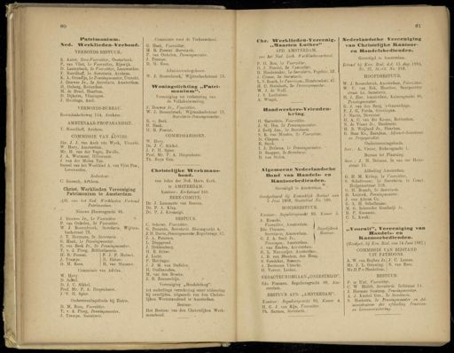 « o 61 I*»trillion ! il ik . Med . Werklieden-Verbond . VERBONDS - BESTUUR . . K . Kater , Eere-Voorzitter , Oosterbeek . P . van Vliet , Ie Voorzitter ., Rijswijk . D . Lautenbach , 2e Voorzitter ,^ Leeuwarden . F . Noordhoff , Ie Secretaris , Arnhem . K . A . Grondijs , \ e Penningmeester , Utrecht . J . Douwes Jr ., 2e Secretaris , Amsterdam . H . Ouborg , Rotterdam . M . de Braal , Haarlem . . 1 ). Dijkstra , Vlissingen . J . Huizinga , Axel . VERBONDS-BUREAU . Rozcndaakcheweg 154 , Arnhem . AMBTENAAR-PROPAGANDIST . T . Noordhofl ', Arnhem . COMMISSIE VAN ADVIES . t Jhr . J . J . van Asch van " Wyck , Utrecht . W . Hovy , Amsterdam . Mr . H . van der Vegte , Zwolle . J . A . Wormser , Hilversum . J . van der Molen Tzn . Bureel van het Weekblad A . van Vliet Pzn ., Leeuwarden . Redacteur . O . Smeenk , Arïihem . Christ . Werklieden Vereeniging Patrimonium te Amsterdam . A/d . van het Ned . Werklieden Verbond Patrimonium . Nieuwe Heerengracht 95 . 3 . Douwes Jr ., Ie Voorzitter P . van Onkelen , 2e Voorzitter . W . J . Bossenbroek , Secretaris , Wijtten - bachstraat 73 . J . T . Hermans , 2e Secretaris . G . Haak , Ie Penningmeester . E , van Beek Jr ., 2e Penningmeester . T . v . d . Ploeg , Bibliothecaris . H ; B . Poesiat . | F . J . P . Hubert . J . Trampe . | D . Hützer . D . M . Roos . J H . van Munster . Commissie van Advies . W . Hovy . D . Schut . D . J . C . Sikkel . Prof . Mr . P . A . Diepenhorst . J ' F . H . Spier . Ondersteuningsfonds bij Ziekte . D . M . Roos , Voorzitter , T . v . d . Ploeg , Penningmeester . J . Trampe , Secretaris , Commissie voor de Teekenschool . G . Haak , Voorzitter . H B . Poesiat Secretaris . P . van Onkelen , Penningmeester . J . Trampe . D . M . Roos . Administratiegebouw . W . J . Bossenbroek , Wijttenbaehstraat 73 . Woningstichting . Patri- monium ". Vereeniging tot verbetering van de Volkshuisvesting , J . Douwes Jr ., Voorzitter . W . J . Bossenbroek , Wijttenbaehstraat 73 , Secretaris- Penningmeester . E . v . Beek . G . Haak . H . B . Poesiat . COMMISSARISSEN . W . Hovy . Ds . J . C . Sikkel . J . F . II . Spier . Prof . Mr . P . A . Diepenhorst . Th . Ruys Gzn . Christelijke Werbmans- bond . van leden der Ned . Herv . Kerk . te AMSTERDAM . Kantoor : Kerkstraat 248 . EERB-COMITÉ . Dr . J . Laminerts van Bueren . Dr . P . A . Klap . Dr . P . J . Kromsigt . BESTUUR . C . Scherer , Voorzitter . G . Ponstein , Secretaris . Bloemgracht 4 . J . H . Davio , Penningmeester Jleguliersgr . 57 . J . A . Petersen . L . Diepgrond . J . Hekkenherg . H . B . Sitter . J . Licht . P . Heitlager . J . J . M . van Duffelen . H . Oudheusden . M . van den Broeke . J . B . Zonneschijn . Vereeniging „ Bondsbelang ", tot onderlinge verzekering eener uitkeeriug bij overlijden , uitgaande van den Christe- lijken Werkmansbond te Amsterdam . Bestuur.Het Bestuur van den Christelijken Werk- mansbond . , Chr . Werklleden-Vereenig . „ Maarten Imther " AFD . AMSTERDAM . van het Ned . Lath . Werkliedenverbond . P . H . Bon , Ie Voorzitter . D . J . Nicolai , 2e Voorzitter . D . Hoedemaker , Ie Secretaris , Fagelstr . 52 . J . Croese , 2e Secretaris . L . N . Rusch , Ie Penningm ., Hazebroekstr . 47 . H . C . Steinhart , 2e Penningmeester . W . J . de Wolf . J . S . Lasthuiseu . A . Wiegel . Handwerkers-Vrienden- kring . VI . • Barnstein , Voorzitter . J . M . Hes , 2é Penningmeester . J . Zodij Jzn ., Ie Secretaris . S . R . van Minden , 2e Voorzitter . D . Chapon . E . Sterk . I . J . Drilsma , Ie Penningmeester . D . Snapper , 2e Secretaris . D . van Strien . Algemèene HJederlandsche Bond van Handels - en Kantoorbedienden . Gevestigd te Amsterdam . Goedgekeurd bij Koninklijk Besluit van 5 Juni 1906 , Staatsblad No . 160 . BONDSBESTÜUR . Kantoor : Reguliersgracht 80 , Kamer 5 . A . Ricardo , Voorzitter , Amsterdam.Edo Fimmen , \ Bagelijksch Secretaris , Amsterdam . t Bestuur . G . J . A . Smit Jr ., Penningm ., Amsterdam . . 1 . van Emden , Amsterdam . G . L . Niermeijer , Amsterdam . J . B . van Blanken , den Haag . S . Goudeket , Bussum . A . Zoeteman Utrecht . H . Verver , Leiden . REDACTEUR ORGAAN „ ONZESTRIJD ". Edo Fimmen , Reguliersgracht 80 , Am - sterdam . BESTUUR AFD . „ AMSTERDAM ". Kantoor : Reguliersgracht 80 , Kamer 4 . H . G . J . van Rijn , Voorzitter . Ph . Barmes , Secretaris . Sfederlanrische Vereeniging van Christelijke Kantoor- en Handelsbedienden . Gevestigd te Amsterdam . Erkend'bij Kon . Best . d.d . 15 Aug . 1894 , No . 27 , St.-Ct . No . 216 . HOOFDBESTUUR . W . J . Bossenbroek , Amsterdam , Voorzitter . W . F . van Eek , Haarlem , Santpoorter- straat la , Secretaris , H . 1 . Zier , Amsterdam , Keizersgracht 88 , Penningmeester . G . J . van den Berg , ' s-Gravenhage . F . J . G , Furda , Groningen.J . Nauta , Deventer . H . A . O van der Kraan , Rotterdam , N . de Visser Jr ., Dordreeht . H . B . Weijland Jr ., Haarlem . G . Baas Kz ., Zaandam , Adjunct-Secretaris en Propagandist . Ondersteuningsfonds . Secr . : A . Vietor , Bickersgracht 1 . Bureau tot Plaatsing . Secr . : J . H . Dolman , 2e van der Helst - straat 15 . Afdeeling Amsterdam . G . H . M . Krimp , Ie Voorzitter . S . Schaftenaar , Ie Secretaris . Ie Const . Huijgensstraat 116 . G . H . Brandt , 2e Secretaris . H . Luïrink , Penningmeester . J . van Altena Cz . G . A . H . Schaftenaar . M . G . Schreuder Goedheijt Jr . H . P . Goossens . C . L . Kwak .' „ Vooruit ", Vereeniging van Handels - en Kantoorbedienden . { Goedgek . bij Kon . Besl . van 14 Juni 1887 .) COMMISSIE VAN BIJSTAND UIT PATROONS . A . W . van Eeghen Jr . J . O Loman . Mr . J . L . Gunning . R . van Rees . Mr.H.P.v.Heukelom . BESTUUR . P . te Riet , Voorzitter . C . W Höfelt , Secretaris . Zeiistraat 14 . J . Herman Siestrop , Penningmeester . A . J . Knebel Gzn ., 2e Secretaris . S . Hoekstra , 2e Penningmeester en Ad- ministrateur der af * en Levensverzekering .