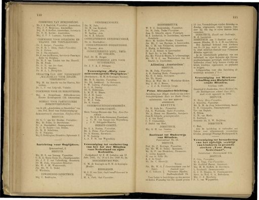 110 111 COMMISSIE VAN BEMIDDELING . Mr . J . B . Roelvink , Voorzitter . Amsterdam . Mej . J . P . Reijavaan , Amsterdam . Mej . H . E . Stoffers , Amsterdam , Secretaris . Dr . D . H . Koetser , Amsterdam . Mej . J . P . J . Logeman , Amsterdam . COMMISSIE VOOR OPLEIDING EN EXAMEN DER VERPLEGENDEN . Dr . J . K-uipei ', Voorzitter . Dr . P . U . v . Eden , Onder-Voorzitter . Dr . J . Dirken . Dr . J . Haversehmidt . Dr . J . van der Hoeven , Secretaris-Penningm . Eefde bij Zutphen . Dr . H . J . van Linden van den Heuvell . Dr . M . Polak . Dr . D . H . van der Goot . Dr . B . H . Stephan . Dr . H . J . L . Struijcken . REDACTI » VAN HET TIJDSCHRIFT „ MAANDBLAD VOOR ZIEKEN - VERPLEGING ". Mej . M . des Amorie van der Hoeven , Rot- terdam . Dr . L . P . van Lelyveld , utrecht . COMMISSIE VOOR DE BIBLIOTHEEK . Mej . A . Stoppelman , Bibliothecaresse , Nieuwe Keizersgracht 110 , Amsterdam . BUREAU VOOR PARTICULIERE ZIEKENVERPLEGING van de afd . „ Amsterdam en Omstreken " van den Ned . Bond voor Ziekenverpleging . Spinozastraat 2 , Amsterdam . Telefoon 2774 . BESTUUR : Dr . L . C . van der Meulen , Voorzitter . Mej . M . Jolles , Ie Secretaresse . Dr . A . Bonebakker , Penningmeester . H . C . de Ruijter — van Delden . Zr . M . E . Scheltema . Zr . G . Fennema . Mej . C . S.ti<iiag\ua ~ Directrice , Spinozastr . 2 . Inrichting - voor Ooglijders . Spinozastraat , 2 . BESTUUR . Mr . H . S . van Lennep , Voorzitter . G . H . de Marez Oyens Jr ., Penningmeester . Mr . J . E . T . van Valkenburg , Secretaris . Dr . M . Juda , Geneesheer-Directeur . Mr . W . J . M . Westerwoudt . Jhr . Mr . W . G . Dedel . H . Wertheim . INWONENDE-DIRECTRICE . Mej . C . Reddingins . GENEESKUNDIGEN . Dr . M . Juda . Dr . N . van Rynberk . B . P . Visser , Arts . W . Snellen , Arts . Dr . G . J . Schoute . CONSULTEEREND GENEESKUNDIGE . Dr . A . Bonebakker . ■ CONSULTEEREND HEELKUNDIGE . H . Timmer , Arts . CONSULTEEREND KEEL -, NEUS- EN OORARTS . Prof . Dr . H . Burger . CONSULTEEREND ARTS VOOR HUIDZIEKTEN. Dr . J . F . A . J . Söhngen . Vereeniging „ Hulp voor minvermogende Ooglijders ." ( Beschermvr . : H . M . de Koningin Moeder ). Mr . B . E . Asscher , Voorzitter . Mr . Ed . Lankhout , Ie Secretaris . F . W . Ludwig , Penningmeester . G . C . B . Dnnlop.Dr . C . Hesterman.L . M . P . G . Hoorn.Dr . J . H . Lonte.Dr . S . A . Norden . C . W . J . Nuijs . Dr . S . Simons . ONDERSTEUNINGSCOMMISSIËN . DAMES- COMITE : Mevr . Vening-Meinesz-den Tex , Eere-Pre- sidente . „ Dr . N . G . Juda-Swemmer , Presidente . „ C . M . van Spanje-van Wayenburg . „ J . C . Schippers-Blanche . HEEREN-COMITÉ : Dr . S . A . Norden , Voorzitter . Mr . L . Prins , Vice- Voorzitter . Dr . S . Simons , Secretaris . F . W . Ludwig . A . A . P . M . van Wayenburg . Vereeniging tot verbetering van liet lot der Blinden voor Nederland en zijne Koloniën . Goedgekeurd bij Z . M . besluiten van 13 Febr . 1881 , No . 16 en 5 Dec . 1886 No . 24 . BESCHERMVROUWEN . H . M . de Koningin en H . M . de Koningin- Moedei '. EERELEDEN . M . J . H . van Lier , Oud-Consut - Generaal te Parijs . M . A . Perk , Oud- Voorzitter . HOOFDBESTUUR . W . F . C . Druijvesteijn , Voorzitter . Dr . M . Juda , Onder-Voorzitter . Joan H . Schmitz , algem . Penningm . H . J . Lenderink , te Amsterdam , algemeen Secretaris . Mevr . M . Snellen-Werker , Utrecht . Jhr . Mr . C . van Eysinga , te Leeuwarden . Mr . C . H . van Tienhoven , Amsterdam . J . Hudig , te Rotterdam . Dr . J . A . Romer , te Leeuwarden . P . Smit Jr ., te den Haag . Jhr . Mr . Victor de Stuers , te ' s Gravenhage . Mr . W . S . J . van Waterschoot van dei- Gracht , te Amsterdam . Afdeeling „ Amsterdam ". BESTUUR . Dr . M . Juda , Voorzitter . A . G . Joosting Bunk , Penningmeester . Mr . G . J . Salm , Secretaris . Mr . Th . Stuart . Mevr . de Wed - Mr . J . Wertheim-Bicker . Mej . J . M . J . Reesse . „ J . J . R . Everwijn Lange . Prins Alexander-Sticliting . Inrichting voor Blinde kinderen van iedere Geloofsbelijdenis Muis ter Heide ( Zeist ). HOOFDZETEL VAN HET BESTUUR AMSTERDAM . BESTUUR . Dr . M . Juda Sr ., Voorzitter . Joh . G . Wertheim , Onder-Voorzitter . Mr . A . Baron vau Haersolte , Secretaris . Joan H . Schmitz , penningmeester . J . A . van Ketel , C . F . Utermöhlen . J . Dudok van Heel . DIRECTRICE . Mej . G . H . van Dorsten . Instituut tot Onderwijs van Blinden . Vossiiisslraat No . 56 . BESTUUR . Prof . Dr . P . Ruitinga , Voorzitter . Jhr . Mr . W . G . Dedel , Secretaris . Mr . H . P . van He.iikelom , Thesaurier . _ A . Ariëns Kappers . H . van de Velde Hz . A . 1 . de Graaf . Mr . Dr . 0 . Sleeswijk . ( Tevens Commissarissen van hel Gesticht voor Volwassen Blinden . Stadhouder shade . 84 . Voor Leden te bezichtigen op den eersten en derden JVoensdag\<\n elke maand precies 10 uur . Vreemdelingen vinden Zaterdag en Zondag uitgenomen , vrijen toegang , wan- neer zij één dag te voren daarom laten verzoeken . DIRECTEUR , Hoofd van Onderwijs . H . J . Lenderink . DIRECTEUR van ' t Gesticht voor Vol- wassen Blinden , H . L . J . M . van Ishoven . Het Instituut bestemd voor kinderen van 6—18 jaar , werd in 1808 gesticht . In 1843 werd het Gesticht voor Volwassen Blinden opgericht . In de verschillende gedeelten van ons vaderland en zijne Koloniën zijn Corres- pondentschappen gevestigd , zoodat belang- hebbenden overal hulp kunnen vinden om blinde kinderen opgenomen en geplaatst te krijgen . Lidmaatschap voor elke Inrichting af- zonderlijk minstens ƒ 5 .— Vereeniging tot Werkver- schaffing aan Bulptoelioe- vende Blinden . Telefoon 5460 . Gevestigd te Amsterdam , Plant . Midden /. 64 . Als Rechtspersoon erkend Juni 1871 , doch reeds opgericht in 1865 . BESTUUR . W . Hovy , Eere - Voorzitter . J . Schwartz , Voorzitter . Mr . L . M . de Jong Schouwenburg , Secret . G . D . Crommelin , Penningmeester . Tyo van Eeghen . E '. Sillem . H . W . van Marie . G . Lieftinck . Honorair lid , E . W . Heijblom . DIRECTEUR . C . Ezel . Aan de inrichting is verbonden 