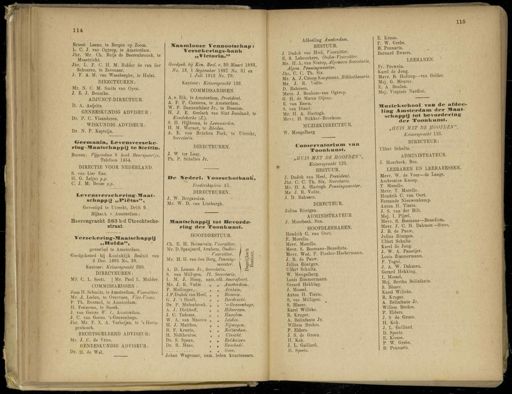 115 114 Ernest Laane , te Bergen op Zoom . L . C . J . van Ogtrop , te Amsterdam . Jhr . Mr . Ch . Ruijs de Beerenbrouck , te Maastricht . Jhr . L . F . C . H . M . Ridder de van der Schueren , te Zevenaar . J . F . A . M . van Waesberghe , te Hulst . DIRECTEUREN : Mr . N . C . M . Smits van Oyen . J . E . J . Bonnike . ADJUNCT-DIRECTEUR . D . A . Aeijelts . GENEESKUNDIG ADVISEUR : Dr . P . C . Vlaanderen . WISKUNDIG ADVISEUR : Dr . N . P . Kapteijn . Oermania , Levensrerzeke- riug-Maatschappij te Stettin . Bureau : Vijgendam 8 hoek Beurspoorlje . Telefoon 1454 . DIRECTIE VOOR NEDERLAND . S . van Lier Ezn . H . G . Leijns p.p . C . J . M . Bense p.p . Levensverzekerinv-Jlaat-schappij „ T*iëtas ". Gevestigd te Utrecht , Drift 9 . Bijkant . v.Amsterdam : Heerengracht 583 b/d Utrechtsche- straat . Verzekering-Maatschappij „ Holda ", gevestigd te Amsterdam . Goedgekeurd bij Koninklijk Besluit van 3 Dec . 1895 No . 38 , Kantoor : Keizersgracht 290 . DIRECTEUREN : Mr '. C . L . Scott . [ Mr . Paul L . Mulder . COMMISSARISSEN : Joan H . Schmitz , te Amsterdam , Voorzitter . Mr . 1 . Lnden , te Overveen , Vice-Voorz . E . Th . Everard , te Amsterdam . II . Eennema , te Sneek . . 7 . van Geuns IV . I ., Amsterdam . J . C . van Goens , VGravenhage . Jhr . Mr . E . X , A . Verheijen , te ' s Herto-genbosch . RECHTSGELEERD ADVISEUR : Mr . J . C . de Vries . GENEESKUNDIG ADVISEUR : Dr . H . de Wal . Haamlooze Vennootschap i Verzekerings-bank „ Victoria ." Goedgek . bij Kon . Best . v . 30 Maart 1883 , No . 13 , 1 September 1897 No . 31 en 1 Juli 1912 No . 79 . Kantoor : Keizersgracht 126 . COMMISSARISSEN . A . v . Eik , te Amsterdam , President . A . E . P . Carstens , te Amsterdam . W . F . Dannenfelser Jr ., te Bussuin . H . J . E . Gerlach van Sint Joosland , te Koudekerke ( Z .). S . H . Hijlkema , te Leeuwarden . H . M . Werner , te Meden . A . E . von Brücken Eock , te Utrecht , Secretaris . DIRECTEUREN . J . W ter Laag . Ph . P . Scheltes Jr . De Wederl . Voorschotbank . Frederiksplein 51 . DIRECTEUREN . J . W . BergaDsiuB . Mr . W . D . van Limburgh . Maatschappij tot Bevorde- ring- der Toonkunst . HOOFDBESTUUR . Gh . E . H . Boissevain , Voorzitter . Mr . D . Spanjaard , Arnhem , Onder- Voorzitter . Mr . H . H . van den Berg , Penning- meester . A . D . Loman Jr ., Secretaris . S . van Milligen , PI . Secretaris . I . M . J . Hoog , nam . afd . Amersfoort . Mr . J . R . Vpiite „ „ Amsterdam . F . Mollinger , „ „ Arnhem . J.P.Dndok van Heel , „ „ Bussum . G . J . ' t Hooft , a „ Dordrecht . Dr . P . Molenbroek , „ „ ' s-Gravenhage . A . J . Dickhoff , „ „■ Hilversum . J . O Tadema , .„ „ Haarlem . W . A . van Maaren „ „ Leiden . H . J . Matthes , „ „ Nijmegen . B . F . Krantz , „ „ Rotterdam . H . Nolthenius . „ , ; Utrecht . Ds . S . Spaan , „ „ Enkhuizen . Dr . R . Maas , „ » Enschedé . » » Goes . Johan Wagenaar , nam . leden kunstenaars . Afdeeling Amüerdam . BESTUUR . J . Dudok van Heel , Voorzitter . E S . Labonchere , Onder-Voorzitter . Mr . H . A . van Nierop , Algemeen Secretaris , Algem . Penningmeester . Jhr . C . C . Th . Six . Mr . A . J . Cnoop Koopmans , Bibliothecaris . Mr . J . R . Voute . D . Rahusen . Mevr . J . Beukers-van Ogtrop . G . H . de Marez Oijens . E . van Essen.S . van Dissel . Mr . H . A . Hartogh . Mevr . H . Stikker-Broekens . MUZIEKDIRECTEUR . W . Mengelberg Conservatorium van Toonkunst . „ HUIS MET BE HOOFDEN ", Keizersgracht 123 . BESTUUR . J . Dudok van Heel , President . Jhr . O C . Th . Six , Secretaris . Mr . H . A . Hartogh Penningmeester . Mr . J . R . Voute . J . D . Rahusen . DIRECTEUR . Julius Röntgen . ADMINISTRATEUR J . Moerbeek . Bzn . HOOFDLEERAREN . Hendrik C . van Oort . F . Morello . Mevr . Morello . Mevr . S . Bosmans-Benedicts . Mevr . Wed . P . Fischer-Haebermann . J . B . de Pauw . Julius Röntgen . ülfert Schults . W . Mengelberg . Louis Zimmermann . Gerard Hekking . J . Mossel . Anton H . Tierie . S . vaD Milligen . # S . Blazer . Karel Willeke . R . Kruger . A . Belinfante Jr . Willem Brohm . P . Elders . J . S . de Groen . H . Kok . J . L . Gaillard . D . Speets . E . Kresse . P . W . Grebe . B . Pennarts . Bernard Zweers . LEERAREN . Fr . Frowein . Karel de Jong . Mevr . B . Holtrop—van Gelder . Mej . G . Meurer . E . A . Boulan . Mej . Virginie Nardini . Muziekschool van de afdee- ling Amsterdam der Maat- schappij tot bevordering der Toonkunst . „ HUIS MET DE HOOFDEN ", Keizersgracht 123 . DIRECTEUR : Ulfert Schnlts . ADMINISTRATEUR . J . Moerbeek . Bzn . LEERAREN EN LEERARESSEN . Mevr . W . de Veer—de Lange . Ambrosius Knoop . T . Morello . Mevr . T . Morello . Hendrik C . van Oort . Fernande Nieuwenkamp . Anton H . Tierie . J . S . van der Bilt . Mej . I . Pijzel . Mevr . S . Bosnians—Benedicts . Mevr . J . C . H . Dahmen—Stroo . J . B . de Pauw . Julius Röntgen . Ulfert Schults . Karel de Jong . J . W . A . Pameijer . Louis Zimmermann . F . Togni . J . A . W . Dahmen . Gerard Hekking . I . Mossel . Mej . Bertha Belinfante . S . Blazer . Karel Willeke . R . Kruger . A . Belinfante Jr . Willem Brohm.P . Elders . J . S - de Groen . H , Kok . J . L . Gaillard . D . Speets . E . Kresse . p . W . Grebe . B . Pennarts .