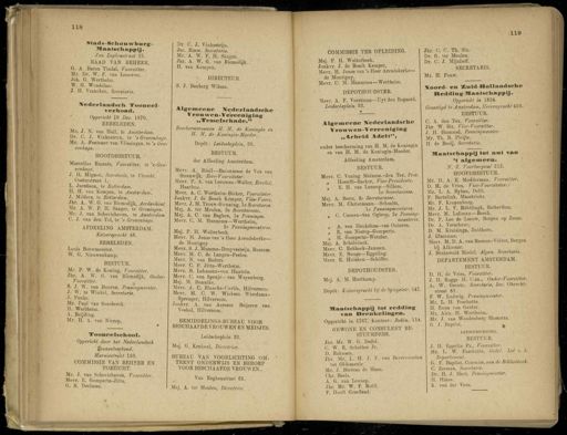 118 119 Stads-Schouwnurg-Maa irscliappij . Jan Lnykenstraat 25 . RAAD VAN BEHEER . G . A . Baron Tindal , Voorzitter . Mr . Dr . W . F . van Leeuwen . Joh . G . Wertheim . " W . G . Wendelaar . J . H . Vrancken , Secretaris . IVederlandscli Tooneel - verbnnd . Opgericht 19 Dec . 1870 . EERELEDEN . Mr . J . N . van Hall , te Amsterdam . Dr . C . J . Vinkesteyn , te ' s Gravenhage . Mr . A . Fentener van Vlissingan , te '* Gra - HOOFDBESTÜÜR . Marcellus Emants , Voorzitter , te ' s-Gra - venhage . J . H . Mignon , Secretaris , te Utrecht , Oosterstraat 1 . L . Jacobson , te Rotterdam . H . H . van Kempen , te Amsterdam . J . Milders , te Rotterdam . Jhr . A . W . G . van Riemsdijk , Aerdenhout Mr . A . W . F . H . Sanger , te Groningen . Mr . J . van Schevichaven , te Amsterdam C . J . van den Tol , te ' s Gravenhage . AFDEELING AMSTERDAM . Keizersgracht 48 . EERELEDEN . Louis Bouwmeester . W . G . Nieuwenkamp . BESTUUR . Mr . P . W . de Koning , Voorzitter . Jhr . A . W . G . van Riemsdijk , Onder- Voorzitter . S . J . W . van Buuren , Penningmeester . J . W ; te Winkel , Secretaris . J . Funke . Mr . Paul van Sonsbeeck . H . Wertheim . A . Reijding . Mr . H . A . van Nierop , Tooneelschool . Opgericht door het Nederlandsch looneelverbond . Marnixstraat 150 . COMMISSIE VAN BEHEER EN TOEZICHT. Mr . J . van Schevichaven , Voorzitter . Mevr . E . Gompertz-Jitta . G . R . Deelman . Dr . C . J . Vinkesteijn . Jac . Rinse . Secretaris . Mr . A . W . F . H . Sanger . Jhr . A . W . G . van Riemsdijk . H . van Kempen . DIRECTEUR . S . J . Bouberg Wilson . Algemeene IWederlandsche Vrouwen-Vereeniging „ Tesselschade ." Beschermvrouwen ff . M . de Koningin en H . M . de Koningin-Moeder . Depot : Leidscheplein , 33 . BESTUUR , der Afdeeling Amsterdam . Mevr . A . Röell — Baronnesse de Vos van Steenwijk , JEere-Voorzitster . Mevr . P . A . van Leeuwen- Waller , Eerelid , Haarlem . Mevr . A . O Wertheim-Bicker , Voorzitster . Jonkvr . J . de Bosch Kemper , Vice-Voorz . Mevr . J . M . Trouw-Gunning , Ie Secretares . Mej . A . ter Meulen , 2e Secretaresse . Mej . A . O van Eeghen , Ie Penningm . Mevr . C . M . Hannema—Wertheim , 2e Penninqmeesteres . Mej . P . H . Wolterbeek . Mevr . H . Jonas van ' s Heer Arendskerke — de Montigny Mevr . S . J . Momma-Druyvesteijn , Bussum . Mevr . M . C . de Langen-Peelen . Mevr . N . van Raders . Mevr . C . F . Jitta-Wertheim . Mevr . B . Lehmann-von Hunteln . Mevr . C . van Spanje — van Wayenburg . Mej . M . Bonuike . Mevr . A . C . Blancke-Curtis , Hilversum . Mevr . M . O W . Wichers Wierdsma - Sprenger , Hilversum . Jonkvr . A . van Aerssen Beijeren van , Voshol , Hilversum . BEMIDDELINGS-BUREAU VOOR BESCHAAFDE VROUWEN EN MEISJES . Leidscheplein 33 . Mej . G . Kruimel , Directrice . BUREAU VAN VOORLICHTING OM- TRENT ONDERWIJS EN BEROEP VOOR BESCHAAFDE VROUWEN . Van Eeghenstraat 65 . Mej . A . ter Meulen , Directrice . COMMISSIE TER OPLEIDING . Mej . P . H . Wolterbeek . Jonkvr . J . de Bosch Kemper , Mevr . H . Jonas van's Heer Arendskerke — de Montigny . Mevr . C . M . Hannema—Wertheim . DEPOTHOUDSTER . Mevr . A . F . Vorstman—Uyt den Bogaard . Leidscheplein 33 . Algemeene Siederlandsche Vrouwen-Vereenïging „ Arbeid Adelt ", onder bescherming van H . M . de Koningin en van H . M . de Koningin-Moeder . Afdeeling Amsterdam . BESTUUR . Mevr . C . Vening Meinesz.-den Tex , Pres . „ Hoeufft-Backer , Vice-Presidente . „ E . H . van Lennep — Sillem , Ie Sceretaresse . Mej . A . Beetz , 2e Secretaresse . Mevr . M . Christmann — Schmitz , Ie Penningmeesteres . „ C . Coenen-van Ogtrop , % e Penning- meesteres . „ A . van Heukelom-van Outeren . „ E . van Nierop-Gompertz . „ H . Gompertz-Wetzlar . Mej . A . Schol vin ck . Mevr . O Rehbock-Janssen . Mevr . E . Bunge—Eggeïing . Mevr . E . Huisken—Schöffer . DEPOTHOUDSTER . Mej . A . M . Hartkamp . Depot : Keizersgracht iij de Spiegelstr . 547 . maatschappij tot redding van I»renhelingen . Opgericht in 1767 , Kantoor : RoMn , 114 . GEWONE EN CONSULENT BE - STUURDERS . Jhr . Mr . W . G . Dedel . C . W . R . Scholten Jr . D . Rahuseu . Jhr . Mr . L . H . J . F . van Bevervoorden tot Oldemeule . Mr . J . Bierens de Haan . Chr . Beels . A . G . van Lennep . Jhr . Mr . W . F . Roëll . F . Hooi't Graafland . Jhr . C . O Th . Six . Dr . G . ter Meulen . Dr . C . J . Mijnlieff . • SECRETARIS . Mr . H . Pouw . Koord - en BSuid-Mollandsche Redding-Maatschappij . Opgericht in 1824 . Gevestigd te Amsterdam , ffeerengrachttöQ . B.ESTUUR . C . A . den Tex , Voorzitter . Jhr . W . Six , Vice-Voorzitter . J . H . Hummel , Penningmeester . Mr . Th . B . Pleijte . H . de Booij , Secretaris . maatschappij tot « ut van ' t algemeen » N . Z . Voorburgwal 212 . HOOFDBESTUUR . Mr . H . A . E . Modderman , Voorzitter '. D . H . de Vries , Vice-Voorzitster . Mr . L . A . Bybau , Delft . F . Bartelink , Maastricht . Mr . F . Kranenburg . Mr . J . L . F . Bóhtlingk , Rotterdam . Mevr . M . Leliman — Bosch . Dr . F . Leo de Leeuw , Bergen op Zoom . Dr . A . Verschuur . D . M . Kruisinga , Zuidhorn . J . IJzerman . Mevr . M . D . A . van Reenen- Völter , Bergen hij Alkmaar . J . Bruinwold Riedel , Algem . Secretaris . DEPARTEMENT AMSTERDAM . BESTUUR . D . H . de Vries , Voorzitter . J . H . Rogge H . C.zn ., Onder-Voorzitter . A . W . Groote , Secretaris , Jac . Obrecht - straat 8r . F . W . Ludwig , Penningmeester . Mr . L . H . Feschotte . II . Enno van Gelder . Mr . Alex . II . Wertheim . Mi '. J . van Woudenberg Hamstra . G . 1 . Baptist . s LEESINEICHTING . BESTUUR . . 1 . H . Eggelte Pz ., Voorzitter . Mr . L . W . Feschotte , Gedel . Lid ». h . Departement . G . F . Baptist , Commiss . van de Bibliotheek . C . Zeeman , Secretaris . Dr . H . J . Hart , Penningmeester . H . Hinse . K . van der Veen .