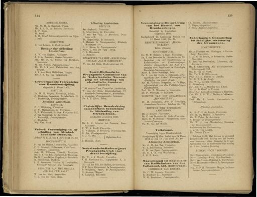 124 125 COMMISSARISSEN . Mr . W . H . de Beaufort , Voorz . Mr . F . J . M . A . Reekers , Secretaris . R . P . Dojes . W . Stork . L . H . Graaf Schimmelpenninck van Nijen- huis . DIRECTEUR . G . van Leusen , te Frederiks-oord . Bestuur der Afdeeling Amsterdam . A . W . van Eeghen , Voorzitter . J . F . de Beaufort , Onder-Voorzitter . Jhr . Mr . N , G . Teding van Berkhout , Secretaris . M . van Notten , Penningmeester . Mr . W . S . J . van Waterschoot van der Gracht . A . J . van Beek Helledoren Haages . Mr . J . E . Th . van Valkenburg . CJerefornieerde Vereeniging voor Drankbestrijding . Opgericht 8 Maart 1900 . BESTUUR . Ds . W . H . Gispen , Voorzitter , Zwolle . J . Minderaa , Secretaris , Ruysdaelkade 21 . C . Buytendijk , Penningmeester . Afdeeling Amsterdam . BESTUUR. P . C . Hildering , Voorzitter . J . W . Marmelstein , 2e Voorzitter . F . J . Welzenbach r lelSecr ., Kerkstraat 237 . J . van Santbrink , 2e Secretaris . O Buitendijk , Penningmeester . J . Minderaa . Mej . Chr . Vonk . Hederl . Vereeniging tot Af . schatting van Alcohol- houdende Dranken . Erkend bij K . S . van 4 April 1844 No . 62 HOOFDBESTUUR . P . van der Mealen , Leeuwarden , Voorzitter . F . U . Schmidt , Hilversum , Vice-Voorz . 3 . Gerhardt , Amsterdam . Arie H . Willemse , Utrecht , Penningm . Mr . D . A . van Eek , Oegstgeest , ie Penningm ,. Ds . M . O vanWijhe , Engelum , 2e Secretaris . M . Hillebrand , Dokkum . J . G . Jansonius , Huizum bij Leeuwarden , Verlengde Schrans , Alg . Secretaris . REDACTIE VAN HET ORGAAN „ DE BLAUWE VAAN ". W . van der Sluis , Amsterdam . ¥. G . van der Veen , idem . Afdeeling Amsterdam BESTUUR . Jan Gerhardt , Voorzitter . G . Schuilwerve , 2e Voorzitter . H . van der Valk , Ie Secretaris , Over- toom 416 . Th . Eygensteijn , 2e Secretaris . J . Harders Ie Penningmeester , Elisabeth Wolffstraat Bin . O A . Groos , 2e Penningmeester . Mevr . G . van der Valk — Drees . C . J . Wansbeek . H . Boender . RÉDACTEUR VAN HET AFDEELINGS - ORGAAN „ SLUIT SCHIEDAM ". W . van der Sluis , Brederodestraat 19 . IVoorrt-HolIniidsclie Propaganda-Cominissie van de Dlederiandiclie Vereeni - ging tot afschaffing van alcoholische dranken . BESTUUR . Y . G . van der Veen , Voorzitter . Amsterdam . W . van der Sluis , Brederodestraat , 19 , Secretaris-Penningmees'.er , Amsterdam . J . Jongejan , Penningmeester , Limmen , Ds . J . L . Klein , Edam . Christelijke Broederkring inzonderheid bedoelende de Afschaffing van Sterken drank . OPGERICHT AU&USTUS 1860 . BESTUUR . Ds . L . O Schuller tot Peursum , Eere- Voorzitter . F . W . A . Korff , Voorzitter . O Willemse , Ie Secretaris , Overtoom 240 . G . Bos , Penningmeester . \ Bij bestuurders . J . Bouman , Bode . IVederlandscheOnderwij zers Propaganda-Club voor drankbestrijding . Th . W . v . d . Woude , Voorzitter . J . H . Varekamp Jz ., Ingogostraat 2 , Ie Secretaris . Ch . van der Bilt , den Helder , 2e Secretaris . H . P . Buys , Heineuoord , Ie Penningmeester . B . Weijkamp , Baarn , 2e Penningmeester . H . Meester , Meppel . A . Langejan , Enschedé . Vereeniging tot Bevordering van het Herstel van Brankzuchtigen . Gevestigd te Amsterdam . Opgericht 1890 . Goedgekeurd bij Koninklijk Besluit van 12 Maart 1891 , No . 35 . HERSTELLINGSOORD „ HOOG-HULLEN ", Eelde ( Drente ). HOOFDBESTUUR. Dr . W . P . Ruijscb , ' sHage , Voorzitter . Dr . J . van Deventer Sz ., Sarphatistraat 78 . Inspecteur van het Staatstoezicht op Krankzinnigen en Krankzinnigenge- stichten , afgevaardigde der Ned . Ver- eeniging voor Psychiatrie en Neurologie , Secretaris-Penningmeester . Mevr . E . Mees-Snethlage , Zeist . Ds . A . van der Heide te Britswerd , Afge- vaardigde der Nederl . Vereeniging tot Afschaffing van alcoh . drank . Mr . H . Goeman Borgesius , te ' s Hage , afgevaardigde van den Volksbond tegen drankmisbruik . Prof . Dr . E . Wiersma , te Groningen . Dr . P . Wieringa , te Zujdlaren . DIRECTIE VAN HET SANATORIUM „ HOOGHULLEN ". Dr . H . Posthumus , Arts , te Groningen , Geneesheer- Directezir . Telefoon No . 783 . BESTUUR DER AFDEELING AMSTERDAM . Dr . J . Kuiper , Voorzitter . Dr . J . van Deventer Sz . Onder - Voorzitter Mevr . G . W . Bouman—Slingenberg , Secre - taresse- P enningm . Th . W . vau der Woude . Volksbond . Vereeniging tegen Drankmisbruik . Goedgekeurd bij Kon . besluit van 24 Maart 1882 en van 19 Juni 1906 No . 90 . Afdeeling Amsterdam . Mr . G . M . den Tex , Voorzitter . W . J . Pekelharing , Secretaris . G . D . van Epen , Penningmeester . Dr . G . A . M . van Wayenburg . , J . II . Z . Koch . Maatschappij tot Exploitatie van Koffiehuizen van den Volksbond , Afd . Amsterdam . COMMISSIE VAN BEHEER . Dr . C . W . Janssen , Voorzitter . E . Brüehner Jr ., Secretaris . W . G . Breukelaar , Penningmeester . Ch . Escher , Administrateur . P , Singer , Inspecteur . J . Smit , Adjunct-Inspecteur . IKederlandsch Genootschap tot zedelijke verbetering der Gevangenen . HOOFDBESTUUR . Mr . A . Fentener van Vlissingen , ' s Graven- hage , Voorzitter . G . A . M . de Bruyn , te Rotterdam , Onder- Voorzitter . E . René van Ouwenaller , Hilversum , Alg . Secretaris . Mr . F . Kranenburg , Alg . Penningmeester . Keizersgracht 253 . Mr . R . van de Werk . Mr . Th . J . B . Hiltermann . Prof . Mr . D . Simons te Utrecht . Mr . G . T . J . de Jongh . Mr . W . L . Luyken Glashorst . L . Roosenburg . Jhr . Mr . W . O Quarles van Uftbrd . Mr . A . de Graaf te Utrecht . Mr . J . N . J . E . Heerkens Thijssen te Haarlem . Jhr . Mr . F . G . W . J ., Backer te's- Graven-hage . Prof . Mr . J . Domela Nieuwenhuis te ' s Gravenhage . Afdeeling Amsterdam . Mr . G . T . J . de Jongh , Voorzitter . Mr . Dr . N . Muller , Ie Secretaris . Mr . E . Polak , 2é Secretaris . . 1 . Broens , Ie Penningmeester . Mr . W . A . van Woudenberg Hamstra , 2e Penningmeester . Ambtenaren ter Reclassecring . G . J . M . van Lingen . Th . Postma Th.zn . Telefoon 5823 . Het bureau is gevestigd Leidschekade 107 . Zitting van het bureau voor mannen : eiken Zaterdag 
