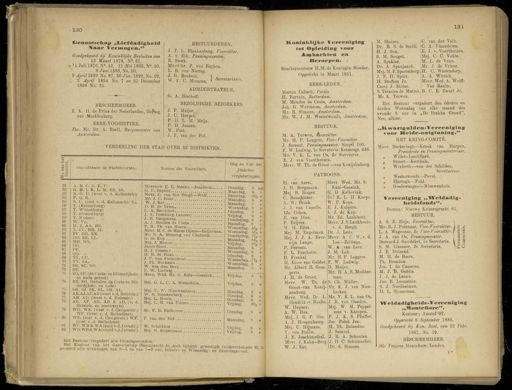 130 131 Koninklijke Vereenigïng tot Opleiding - voort Amoachten en Beroepen . , Beschermvrouw H.M.de Koningin-Moeder . Opgericht in Maart 1851 . EERE-LEDEN . Martin Calisch , Parijs . H . Fortuin , Rotterdam . M . Mendes da Costa , Amsterdam . Joh . G . Wertheim , Amsterdam . Mr . B . Simons , Amsterdam . , Mr . W . J . M . Westerwoudt , Amsterdam . BESTUUR . M . A . Terwen , Voorzitter . Mr . H . P . Loggere , Vice- Voorzitter . J . Samuel , Penningmeester . Singel 100 . F . W . Ludwig , Ie Secretaris . Keizersgr . 436 . Mr . V . K . L . van Os , ie Secretaris . E . J . van Voorthuizen . Mevr . W . Th . de Groot — van Konijnenburg . PATROONS . Genootschap „ liefdadigheid Kaar Vermogen ." Goedgekeurd bij Koninklijke Besluiten van 13 Maart 1874 , N °. 21 , 11 Juli 1876 , N °. 42 , 11 Mei 1883 , N °. 50 , 8 Juni 1886 , No . 10 , 9 April 1889 No . 87 , 30 Jan . 1892 , No . 29 , 2 April 1894 No . 7 e » 21 December 1898 No . 35 . BESCHERMHEER . Z . K . H . de Prins der Nederlanden , Heïtog van Mecklenburg . EERE-VOORZITTER . Jhr . Mr . Dr . A . Röell , Burgemeester can Amsterdam . VERDEELING DER STAD OVER 32 DISTRIKTEN . Dinsdag , Maandag , Zaterdag , Maandag, Maandag , Woensdag , 8 » Dinsdag , 8 » Vrijdag , 8 i > Donderdag , 8 » Maandag , 8 » Woensdag , 4 '/ 4 » Woensdag , 41/2 t Donderdag , 7i / 3 » Maandag , 81/2 » Vrijdag , 8l / 2 » Maandag , 8 » Woensdag , 8 » Dinsdag , 8 » Woensdag , 7i / 2 » Woensdag , 8 » Maandag , 8 > 2 > 8 » 8 » 8 » 8'fe » 8 » 8 > Het Bestuur vergadert alle Dinsdagavonden . Het Kantoor van het Genootschap ( Raamgracht 4 ), doch tijdelijk gevestigd - Gelderschekide W i geopend alle werkdagen van 9-4 en van 7-9 uur , behalve op J Woensdag - en Zateraagavond ' 4 ' S 51 52 sa 54 55 56 57 58 59 60 61 62 63 64 65 66 67 68 69 70 71 72 74 76 77 78 81 82 Omvattende de Stadsbuurten : A . B . C . D . E . F . G . H . I . K . L . M . RR . SS . N . O . U . ( west v . d . Kalkmarkt ) P . Q . R . S . U . ( oost v . d . Kalkmarkt ) Vi . T . ( Kattenburg ) T . Wittenburg ) T . ( Oostenburg ) T . ( Funen ) W . Vu . IJ . Z . AA . BB . X . CC . HH . JJ . FF . GG . KK . DD . EE . LL . MM . NX . OO . PP . QQ . TT . UU . VV . SA . SB . SC . SD . SE . SQ , SF . ( da Costa - enBilderdijkstr . en kade gebeel ) SN . SG . ( behalve da Costa en Bil - derdijkstr . en kade ) SH . SJ . SK . SL . SM . AL . AK.AJ.AC.AB ( west v.d . Helststr .) AH . AD . ( west v . d . Helststr .) AE . AF . AG . AB & AD . ( v . d . Helststr . en oostwaarts ) WG . WE . Cwest v . d . Camperstr .) WF . ( west v . d . Reitzstraat ) WE . ( oost v . d . Camperstr .) WF . ( oost v . d . Reitzstraat ) WC . WB & WA ( zuid v . d . Javastr .) WD . WB & WA(noord v.d . J avastr .) BESTUURDEREN . J . E . L . Blankenberg , Voorzitter . A . v . Eik , Penningmeester . R . Stork . Mr . Chr . P . van Eeghen . L . B . van Nierop . J . G . Beukers , 1 ^ W . F . C . Momma , ' Secretarissen . ADMINISTRATEUR . G . A . Bischoff . BEZOLDIGDE BEZOEKERS . J . P . Meijer . J . C . Herpel . P . H . L . M . Meijs . P . H . Jansen . W . Post . J . F . van der Pol . Namen der Voorzitters , Dag en Uur der Dlstrikt-vergaderingen . Mevrouw E . R . Menko . - Jaoobson G . V . Baptist 2»fe » 8 » Mevr . C . van den Bergh—Wolf .' ".'.'. Mr . J . C . Boas ... W . J . Kat D . H . de Vries ., '.'..'.'.'. C . A . Beudeker !.!!.!:!. J . A . Doesburg Lannooy . J . H . Bergmann A . 1 . Mendes da Costa P . H . Th . van Hoorn .. ". Mevr . M . C . de Marez Oijens-Reijnvaan . Mr . N . A . Mensing van Charante .. . G . de Kup Mej . J . Manus Jacob - Sloot I .!!]]!!" H . J . Cossaa r H . H . de Haan !.!!!!!.' J . P . van Fastenhout J . Ph . Hoekstra '.'.'.'.'. W . van den Berg . F . W . Ludwig '.'.'.'.'.'.'.'.'"".' Vrijdag , Vrijdag , Dinsdag , Dinsdag, Dinsdag , Vrijdag , Dinsdag . Maandag , Vrijdag , Vrijdag , Mevr . Wed . Mr . S . Katz—Geesink .' ! .' '.'. Mej . G . L . C . A . Mirandolle Mej . F . W . Nieuwenkamp . W . ïi . Blankenberg Mej . L . Hoorn .." Mej . L . M . van Tienen ..' Mr . F . B . Enthoven . P . van den Ent W . Schrikker Mej . M . Engelmann . H . van Aarst . J . H . Bergmann . Mej . B . Binger . C . Bossciaieter.A . W . Brink . - I . J . van Capelle . Us . Cohen . E . van Dien . P . Drijver . W . H . Elles . Mej . M . Engelman . Mej . J . J . A . Ever- wijn Lange . P . Ferman . P . L . Feschotte . D . Frenkel . H . Enno van Gelder . Mr . Albert B . Gom- perts . J . H . de Groot . Mevr . W . Th . de Groot-van Konij- nenburg . Mevr . Wed . Dr . L Hendrix- v , Raalte . W . Hepner . A . W . Hes . Mej . J . G . P . Hes . A . J . Hoogenkamp . Mej . O Hijmans . V . van Itallie . J . E . Joachimsthal . Mevr . J . Kalm-Berg W . J . Kat . Mevr . Wed . Mr . S . Katz-Geesink . H . D . Kellevmk . Dr . R . L . H . Koops . W . P . Kops . E . J . Kuipers.L . J . de Kup.Mr . Ed . Lankhont.Mevr . J . S.Lankhout - d . Bergh . Dr . J : Leda " Mevr . A . O W . v . d . Lee — Zeilinga . W . k . van Leer . J . M . Lob . Mr . H . P . Loggere . F . W . Ludwig.D . Meijer . Mr . H . A . E . Modder- man . S . Ch . Muller . Mr . K . J . van Nieu- kerken . Mr . V . K . L . van Os . J . R . van Osselen . Mej . W . M . Peppel- man v . Kampen . P . J . K . S . Pfeiffer . Jos . Polak Jzn . H . Th . Rolandus . J . Samuel . J . R . A . Schouten . J . H . C . Sehumacher . Dr . S . Simons . C . van der Valk . O A . Vlaanderen . E . J . v . Voorthuizen . Mej . O C . Voute . M ; L . de Vries . Mr . J . de Vrieze . H . O Westendorp . A . A . Wittich . Mevr . Wed . A . Wolff - Van Raalte . B . O E . Zwart Jr . M . Sluizer . Dr . B . S . de Smitt . H . J . Son . S . M . Souget . A . Spakier . Dr . A . Spanjaard . Mej . M . F . Sparenberg . J . F . E : Spier . H . Stoffers Jr . Carel J . Ströer . S . Teixeirade Mattos . Ms . A . Terwen . Het Bestuur vergadert den éérsten en derden Woensdag van elke maand des avonds 8 uur in „ De Brakke Grond ", Nes , alhier . „ Hwartgulden-Vereeniging voor Heide-ontginning -." HET KRING-COMITÉ . Mevr . Beckeringh 