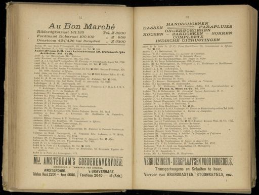 Gebruik tekstcoördinaten Transcriptie 33 HANDSCHOENEN A.u Bon Marehé Bilderdijkstraat 1311135 Tel . Z 3200 Ferdinand Bolstraat 100,102 „ Z 959 Overtoom 424/426 hoek Siaringsfraat „ Z 3300 Ancum ( W . van ) Korte Prinsengracht , 28 . Schoenmaker . Andel Kantzoon ( J . C . van ) van Baerlcstraat , 44 Tel 35 949 A "^ fc Te "' ÏSJL **"^-*^ 59 ' ™**«* H #*. Andel ( K . van ) Marnixstraat , 354 . Makelaar . Andel ^ Koenraad van ) Prinsengracht , 463 . Tel . 7084 . Andel ( A J . J van den ) Weteringschans , 99 . Werktuig - en Seheepsbouwk . Expert Tel . 2792 Andel ( Mq . A . E . van den ) Roemer Visscherstraat , 32 . Tel . 35 3626 Andel ( G . G . van den ) da Costastraat , 34 . And T f'^"s ™^ B0eme " yïsscherstraat , 32 f Tel . 35 3626 . Kantoor Prinsengr ., 476 . iel . dböh . Makelaar in Effecten . Andel ( Johs . van.den ) Roemer Visscherstraat , 32 . Tel . 35 3626 . Kantoor Rokin , 65 - 67 lel . Mill . Makelaar in Assurantiën en Schepen . Andel Jr . ( J . H . van den ) Roemer Visscherstraat , 32 . Makelaar . Tel 35 3626 Andel en Praetorms ( van den ) Rokin , 65-67 . In Assurantiën . Tel 9477 Anderheggen ( A . F . H .) Lauriergracht , 107 . Anderheggen ( Firma Frans ) Kant . Lauriergracht , 107 . Firmanten A . F . H . en I . J M ' J 14 . Anderheggen . Sloomkoffiepellerij . Tel 141 Anderiesen ( Wed . H . F .) da Costakade , 37 . Anderiessen ( H .) Bloemstraat , 42 . Tapper en Slijter . Andersen ( C .) Pieter Vlamingstraat , 28 . Photograaf . Andersen Jr . ( J .) Nicolaas Beetsstraat , 47 . Andersen ( L . H .) Javastraat , 94 . Andersen , ( P . J .) Staringstraat , 50 . Andersen ( S . L .) 2e Atjehstraat , 68 . Huis . Kantoorbediende . Andersen ( W . H .) Westerstraat , 240 . Bode . Andersen en Polak Kerkstraat , 321 . Eleetro-Teehnisch Bureau . Tel . 6556 TeT2494 . ZOOn ^ ^ Kerkstraat > 132 - Boekbinders in ' Linieerden >. Anderson Miltner ( Dames ) P . C . Hooftstraat , 31 Anderson ( Edw ) van Breestraat , 159 . Commissionair in Effecten . Anderson ( H . J .) Bosboom-Toussaintstraat , 51 Anderson ( I . C . J .) Bilderdijkstraat , 43 . AUde S^i 2 ;^ 0n3tant ,> Htti « ensstraat > 36 - X<**«r * berende Goederenen Anderson en Brink Heerengracht , 140 . Firrpanten Edw . Anderson , A . W Brink Commissionairs in EJëcten . Tel . 5754 . x»m *. Andersson ( W . F .) Deymanstraat , 2 . Timmerman en Aannemer . Tel 25 3744 Andrau en Co . Rokin , 24—26 . Wijnhandelaren . Tel . 7453 . Andre ( F . J .) l e Leliedwarsstraat , 5 . André de la Porte ( C .) Koningslaan , 30 . Tel . 35 1572 ^ Artillerie . ^ ^ ^ ^ ?™ ™ Mie ™ stra * t . 82 . Bovenhuis . Kapitein der André de la Porte ( J .) Keizersgracht , 473 . I - ju ? umi niHUif nm DIRECTEUR : C . TAMMINGA VAN EYSINGA AMSTERDAM . I ' s GRAVENHAGE Telefoon Noord 2201 - Hoord4686 . j Telefoon 2040 — 16 ( Sch .) DASSEN JPARAFLUIES ONOEJRGOEDEREN KOUSEN - ZAKDOEKEN - SOKKEN COMPLEETE INDISCHE UITRUSTINGEN André de la Porte Jr . ( P . C .) Prins Hendriklaan , 16 . Commissionair in Effecten . Tel . 35 243 . Andrea ( C . F .) Madurastraat , 18 . Andreae ( M . O .) Ceintuurbaan , 11 . Agentuur en Commissie . < . Andreae ( Rud .) Mariniersplein , 26 . In Koloniale Waren . Andreasson ( C . E .) Haarlemmerstraat , 150 . Tapper en Slijter . Andrée ( G . E .) Lange Leidschedwarsstraat , 206 . Graveur . Andrée ( H . A .) Weteringstraat , 16 . Werkplaats id . 21 . Houtdraaier en Beeldhouwer . Andrée ( J .) 2e Boerhaavestraat , 14 . Andreoli ( A . J . M .) Leidscheplein , 1 . Andreoli ( A . P . J .) Ceintuurbaan , 322 . Makelaar . Andreoli ( J . J . A .) Reguliersdwarsstraat , 9 . Schoorsteenveger . Andreson ( D .) van Breestraat , 180a . Andreson ( I .) van Breestraat 96 . Boven . Andries ( E .) Kantoor : Heerengracht , 565 . Advocaat en Procureur . Andries ( H .) Laurierstraat , 48 . Schavenmaker . Andries ( J . N .) Middenweg , 167 . Kantoor : Rokin , 113 . Sigarenhandelaar en Importeur . Firma A . Koos en Co . Tel . 7029 . Andries ( Th .) 3e Helmersstraat , 36 . Accountant . Leeraar Boekhouden M . 0 . Andries ( W .) Camperstraat , 26 . Bierhuishouder . Andriese ( J . G .) van Baerlestraat , 24 . Laarzenmaker . Andriese ( J . G .) Kerkstraat , 139 . Timmerman en Wakelaar . , Andriese ( Petrus ) Bloemgracht , 101 . Laarzenmaker . Andriese ( W . L .) le Hugo de Grpotstraat , 31 . Andriesse ( A .) Prins Hencfrildaan , 9 . Tel . 35 674 . Andriesse en Zonen ( D . L .) O.Z . Voorburgw ., ST.ffeeren - en ' Kinderkleeding enGros . Tel . 1498 . Andriesse ( G . J .) le Leliedwarsstraat , 4 . Barbier en Aanspreker . Andriesse Jr . ( G . J .) Ceintuurbaan , 49 . Andriesse ( Wed . H .) Ruysdaelkade , 79 . Andriesse lz . ( K .) Plantage Kerklaan , 16 . Tel . 7797 . Andriesse ( Leo J .) Vondelstraat , 9 . Tel . 35 2648 . Kantoor : Kromme Waal , 25 . Tel . 1727 . Andriesse ( R .) Ruyschstraat , 121 . Gemeente-Ambtenaar . Andriessen ( C . A .) Utreehtschestraat , 64 . Onderwijzer . Andriessen ( C . H .) van Ostadestraat , 107 «. Letterzetter . . Andriessen ( Erneste ) Korte TJiezel , 1 . labrik . v . Raarwerlcen . Andriessen ( H .) Jongeroelensteeg , 4 . Schilder . In Drogerijen en Ver/maren . Andriessen ( M . G . H .) van Breestraat , 86 . Andriessen ( P . J .) Ceintuurbaan , 402 . Transportwagens en Schuiten te huur . Vervoer van BRANDKASTEN , STOOMKETELS , enz . Andriessen ( Th . E .) Oudebrugsteeg , 2 . Kapper en Haarwerker . Andriessen ( Th . F . 1 E .) Leidschestraat , S3 . Boekhandelaar . Tel . 9787 . Andriessen ( Wed . Z .) Jacob van Campenstraat , 58 . Melkslijterij . Andringa ( G . J .) Gerard Doustraat , 244 . Andrist ( J . D .) Nassaukade , 5 . Anema ( Mr . A .) Valeriusplein , 28 . Hoogleeraar .