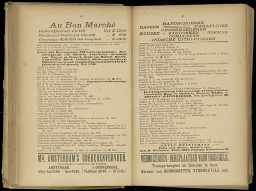 Gebruik tekstcoördinaten Transcriptie 40 41 Jk.u Bon Marché Bilderdijkstraat 131/135 Tel Z 3200 Ferdinand ^ Bolstraat 100/102 „ Z 959 Overtoom 4241426 hoak Siaringstraat „ Z 3300 Aries ( H .) Keizersgracht , 263 . In Bieren , Wijnen en Gedistilleerd . Tel . 3099 . Aries ( Hi S .) Kerkstraat , 3 . Schoenmaker . Aring ( H . F .) Lindengraeht , 136 . In Brandstoffen . Arioui ( JT .) Heerengracht , 8 S3 b/d Leidschegraclit . Jflon- stennagasijn van Ouitsche Fabrikaten uitsluitend voor Engros en Export . Jtgent van JBuitenl . MÉuizen , Galanteriën , Mfuish , Artikelen , Mtinderspeelgoederen , ( Offerten voor groote consumenten van alle jDVMTSCHE , fabrikaten ten dienste ). Tel . 1393 . Arioui ( L .) Singel , 305 . Aris ( J .) Mariniersplein , 4 . Onderwijzer . Aris Dzn . ( Wed . J .) Heerengracht , 79 . Aris ( Th . W .) Celebesstraat , 66 . Ark ( A . B . van ) Czaar Peterstraat , 40 . Ark ( A . H . van ) van Ostadestraat , 482 . Loodgieter en Zinkwerker . Tel . 25 2158 . Ark Jr . ( J . van ) van Oldenbarneveldtkade , 5 . BegrafeniS'Onderneming . Ark ( J . E . van ) Kattenburgerplein , 1 . Timmerman . Ark Jr . ( J . W . L . van ) Dufaystraat , 11 . Kapper . Ark ( M . H . van ) Pontanusstraat , 3 . Schilder . Arkel ( A . van ) Spuistraat , 85 . Part . Verpleegster , i Arkel ( Chr . van ) Borgerstraat , 242 . Broodiakleer . Arkel ( G . van ) Damrak , 80—81 . Architect . Tel . 4468 . Arkel ( Jan van ) Spuistraat , 85 . Werkpl .: N . Nieuwstraat , 32 . Schilder . Arkel Jr . ( Jan van ) Frederik Hendrikplantsoen , 80 . Arkel ( M . Louise van ) Spuistraat , 85 . Gedipl . Ziekenverpleegster . Arkenbout ( D .) Vinkenstraat , 86 . Arkenou ( H .) Achterburgwal , 165 . Commissionair . Arkes ( Wed . Joh . J .) Singel , 350 . Armee ( A . B .) Bilderdijkstraat , 50 . Armee ( C . H .) Leidschekruisstraat , 13 . Armenhuis Roetersstraat , 2 . Tel . 1529 . Directie en Administratie . Tel . 1472 . Armenkantoor ( R . C . Oude ) Keizersgracht , 384 . Arnaud ( P . E . d ') Frans van Mierisstraat , 89 . Gemeente-Ambtenaar . Arnaud en Averes ( d ') Keizersgracht , 573—575 . Commissionairs in Effecten . Tel . 2117 . Arnaud en Comp . ( d ') P . H . Kade , 125 . Cargadoors , Expediteurs en Assurantiebesorgers . Tel . 1629 . Arnett en Co . Prins Hendrikkade , 136 . Stevedores . Tel . 8092 . Arnhemsche Hypotheekbank voor Nederland . Spui 23/27 , ingang Handboogstr . Tel . 1355 . Arnhemsche Import Company . Bijkantoor voor Export Pretoriusstraat , 46 . Arnhemsche Petroleum-Maatsehappij . Singel , 429-435 . Arnhemsche Verzekering-Maatscn . tegen Brandschade . Keizersgracht , 473 . Arnhemsche Verzekering-Maatseh . Afd . Inbraak-Verzekering . Keizersgracht , 305—309 . Tel . 466 en 6981 . Arnold ( C . D . Th . J .) Kinkerstraat , 3 . Slijter in Gedistilleerd . Tel . ' f . 2848 . GOEDERENVERVOER . DIRECTEUR : C . TAMMINGA VAN EYSINGA . ' s GRAVENHAGE . Telefoon 2040 — 16 ( Sch .) AMSTERDAM . Telefoon Noord 2201 - Hoera " 4686 . HANDSCHOENEN DASSEN PA.RA.PLUIES ONDERGOEDEREN KOUSEN - ZAKDOEKEN - SOKKEN COMPDEETE -IN DISCHE UITRUSTINGE N Arnold ( Dames ) Marnixstraat , 380 . Arnold ( H . G .) Ferdinand Bolstraat , 9 . Arnold ( J . C .) 2e Jan van der Heijdenstraat , 8 . _ iZia ( frK e SSir 3 . tSX » **** *■ *»> *** Rotterdam . Tel . Va 2848 . Arnoldi ( A .) Jacob van Campenstraat , 92 . Schoenmaker . Arnold ! ( S5SSm « 1 ' ««« der Registratie en Domeinen , Ze divisie . Arnoldi ( J . H .) Kuiperstraat , 98 b . Portier Gemeente-Waterleiding . Arnoldi ( W . J .) Sarphatipark , 1 . Kapper . ' ,- i„i „„ t„i 9RSS Arnolds & Co Plantage Franschelaan , 15 . Fabriek van VerhchtingsarhkeUn Tel 2638 . Arnolds en Co . Regufiersbreestraat , 3 . Gasornamenten , Simplexlampen , Lampekappen . Tel . 4937 . m , Arnoldus ( J . J .) van Ostadestraat , 363 . Kleedermaker . Arnoldus ( J . Th .) van Ostadestraat , 89 . Arnout de Calavon ( H . Th .) Sumatrastraat , 1 . Ie Etage.Arnouts ( G .) Ie Helmersstraat , 245 . ■ trntzeniwafelbakker ( Marie E .) Frederik Hendnkplantsoen >. 9 fl 6 ^"™£ stieI , I n,i.l.lins onderwijs in Stem vorming , Ademgyi.nast.ek , Voordraclit , 5Ran « en Opleiding Tooneel . MARIE E . ARNTKEN-WAEEI.BAIiliER , Fred . Hendrikplantsoen 9e . Arntzen ( M . J .) Spiegelgracht , 11 . Behanger . Arntzen ( P H .) Frederik Hendrikplantsoen , 96 . Boekhouder . Arntzen ( W .) Jacob van Lennepkade , 41 . Ie Etage . Ma/celaar Arntzenius ( R . H .) Frans v . Mierisstr ., 133 . Tel . 5 « 975 . Kant . : Smgel , 44 . Tel . 2391 . Arom ( N J . van ) Govert Flinckstraat , 124 . In Aardappelen . „ Aroma ", Stoom-Essencenfabriek . Prinseneiland , 93 . Tel . 4404 . Arondéus ( H . C .) Firma J . Leeger . N . Z Voorburgwal , 170 ^ Arondéus Jr . ( H . O ) N . Z . Voorburgwal . 170 . In Brandstofen . Tel . 5581 . Arons ( J.ï Mauritsstraat , 4 . Arts . Tel . 8855 . Arons ( J .) Blasiusstraat , 73—75 . Arons ( S .) Nieuwe Kerkstraat , 99 . iWelkslijier . Aronson ( M .) Prinsengracht , 390 . Transportwagens en Schuiten te huur . Vervoer van BRANDKASTEN , STOOMKETELS , enz . Aronson-Falkenburg ( N .) Ruyschstraat , 14 . Dameskleedermaakster . Arp ( J .) Spiegelgracht , 12 . Schilder . Arp Jzn . ( Theod .) Haarlemmerstraat , 20 . Barbier . Arpels ( P .) Nieuwe Kerkstraat , 46 . In Kappers fournüur en . Arps ( J .) Oostenburgergraeht , 9 . Ververij en Drukkerij . Arti , Inrichting tot het restanreeren van Schilderijen . Overtoom , ÓÓJ . Arti et Amicitiae , ( Maatschappij van Beeldende Kunsten ) Rokm , 11 A lel . ó^é . _:_ „ ART IS " RESTAURANT . — .— Zalen voor Diners , Soiree's , enz . Jolt . H . Willemsen . Telef . 3«3Ï . Plantage Middenlaan 31 .