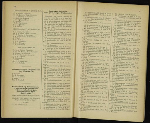 60 • 39'-Rogge ^ atr \ at8 ' idom H j H KakLetf *""** 107 ' idem M - * 40 . Zeeburgerdijk 84 , idem J.F . Broers . M W . slbd arneTeld9tmt 64 > H «» 42 . Ie Nassaustraat 7 , idem 46 . Roggeveenstraat 6 , idem L . Nooter J9 . Plantage Do H ; anl4!- rd^K 8 n Hoog.an " a,ltage DM ^ 16 < *** § j F.B ^. enWe Achter ^^ 121 . idem Ravenstraat 1 , idem . H . van Es . da Costestraat 36 , idem J . Broekens . 55 t , Go3 , tasW 38 > idem J . Kuipers . 55 . Spaarndammerstraat 62 , id . H.Smit Grlm e an BNzr e8traat 49 ' idem N " B -' . AS . Witten8tmt 2B ' idemF - van idem ' o ^ Wi f tenbDr g«dwarsstraat 78 , mem tJ . Krenmng . ' m o a ° ? aIlstraat . 8 *. idem J . Faber 6a 3e Wittenburgerdwarsstr . 76 , idem •>. W . Hogewina . 62 ' wS^t ^' idel » A . Prakken . b2 . Balistraat 50 , idem C . Zeeman 64 f ° ë ^ lT na ^ r m ' id - M - J - Bleker . 64 . de Wittenstraat 27 , idem H . Gras denHocl teeD8traatl9 ' idemP - v '' n " Hartgriuk StenbUr8er8traat 436 ' idem J - W - 68 ' Nl nde T'f h t?S 2 ' idem P - A - Diels , ide 6 m 8 ' H N Tj ! d 1.1ctoï nker8tr!lat342a ' 69 Hortusplantsoen 2 , id . C . van Doorne . 70 . Havikslaan 86 , idem A . Dcggeler . 3.1:stt s :- LeMe l , 8traat 22 *> idem nv£j*~P*L 4 ' idem L - deVries - renbeek . SRr 7 °' idem C " W - KIa " 74 . van Beuningenstraat 141 , idem 3 üagenaar . f • - 76 . van Neckatraat 2 , idem W . H . ten Seldam . " 2e v . Swïndenstraat , 108 , idem JAiazmga .- Govert Flinckstraat 64 , idem J.HA . van Luyjtelaar . Kattenburgerkade 38/39 , idem W Miynenburs . ' !?■•. ARRONDISSEMENT VI ( Zuidelijk deel C . M . Robert , Voorzitter . G . Schnijlenbürg , Onder-Voorzitter F . U . Schmidt , Ie Secretaria . G . Muijs , Ze Secretaris . . 3 . H . J.^Cwme . Meijer . • P . Buwalda . W . H . Eygeiihuyscn . G . S . A.JBakker . J . J . Capelle . ARR0NDISSEMENT;VI ( Noordelijk deel . A . J . Brunt , Voorzitter . Th . J . de Groot , Onder-Voorzitter . W . F . Eggelte , Ie Secretaris . ''"•'!, 3 . A . Wagenvoorde , 2e Secretaris . E . Weber . K . van Dalfsen . J . G . C . Machielse . A . J . v . Wichen . C . A . Kóttelbrink . ARRONDISSEMENT VII . Dr . S . A . Norden , Voorzitter . P . van der Hoeven , Onder-Voorzitter . M . Ringers , Ie Secretaris . N . J . Hoeflamer , 2e Secretaris . 3 . B . W . Koelman . H . Lanfermeijer . J . Candel . Mr . P . F . Swagerman . F . A . Gertenbach . Gemeentelijke Inspectie van liet Onderwijs . J . de Vries . Dr . J . Bergmans . Mr . A . J . Ketelaar . J . Faber . Mej . E . Groothoff . Leerschool l»ij de Gemeente- Hweekscliool voor Onder- wijzers en Onderwij ze-r- esse n 1 » ij het Lager Onderwijs . Nieuwe Kerkstraat hig de Manegestraat 108 . Schoolgeld : ( Zie scholen voor Uitgebreid Lager Onderwijs der Ie klasse ). HOOFD . Th , van der Velden Jr . Openbare Scholen voor yew . Lager Onderwijs . Schoolgeld van iederen leerling 20 cent ; van ieder der twee of meer leer- I lingeu uit één gezin 16 cent per week ; van de minvermogenden van iederen leer- ling 6 , 8 , 12 of 16 cent per week . De inschrijving kan geschieden dagelijks van 9 tot 3.80 , Singel 453 , des Zaterdags van 9 tot 1 nur . N °. ]. 3e Wittenburgerdwarsstraat 1 ,' hoofd T . Kooistra . Valkenbnrgerstr . 3 . idem A . Brands . Looiersgr . 19 , idem S . Th . Minnema . ' 4 . Zwanenburgerstraat 25 , idem S . de Vries . Passeerdersgracht23,idemS . Heringa . Anjeliersstraat 85 , idem G . van derHoeven . van Oldenbarneveldtkade 12 , idem A . J . W ; Brugman . Planciusstraat 20 , idem J . Wolthuis . Spuistraat by de Wijdesteeg 239 , id . M . H . van Leeuwen . Rapenburgerstraat 6 , idem P . B . Moll . Valckenierstraat 39 , idem J . E . Riet- bergen . Marnixkade 73,id . J . A . v.Roosendaal . de Wittenstraat 29 , idem G . J . Asjes . Jodenhreestraat 74 , idem C . J . vanGoethem . Willemsstraat 188 , id . P . den Hol- lander . Nieuwe Kerkstraat 122 , idem J . S.Wesselink . van Ostadestraat 203 , idem R . Kiestra . Binnenkant 39 , idem F . D . Schmidt . Laurierstraat 107 , id . M.L.deKeyser . Koestraat 5 , idem F . J . Bergman . Palmg'rach't 74 , idem J . vanderHage . Nieuwe Looiersstraat 49 , idem A . P.de Wild . Utreohtschedwarsstraat 30 , idem Bilderdijkkade 61 , hoofd H . Deelman . Anjeliersstraat 155 , id . J . Postuma . ' Egelantiersstr . 244 , idem J.Veenbaas . Groote Wittenburgerstraat 39 , idemE . J . Blekkink . van Hallstraat 82 , id . J.B . Rodenburg . Marnixstraat 168 , id . T . Bouwer . 80 . van Oldenbarneveldtkade 14 , idem J . Blomberg . Zeeburgerdijk 23 , idem A . Vroom . Passeerdersgr . 25 , idem J . F . Stubbe . Krajjenhoffstraat 4 , idem L . J . van . Splnnter . Zandstraal 19 , idem J . Traast . 85 . Krajjenhoffstraat 6 , id . P . Lagerwey . Zeeburgerdijk 21 , idem H . 3 . Bon . Batavierstraat 48 , idem . B . J . DikkeH . 61 80 ' M m 4 P ' ldem P - ™*- 80 . Marmxstraat 170 , idem G . Werdes Postma ^ abUrgei ' 8traatl03 / 10 ^^ H : 2eNassau8tr 8 , idem J . Noordewier . Zeeburgerdijk 112 , idem J . A . Burk 9 A.So"t Hendrik8traat 83 ' idem G.lm ^" ?"**"»* 81 . idem 87 . 2eNassaustraït24 , id . A . Zuiderveld . 89 ITT - raat ' idem M - de Jong . 90 . OudeSchans41 , id . A . C.Burgersdiik 92'G ^ Id ^ 66 ' idemD -^~ idenfs T n * Tan Aem8 telstraat 16 , « tem ö . J . Brooymans . Oudheu . 2 den SOllinkel8traat 84 ' idem P - '• 95 ' ^ T ^* 21 > id - J - Ta » d #; Fredenksstraat 18a t idem J . Lous Jr Sparrenweg 11 , idem H . F . Meiist WP'.Va"uTurï nbnrgel ' 8tra8t52 ' idL ÏOÓ 3 ^ 8461 ?" 118 *'' 197 ' idem H - Broere . J . HpK Iaagend ^ aa ' 44 , idem 102 ' ^ te n < ? P i ein U ' idem A - Smit . l \ nl ' ^"„ Oftotetraat 49 , idem .. uu ^^^« Plantsoen 1 , idem . Lindeboom . BOel ' IlaaVe8traat 8 °' ^ | Westeling y8daelStelat 65 > id6m H - J - Nova Zemblastraat 90 , idem . . Zeeburgerdp 25 , id . J . J.Eckmann '. 1 2 i mde ,, g r » cll t 93 , id . C . Polderman . 112 . Blankenstraat , 76 , idem A . F . Reek ülehake dengraCllt 2 °°' iiem \^ * 115 ' un aatl f ^°' idei » H.H . Dekker , j A/^St/aatfn .' 66 ^^' 8 ^ 109 ^ ide^P^TN ^ 0 