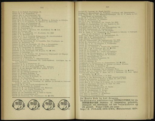 Gebruik tekstcoördinaten Transcriptie 566 567 Hanzon ( J . J .) Frederik Hendrikstraat , 98 . Hanzon ( W . J . E .) Ruysdaelkade , 67 . Haperen ( Mej . A . van ) Kinkerstraat , 390 . Haperen ( G . J > van ) Frans Halsstraat , 94 . Haperen ( Th . W . van ) Czaar Peterstraatj«60 . Happé ( Henri H .) Heerengracht , 495-437 . Makelaar in Bontwerken en Pelterijen . Happé ( W . F . C .) 2e Atjehstraat , 19 . Fabrikant van Sluiterwerken . Happée ( B .) Jacob van Campenstraat , 42 . Happée ( D .) Johannes Verhulststraat , 144 . Happée ( J .) Ceintuurbaan , 218 . Muziekmeester . Happée ( P .) Pretoriusplein , 2 . Happel ( Firma Wed . C .) - Overtoom , 539 . Broodbakkerij . Tel . SE 5147 . • Happel ( D .) Overtoom , 539 . Happel ( Fred . C .) Nieuwendjjk , 117 . Broodbakker . Tel . 6026 Happel ( F . G .) Binnenkant , 47 . Happel ( Jan J . F .) Ie Constanten Huijgensstraat , 33 . Luxe-Broodbakkerij . Happel ( P . A .) Albert Cuijpstraat , 198 . Behanger . Harbecke ( W .) Spaarndammerstra&t , 17 . Harbers ( G . fl .) Laurierstraat , 93 . In Comestibles , Fijne Vleeschwaren , enz . Harberts ( H .) Kanaalstraat , 132 . Harberts ( J .) Jacob van Lennepkade , 128 . Buis - en Sieraadschilder . Harberts ( Jacob ) Marnixstraat , 297 . Huis - en Decordtieschilder . Harcksen ( A .) Ceintuurbaan , 85 . Ambtenaar . Harde ( H . D . de ) Molenpad , 18 . Schoenmaker . ■ Hardebeck ( J .) Jan Luykenstraat , 102 . Koopman . Tel . SE 5607 . Hardeman ( J .) Retiefstraat , 31 . Hardeman ( L . J .) van Woustraat , 153 . Buitengewoon Geëmployeerde bjd Telegrafie . Hardenberg ( A .) 3e Oosterparkstraat , 234 . *. . Hardenberg ( C .) Bolgerstraat , 41 . Hardenberg ( E . J .) Krugerpleiu , 5 . Rijks-Deurwaarder . Hardenberg ( J . J . C .) Linnaeusstraat , 121 . ( Ooster-Gasfabriek ). Civiel-Ingen . Ing . der Gem.Gas/abrieken . Hardenberg ( J . N .) Ie Schinkelstraat , 39 . « iftst'-i Hardenberg ( W : F .) N . Z , Kolk , 14 . Koopman . Hardendorf ( J . M .) Korte Prinsengracht , 40 . Gep . Ambtenaar . Harder ( J . H .) van Breestraat , 132 . Boven . Leeraar O . H . S . Harder . ( M .) Sluisstraat , 27 . Harder ( R .) van Oldenbarneveldtstraal , 92 . Harders ( J .) Elisabeth Wolffstraat , 6 . Harders ( J . H .) Rustenbürgerstraat , 223 . I Harders ( Wed . M .) Hugo de Grootkade , 15 . Harders ( N . H .) Ruyschstraat , 91 . Harderwijk ( A . W . van ) Ie Atjehstraat , 138 . 3e Etage . Musicus . Harderwijk ( J . van ) 2e Jan Steenstraat , 97 . Makelaar in Boerende en Onroerende Goederen , Assurantiën . Harderwijk ( W . G . van ) Cornells Antoniszstraat , 88 . Hardes ( W .) Noorderstraat , 58 . Goudsmid . Hardeveld ( F . H . van ) Rustenbürgerstraat , 272 . Timmerman . Hardeveld ( J . M . van ) Cornelis Trooststraat , 85 . Hardeveld ( Th . van ) Cornelis Trooststraat , 85 . Harding ( B .) van Ostadestraat , 407 . In Tabak en Sigaren . Harding ( B .) 2e Oosterparkstraat , 237 . Hardorff ( H .) Kinkerstraat , 101 . Vleeschhouwer . Tel . SE 5334 . Hardorff ( IJ .) Veerstraat , . 54 . Bouwk.-Opzichter . ■ .' V A i k .„ ., , „ Hardsteen ( C .) Reinwardtstraat , 74 . Werkplaats : Vrolikstraat , 485 . Rylmelhersteller y . Hardy Patent Piek Co . Ltd . Mijnbouwgereedschappeu . Dir . N . V . Geveke & Co s Techn.-Bureau , de Ruyterkade , 113 . Hardijk ( W . J . van ) Reinwardtstraat , 120 . Hardijzer ( P .) Kuiperstraat , 70 . Melkslyter . Hare ( S . P . van ) Vaartstraat , 60 . Haremaker ( A . L .) Keizersgracht , 278 . Notaris . Tel . 6823 . Haremaker ( L .) Koninginneweg , 101 .- Gep . Kapitein ter ^ Zee . Haren Noman ( van ) zie Noman ( van Haren ). HarencarspelJunius ( Wed . M . E . van ) Willemsparkweg , 144 . Harff ( Chf .) Hasebroekstraat , 66 . Diamanibewerker . Harff ( F . H .) van Boetzelaerstraat , 20 . Broodbakker . Harff Jr . ( Firma G . A .) Weesperzijde , 54 . Houtzagerij en Schaveru : Ie Oosterparkstraat , 14—16 . Bonthandel . Tel . SE 2064 . ' Harger — Uden Masman ( Wed . A . G .) Stadhouderskade , 61 . Harger ( Mej . L . F .) Stadhouderskade , 61 . Leerares . Harger ( Marinus ) Willémsparkweg , 117 . Harig ( Ch .) Warmoesstraat , 139 . Koffiehuishouder . Tel . 3369 . Harinok ( B .) Ceintuurbaan , 67 . In Huishoudelijke Artikelen . ■ Harinck ( Mej . A . W .) van Hallstraat , 6 . Verloskundige . Harinck ( H .) Molukkenstraat , 56 . Harinck ( M .) van Hallstraat , 6 . Beambte Gem . Gasfabriek . Haring ( Mej . C . M . J .) Overtoom , 491 . Tel . SE 6128 . Haring ( H . J .) Weesperzijde , 131 . Timmerman . Haring ( J .) da Costakade , 91a . Leeraar Schoonschrijven : ■ Haring ( J .) van Heemskerckstraat , 1 . In Brandstoffen . Haring ( Jae . F .) Plantage Middenlaan , 35 . Boekhouder . Haring ( L .) Rapenburgerstraat , 74 . Haring ( L .) Joan Melchior Kemperstraat , 54 . Haring ( N .) Zwanenburgwal , 19 . ; . Haring ( P .) Delistraat . 48 .,.•■■•■ • . Haringhuizen ( A .) Hemonystraat , 51 . Varkensslachter , lel . SE 35.M . Haringman ( G . , A .) St . Luciënsteeg , 27 . Directeur v/h , Burger Weeshuis . HaringmanPooi ( Wed . S .) Retiefstraat , 83 .-." .; Harings ( J . J . C . K .) Keizersstraat , 7 . Rijwielhandel . Haringsma ( R .) de Wittenstraat , 159 . In Koloniale Waren . Harink ( P . den ) van Ostadestraat , 279 . Loodgieter en Zinkwerker . Tel . SE 6094 . Harinima thoe Slooten ( Mr . A . Baron van ) P . C . Hooftstraat , 178 . Subst . Officier ' van Justitie . Tel . SE 787 . Harkamp ( T .) Jan Bernardusstraat , 4 . 3e Etage . Harkei ( H . G . ten ) Meeuwenlaan , 45 . Ie Etage . Gemeente-Ambtenaar . I Harkema-(G .) Kuipersteeg , 1 . Makelaar in Tabak . Tel . 408 en 9127 . Harken ( J . O .) Frans van Mierisstraat , 106 : Harkes ( Wed . P . D .) Ie Hugo de Grootstraat , 28 . In Grutlersicaren . Harlaar ( A .) Haarlemmer Houttuinen , 58 . Stnid . Tel . 7643 . I Harlaar ( J .) Egelantiersgracht , 192 .• -,.*: Harlaar & Zonen ( J . L .) Marnixkade , 64 . Smeden . Harlaar ( P .) Ie Leliedwarsstraat,15 , Smid . Harlem ( H .) Houtmanstraat , 15 . Reiziger . Harlem Jr . ( H . A .) Ha