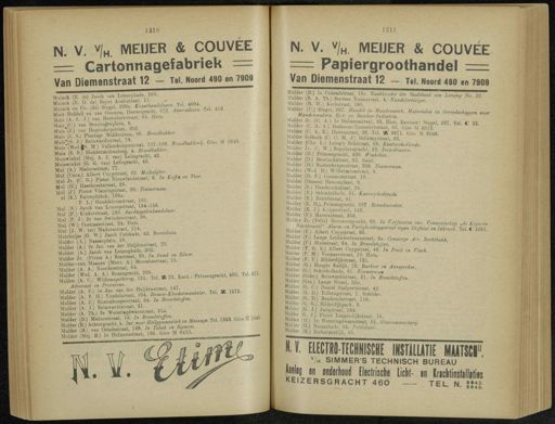 1210 1211 N . V . V MEIJER & COUVÉE — Cartontiagefabriek = Va n Diemenstraat 12 - Tel . Noord 490 en 7909 Muinck ( E . de ) Jacob van Muis ( A . K •!■) van Boetalaérstraat , 65 . Huis . Muis ( O .) van Beuiiiiigenplein , 8 . SfK;S d S2a5 . Broodbakker . Sï^^^rSSaA ™». 107-m W^W . Giro M , 0,0 . . MX S . S .) Moddermolensteeg , 4 . BrnfèaUer . Muiswinkel ( Mej . A . J . van ) leliegracht , 42 . Muiswinkel ( G . G . van ) Leliegracht , 42 . Mnl ( A .) Madurastraat , 77- ■ MnnCom .) Albert Cuypstraat , 22 . Melkslyter Mul Jr ( C . G .) Pieter Nieuwl'andstraat , 6 . Ia K >£» «• »«• Mul ( H .) Hasebroekstraat , 28 . " nl ( J ') Pieter Vlamingstraat , 89 . Timmerman . ui ( K .) Entrepotdok , 109 «. ; P . L .) Goudsbloemstraat , lol . Mul ( N .) Jacob van Lennepstraat , 154-156 . Mul ( P .) Kinkerstraat , 105 . Aardappelenhandelaa , . Mul ( P - J -) 2e van Swindenstraat , 98 . Mul ( W .) Oostzaanstiaat , 24 . Huis . Mul ( 3 W . ter ) Madurastraat , 114 . . Mrichuijse ( G . W .) Jacob Catskade , 42 . Bo.enhms . Mulder ( A .) Nassauplein , 10 . ^• 5 < Mulder ( A -) 2 « '» van d <" W » 8 *™ 4 , 70 " SB £>:$& I ) ïïïsrsb.'S *- «~- M^dex-van Maanen ( Mevr . A .) Moreelsestraat , 15 . Mulder ( A . A .) Noorderstraat , 64 . Mulder ( Wed . AA .) »"«^\' 8 f ^ K 70 Kant .: Prinsengracht , 460 . Tel . 371 . MüldeT ( A . C .) Willemsparkweg , lól . lei . mt iv . «,» Advocaat en Procureur . Sr ( I 1 ) Rustcnburgerstraat 34 . In Brandstojen . Mulder ( A . J .) Reinwardtstraat , 21 . • Mulder ( A . Th .) 3e Weterugdwarsslraat l\a ïï £ ffffSlttSt -. Massage . Tel . 1393 . GiroM l | Mulder Tb !) \ t Stadestraat , 1«8 /- ft M : « %-*• Mulder ( Mej . B .) Ie Helmersstraat , 185 . Giro M 6410 . sEJoaarsas kjxtxi . _ i . ■ ■ ■■ iiü-n é " i éé iTfi'i i "" - *** N . V . v / H MEIJER & COUVÉE = Papiergroothandel = Van D iemenstraat 12 — Tei . Noord 490 en 7909 •^ r rn wi ■ !■ n ■ 11 p . *\ j m w ■ m i °—»°— — ^— "—— 71 ^»^^^^^^— __ m __ ^" it * , ( d > A le Conradstraat , 18 *. BaMouder der Stadsbank van Leening No . 10 Mulder ( B . A . Th .) Semes Nontsslraat , 4 .' Handelsreiziner . r Mulder ( B . W .) Kerkstraat , 180 . J Mulder ( C .) Singel , 287 . Handel in-Mandenwerk . Material en Gereedschappen voor Mandenmakers , Bul - en Bamboe-Industrie . Mulder Jr . ( C . A .) Ie Helmersstraat 39 . Huis . Kantoor : Singel , 287 Tel C 33 £ Mulder ( C . A . A .) Bosboom-'^oussuiiitstraat , 66 . Giro M 6673 Mulder ( C . A . E .) Havenstraat , 26 . Tel . 5B 3671 . Giro M6048 Mulder Solbach ( 0 . C . M . J7 ) Bcllamystraat , 66 . | Mulder ( Chr . L .) Laing's Nekstraat , 58 . Kantoorbediende , mmm fc ( C . W .) Reguliersgracht , 93 . Ivoordraaier . Mulder ( D .) Prinsengracht , 420 . Winkelier . tMulder ( D .) Bentinckstraat , 83 . Smid . Mulder'(D .) Rustenburgerstraat ; 356 . Timmerman . EMulder ( Wed . D .) Wilhelminaslreat , 9 . P*- Mulder ( D . F ,) Linnaeusstraat , 13 . Mulder ( Dames ) Hemonylaan , 9 . Mulder ( E .) Hasebroekstraat , 38 . EMulder ( E .) Schinkelkade , 51 . Kantoorbediende . | Mulder ( E .) Retiefstraat , 41 . Mulder ( E . H4 , Prinsengracht ; 237 . Brandmeester . Mulder ( E . J .) Kuiperstraat , 142 . Mulder ( E .) Marniistraat , 256 . Muld 2,i/- ( 1 ' llif , ^ r0UWm r-r t i 6 S - In Vl * f ™™ m Vennootschap „ de Koperen Multó STtLfc^ZlA hndsa ^ araat te ^ Wm : « Mraak . Tel . C o581 . M U u pI %\ o ?" 86 Leilsehedwarsstraat , Sa . Concierge Arr . Rechtbank . Mulder ( F .) Sluisstraat , 64 . In Brandstojen . : Mulder ( F . G . S .) Albert Cuypstraat , 46 . In Fruit en Visch . • Mulder ( F . M .) Vosmaerstraat , 10 . Huis . Mulder ( F . T .) Bilderdrjkstraat , 131 . f - &$ Mulder ( G .) Hoogte Kadijk , 70 . Barbier en Aanspreker . Muder ( G .) Sehiukelkade , 51 . Timmerman Mu der ( Gebr .) aeinwardtstraat , 21 . In Brandstoffen . Mulder ( Gez .) Lange Niezel , 22a . * Mulder ( G . C .) Daniël Stalpèrtstraat , 42 . Mu der ( G . D .) Tolbrugstraat , 7 . Schilder . Mulder ( G . D .) Brederodestraat 118 . - Mnl « er ( G . G .) Bilderdnkpark , 3 . Mulder ( G . J .) Javastraat , 134 . Mu der ( G . J .) Pieter Langendijkstraat , 18 . %„ ii S é ) le Weteringdwarsstraat , 55 . Glazenwasschery . MuUer ( H .) Nassaukalo , 85 . Predikant . Mulder ( H .) Zee biirgerdijk , 85 . h ELECTRO-TfCHHISCHE INSTUUTIÉ MMTSCI ". v / h . SIMMER'S TECHNISCH BUREAU Aanleg en onderhoud Electrische licht - en Krachtinsfallaties 8S45 . KEIZERSGRACHT 460 '£ TEL . N . 8t42