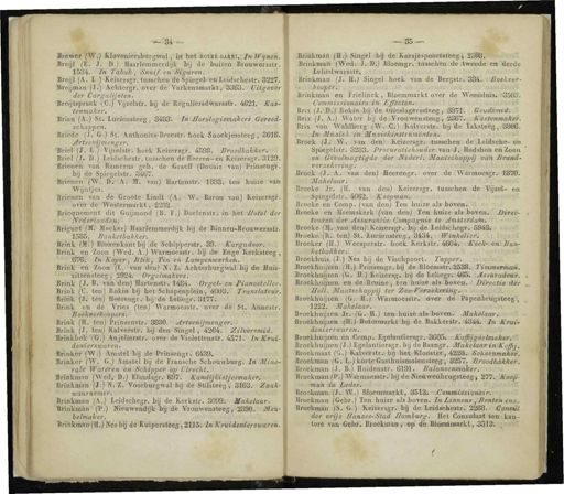 Gebruik tekstcoördinaten Transcriptie JreWjW .) fclo-^itórsburgiwal -,- 5 »' hefc&om GkiAiAtnWvMh Breijl ( E . J DJ Haarlemmerdijk bij de buiten Brouwersstr 1534 . In Tabak , Snuif en der Cargalijsten . ° ' Bréijlspraak ( C .) Vijïeïstr . bij de Régulifeüédsifarsitr . 4621 . Kas- tenmaker . Brian ( A .) SU-Xuciensteeg , 3483 . ■ InJfforólogiemakers Gereed schappen . i'.'nlt . Briede ( X . 6 .) St . Anlhonies-Breeslr . hoek Snoekiessfeeg , 3618 . Artsenhmengeri iy ^ kö SS ii : . ™. > j B r - e ï Ir ' H7 1 J ' i , elstK noek Kefeersgr . 4598 . Brooa%akker . Uriel- [ J . D .) Lcidschestr . tusschen de Heeren-en Keizersgr . 3199 - Bnenen - vaö Kamerus geb . de Graeff ( Douair van ) Prinsengï ] by de Spiegelstr . 3467 . ƒ - BHéW'(W . D . A . M . van ) Harlenstr . 1893 . ten huize van 1 Wynljes . Boenen van rfe . Grooie lindt ( A . W . Baron van ) Keizersgr . over de Westermarkt ,- 2232 . i Bricquement dit Guijmond ( B . F .) Doelenstrï in-het Hotel der Nédérlaiidèn : •' BSD jitt . i'sioylc , ' BrigBe^fM^MobkBrJ'ftMJ-WrBeiSdijk bij de Binne'ri-Brouwersstr . . 1585 . Banketbakker . Brink Wyffitftrgtib&étiiij üle ISctópperrtr . 39 . Kargadovvvoi Bnnk_en Zoon ( Wed . A .) Wftnrióesstr . bflifte Enge Kerks leeg , 67b . In Kqpèr'j SM , Tin en Lampenwerken . afSSE ™ * 00n CV^^n ) N . U Aöotwbutgwfel'Ki de Huis- JU »- , ïft«ii8teeg ' j 2924 ; OrgelmoJm-é .- Brink ( J . B . Vaiitiélï ) ttnrten»t'r«»1484 . Orgel - en Tianosteller . Ï2££riS *^ » 0kl#bij het Schapenplein , 4008i '. Translateur . Brink ( J-t té ») Ileerengr.'jhij-de leiifegrVSlWA ; > • rin ! i e £» i.k Vries ( ten J Warmoesstr.<T>ter . del St . Atóhestr . v • , ™ f m ^ t ° T S a ' « rink ( H . ten ) Prmsenstr . ïiïïMii.J ^? . ' blJ den Si^ely 4264 . Zih*r*mid . JlrtnknoK J fG '.) ArijeUerstr<i.Jom>de Violettenjtr . 4571 -.' In JSrut- denierswaren . j -^ iti iBrinkfei ,: ( i W . ; ) ftmstfel'bff Sfe'Grintten gr . 6489V > Brinker ( W . G.J Arnstel bij de Franache Schouwburg . In ' Mine- rale WatèHn en ScKtpper op Brinkman ( Wed . D .) Elandsgr^W -' Ka-ndmétj•esmaker.U .,. Bnnkrdari^J :) IV ; Z . Voorburgwal bij de StiKteegt . 3103 . Zaak- " waarhemerVW 5fj n . l™a n J A .- J teidschegr . bij de Kerkstr . 3099 . Makelaar . Bttnkm&n ( p .) Hieuwendp hij de Vrouwensteeg , 2390 . Meu- belmaker . BnnkmarifH.^NesbijdeKuiperStbeg.atis . In Kruidenierswaren . — 35 — Brinkman ( H >)> Singel Jbjj de KorsjSsjrobristéeg t 2308 . Brinkma » fWecUiJi -. D .) Bloemgr . tussehén«Ieötweede en tierde ï Lelicdwarsstr ; U ! Brinkman ( J ." H .) Singel hoek van de Bergstr.ak '. tlBotkver- 1 '. ' oope-fli : ^ mkmWaI '« sfc-ji^rttatsTljiJI üriukman en Friehnck , Bioemmarkt over de Weesstari»j>b35Ó3 . Commissionairs.'in . Effecten . Brix ( J.aSJBBpfcin bij de . tUiesIagersstceg jüSöili ( kiTu-dkmiêli \ Brix ( J . A .) Water bij de:Vrouwfensteeg , < m~.<::.mstenmato!r . I /"?, WaMberg ' ( ft-.C .) ; Kalverste : hij < de < Taksteel ,. 3806 . I snl.In MümeJtJeteliïtipaiehin&rBinSbvteiisd A Broek ( I ; ■• i&v.oOnm den ) IB.0tóensgii!u4n»scaienli 4eULeia«ehe-.^t Spiegelstr . 3283 . Procuratiehouder van J . Hodshóii edZoon .• en\,'G&>olinagtigde der Hidérl . MaaUóhxtipiï vh % Brand- verzekering . « S»p Broek:igJ . A . van den ) Heereingr . over de WdrntoèSWri , 1870 Mak elaar . Sr .,: » j « U - eb ' j Broeke Jr . ( H . van den ) Keizersgr . taasokem-ilfet Vïjid - en - . • . Spiegelstr . 4062 . Koópnidn\t.yfgi%i4 l'i asvj.-n '' Broeke en Comp . ( ran den ) Ten Iimze als boven . Broékë en Heemakark ( van den ) Ten huize ; afail>oKien . Si*t ^- tevMfi-UenAasiuiiaiitiai Compagnie te uityUeitdaiiiiK Broeke ( BL^van dcii)vKeberegr.sbij3lto,lerdtóliegr . 5948 . BroefcBi(Ba teffl)^.4uoira«tè'Eg!,i!at34i '■■ • W.ia^üli^fil . 1 Broeker ( H .) Weesperstr . hoek Kerkstr . m&n&oefow&Man - ' ' lietba/tJiêr .'. Broekhuis ( J .) Nes bij de Vischpoort . Tapper . BroekKuy8èn.:(H .) Prinsengr.ihg JeoBlóénretr.aSSB.l Timmentóoll . BroekfetrgaenifS . . HtyilLekjejisg * ilrg de Eelieg^4eK | JUstomtear . JiroekhuïjTaeniienidaffiriiöie 3 lenWrjAirisliboven . ■' Dïrectie-tfbr Holt . Maatschappij ter Zéc-Fcrzekcrihg .. , n Brotsktöijïén (, G.- ; jH .) WarnfoeL»itï^«ft^.-.ibiriarieHbryg8tBe)t ? 1222 . Makelaar . Broekhuijzeni3bi»pJ ., v H .) ten/hüi«è."als boven . Makolawrw Broekbjfljzsli r<H .) Botermarkttlnj/«e.Bakker»tr . 4844 . In Krui ' denierswaren . Itoe^i^^^n^^WBeianiSeT^r^misiM^mgéelma^m .^ Broekhuijzen(J ) Egelantiersgr.bij deBaangr.l«bAe<<twi«r(,ffi ,-. i Broekmaat ( G^Sai,y»stM*g 3 H«*,«lo»iitpI,422 &, Schoenmaker . Bitoekman (« s.fl}i);kirJrt ; eSa3trinisirK>teilstesg,,8257 . Broodbakker Broekman ( J . B .) Huidenstr . 6191 . Balansenmaker . BroekraatóWiWaVmoearirtllnJdejHieévfieahïugïtSegj Wft-ffievif- • sw-<v»'tAiifa fyder . ooV-iS-.K(- ilïS - Broebniaib.YJvóKv :.) Blpemmarkt , ■ 8511fovo<7oi»»Bt«t » v » k»Wio ; Broekman ( Gebr .) Ten huize als boven . In Linnens . Bonten enz Broekman s(S . - ü . ) Keizersgr.^f 4»Hieidsüè * I Dl2e68.ai<&mim7 der vrije JTanzee-Stad Hamburg . Het Consulaat - ten kan- tore van- .& ehf ; Broekman-jivop ' dö:Btóemmailkt,.3918v^i