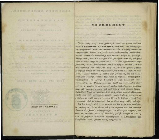 ■■• n.fiu J>iaga :.•;,.-.. tjm-.-.vL.r . rr.Aa aa koot . < ht8jeïi « i7 c 3ha « jaiaau Éb-.^ooT ' S«DBÜKT 1W 6 , TM(TI**-.*k . -• V»n'«i '. ■■.'■■■'• . i HS V . . ■; -..-••• o ■', : , 3'i.ifc VOORBERICHT . pmAnan \ fc \\ Vt\i ««>• , ivi'.::\.iw « Sgtfe ' l'i'.v^iV.V < jV ". . ' l ' Oedert lang heeft men geklaagd over het gemis van een meer AtGBnBBir ADKEgBOBK voor eene zoo belangrijke en uitgebreide stad als Ahstehdah . De moeijelijkheden en aanzienlijke holten aan zulk eene onderneming verbonden , ■ maken echter de uitvoering van dezelve hoogst bezwaarlijk , dewijl nan , wil het beoogde doel getroffen worden , elk jaar eene niéuwe . Uitgave geven moet . De Ondergeteekcnde heeft getracht , al de hinderpalen uil den weg tt ruimen , on met medewerking tan bevoegde hulp is het hem gelukt , dezen jaargang weder in den tegenwoordigen vorm het licht te doen zien .' Geene moeite of kosten zijn gespaard , om dit boeide voor den belanghebbende bruikbaar te maken . Volledigheid , duidelijkheid en tegelijk beknoptheid zijn voorzeker eerste vereischten ; de Ondergeteekende heeft die vereischten onder het oog gehouden en daarom het werkje niet alleen zoo volledig mogelijk gemaakt*.maar ook met eene geheel nieuwe kleine , duidelijke letter op zeer goed en dun papier doen drukken , ten rinSé zoo vele duizenden namen , woonplaatsen , beroepen en getallen in zulk een kort bestek bijeen te krijgen , terwijl hij vertrouwt , dat de uitvoering het publiek welgevallig zal zijn . Om het boekje niet te verzwaren en den prijs niet noodeloos te varhoogen , is er thans ook geen register van . den tweeden Persoon der firma's achtergevoegd , en alle bijeenvoeging , van eene en dezelfde zaak of Handel , gelijk vroeger in het bij hem uitgegeven wordende naamregister of Adresboekje der Kooplieden , enz ., plaats vond , weggelaten .