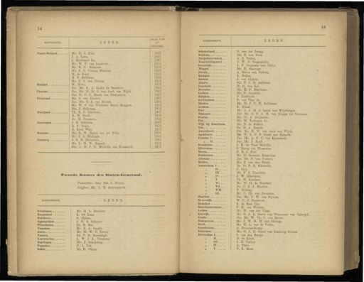 14 15 JAAR VAK PBOTINCIÈN . LEDEN . AF- TREDING . Mr . H . J . Kist . 1907 J . A . Laan . 1907 J . Breebaart Kz . , 1907 ' Mr . W . E . van Leeuwen . 1910 Mr . E . N . Rahusen . ' 1910 Mr . S . A . Vening Meinesz . 1910 M . de Jong . 1913 H . I . Bulfman . \ 1913 Mr . E . S . van Nierop . 1913 W . Hovy . Jhr . Mr . K . A . Godin de Beaufort . 1910 1913 Jhr . Mr . H . M - J . van Asch van Wijck . Jhr . H . P . C . Bosch van Brakestein . 1907 1910 Mr . S . van Houten . Jhr . Mr . P . J . van Bevma . 1907 1910 Mr . W . J . van Weideren Baron Rengeif . 1913 Mr . J Sickenga . 1913 Th . E . E . Heerkens . 1907 D . W . Stork . 1910 Dr . H . Eranssen . ^ Vfv : 4 1913 J . E . Scholten . 1907 R . P . Dojes . 1910 D . Knol Welt . 1913 Mr . G . W . Baron van der Eeltz . Mr . J . J . Willinge . 1907 1910 J . S . H . Brouwers . Mr . L . H . W . Kegout . 1907 1910 Jhr . A . H . J . H . Michiels van Kessenich . 1913 Tweede Hamer der Staten-Oeneraal . Voorzitter i Jhr . Me . J . RoëiXi Griffier : Mr . A . R . Arntzehiuh . % ■ KIESDISTRICT . LEDEN . Mr . H . L . Drucker . K . ter Laan . G . Zijlma . J . H . A . Schaper . Dr . D . Bos . Mr . E . A . Smidt . Appingedam Mr . M . W . E . Trenl », Dr . P . H . Roessingh . L . W . J . K , Thomson . M r - J . Schokking . P . L . Tak . Mr . H . Okma . KIESDISTRICT . LEDEN . Schoterlam G . van der Zwaag . Mr . R . van Veen . A . S . Talma . Tletjerkste adeel .. Weststellin jwerf . F . W . N . Hugenholtz . L . F . Dnymaer van Twist . Meppel .. Mr . H . Smeenge . Zwolle A . Baron van Dedem . K . Reijne . J . van Alphen . i !\. Mr . P . J.M . Aalberse . H . H . va-n Kol . Mr . H . P . Marchsat . Mr . G . Jannink . , F . Lieftinck . Doetlnchem P . van Vliet Jr . Mr . M . J . C . M . Kolkman . K . Eland . • Mr . A . J . M . J ; baron van Wijnbergen . Jhr . Mr . O . E . A . M . van Nispen tot Sevenaer . Mr . Th . J . Duijnstee . lie ) Mr . M . Tydetnan Jr . Wt)k bU Dnnrstede . Mr . N . de Ridder . Ede Dr . M . A . Brants . Amersfoort Jhr . Mr . H . W . van Asch van Wyck . M *. W . K . E . P . Graaf van Bylandt . Jhr . Mr . A . P . C . van Karnebeek . Utrecht I . » II . Jhr . Mr . J . RoëJl . J . H . de Waal Malefljt . S . Baron van Heemstra . P . B . J . Ferf . : Mr . H . Goeman Borgesius . Enkhnizen . Jhr . Mr . P.'Van Foreest . Helder Mr . Z . van den JBergh . Dr . Hi E . R . Hnbreout . Amsterdam I a II C . Lely . li Ill Mr . P . J . Troelstra . » IV J . W . IJzerman . il . T ! , Th . M . Ketelaar . li VI Mr . W . H . de Beaufort „ VII . . Dr . C . F . J . Blooker . V Vill . . P . Nolting . É IX Mr . C . Th . van Deventer . ' Jhr . Mr . F . W . van Styrum . Beverwyk . W . C . J . Passtoors . K . de Boer Czn . F . H . van Wichen . Haarlemmermeer . . Leiden .. Mr . W . van der Vlugt . Mr . O . J . E . Baron van Wassenaer van Catwijck . Gouda .. Jhr . Mr . W . Th . C . van Doorn . Mr . J . W . H . M . van Idsinga . Bodegraven Delft : Mr . H . A . van de Velde . Loosduinen A . Brummelkamp Mr . O . J . H . Graaf van Limburg Stirum Rotterdam S . van den Bergh . „ D . de Klerk . ii ju . . .'.•"■ J . B . Verhey . ii tv ... A . Plate . n P . R . Mees .