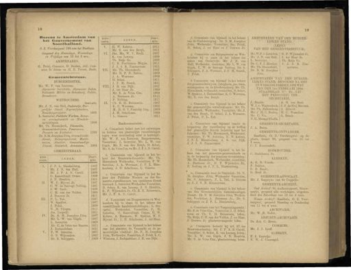 18 19 KIES- DISTR . LEDEN . { Jaarv lAftr . AMBTENAREN " VAN DEN BURGER- LIJKEN STAND . ( LEDEN ' VAN HET GEMEENTEBESTUUR ). Bureau te Amsterdam van liet Gouvernement van Woord holland . 0 . Z . Voorburgwal 199 aan het Stadhuis . Geopend des Maandags , Woensdags en Vrijdags van 10 tot 2 ure . AMBTENAREN . G . Petri , Commies , D . Bakker , Adj . Com- mies 2e klasse en H . 11 . Freese , Bode . Gem eentebestnar . BURGEMEESTER . Mr . W . F . van Leeuwen . Algemeene Secretarie , Algemeene Zaken , Nationale Militie en Schutterij , Politie , Brandweer . WETHOUDERS . Jaarr.aftr . Mr . J . N . van Hall , Onderwijs , Bur- gerlijke Stand . ' Begraafplaatsen , Bevolkingsregister . 1905 Ii . Serrurier , Publieke Werken , Bouw- en woningtoezicht en Handels- inrichtingen . 1908 Mr . Th . Heemskerk , Financiën , Gemeentebedrijven , Pensioenen . Precario en Kadaster . 1908 Dr . N.M . Josephus Jitta , Gezondheids- dienst , Reinigingsdienst , Markt- wezen , Abattoir , Geneeskundige Dienst , Statistiek , Armwezen . 1905 GEMEENTERAAD . KIES - LEDEN . Jaarv . DISTB . Aftr . I . J . F . L . Blankenberg . 1907 Mr . J . N . fan Hall . 1907 • Mr . J . P . A . N . Caroli . 1909 0 . Kanierlingh Onnes . 1909 J . N . Hendrix . 1911 II . W . F . Bijvoet Jr . 1907 C . W . de Sauvage Nolting . 1907 J . W . Smit . 1909 C . H . van der Telden . 1909 J . Douwes Jr . 1911 III . P . L . Tak . 1907 W . Spaklef . 1907 J . Polak . 1909 W.B . Vliegen . 1911 Jos . Loopuijt . 1911 IV . Dr . N . M . Josephus Jitta . 1907 Mr . L . W . van Gigch . 1907 L . Serrurier . 1909 Ml ". C . de Vries van Buuren . 1911 J . Zeehandelaar . 1911 V . P . W . Sutorius . 1907 G . P . Wijnmalen . 1907 Dr . S . Schippers . 1909 KIES- DISTE . leden . Jaarv . Aftr . V . H , W . Kehrer . 1911 Mr . Z . van den Bergh . 1911 VI . Jhr . Mt . W . F . Röell . 1907 K . van Lennep . 1909 Th . Ruijs Gz . 1909 C . B . Posthumus Meyjes . 1911 J . J . S . R . Zimmerman . 1911 VII . Mr . Th . Heemskerk . 1907 Mr . D . P . D . Fabius . 1909 J . A . Wormser . 1909 D . Schut . 1911 J . F . M . Sterck . . 1911 VIH . J . B . van Dijk . 1907 J . ter Haar Jr . 1909 Mr . S . , de Vries Czn . 1909 A . Harmsen Jr . 1911 P . Nolting . 1911 IX . Ch . E . H . Boissevain . 1907 K . C . Wiersma . 1907 M . H . G . T . Fiedeldy Dop . 1909 J . H . Scheltema . 1909 L . Simons . 1911 Raadscommissiën : a . Commissie belast met het ontwerpenen herzien van plaatselijke verordeningentegen wier overtreding straf is bedreigd:Mr . W . F . van Leeuwen . Burgemeester,Voorzitter ; L . Serrurier , Mr . L . W . vanGigch , Mr . Z . van den Bergh , D . Schut , Mr . S . de Vries Czn . en Mr . J . P.A.N . Caroli . b . Commissie van bijstand in het be- heer der Gemeentè-financiën : Mr . Th.Heemskerk Wethouder , Voorzitter , P . W.Sutorius , J . A . Wormser , J . F . L . Blan- kenberg , J . H . Scheltema , L . Simons . c . Commissie van Bijstand in het be- heer der Publieke 1 Werken en der Ge - meente- eigendommen ten openbaren dienst bestemd : L . Serf urier.Wethouder , Voorzitter , D . Schut ) K . van Lennep , J . N . Hendrix,G . P . Wijnmalen Jr ., Ch . E . H . Boissevain , Mr . J . P . A . N . Caroli . d . Commissie om Burgemeester en Wet- houders bij te staan in het beheer derverschillende handelsinrichtingen : L . Ser- rurier ', Wethouder , ' Voorzitter , P . W.Sutorius , O . Kamerlïngh Onnes , H . W.Kehrer , A . Harmsen , W . Spakier , W . F.Bijvoet Jr ., J . H . Scheltema , J . tér Haar . e . Commissie van bijstand in het beheer van het abattoir ; de Veemarkt en de ge- meentelijke vischhal : Dr . N . M . JosephusJitta , Wethouder , Voorzitter , J . Polak , K . C.Wiersma , J . Zeehandelaar , J . R . van Dijk . ƒ. Commissie + an bijstand in het beheer van de Stadsreiniging : Dr . N . M . Josephus Jitta , Wethouder , Voorzitter , Jac . Polak , D . Schut , J . ter Haar en J . Douwes Jr . g . Commissie om Burgemeester en Wet- houders bij te staan in het beheer der zaken van Onderwijs : Mr . J . N . van Hall , Wethouder , voorzitter , Mr . L . W . van Gigch , C . W . de Sauvage Nolting , Dr . S . Schippers , J . A . Wormser , J . F . M . Sterck , J . Polak . h Commissie van bijstand in het beheer der gemeentebedrijven , ( telephpon , gas , tram , stoomponten en de kleedermakerij ) Mr . Th . Heemskerk , wethouder , voorzitter , D . Schnt , ■ W . Spakier , J . Zeehandelaar , K . O Wiersma , Mr . Z . van den Bergh . i . Commissie van bijstand in het beheer ■ der gemeentelijke waterleidingen : Mr . Th . Heemskerk , Wethouder , Voorzitter,'Mr . Z . van den Bergh , D . Schut , J . A , Wormser , J . Polak , P . L . Tak . k . Commissie van bijstand inzake de toepassing der verordening op de heffing ■ der plaatselijke direote belasting naar het Inkomen :• Mr . Th . Heemskerk , Wethouder , voorzitter , P . W . Sutorius , H . W . Kehrer , J . F . L . Blankenberg , J . R . van Dijk , - J . J . S . R . Zimmerman . I . Commissie van bijstand in het be- teer van het gemeente-pensioenfonds en in de toepassing der pensioen-verordening : Mr . Th . Heemskerk , Wethouder , voorzitter , A . Harmsen Jr ., G . P . Wijnmalen Jr ., P . Nolting en J . F . L . Blankenberg . m . Commissie voor de Statistiek : Dr . N . M . Josephus Jitta , Wethouder Voorzitter , Dr . S . Schippers , P . L . Tak , L . Simons « n J . J . S . R . Zimmerman . n . Commissie van bijstand in het beheer van den Gemeentelijken Geneeskundigen Dienst : Dr.N . M . Josephus Jitta , Wethou- der , Voorzitter ,. A . Harmsen Jr ., Dr . S . • Schippers en J . F . L . Blankenberg . o . Commissie voor het Vergunningsrecht : Mr . S.de Vries Czn ., Voorzitter , J . H . Schel- tema en Ch . E . H . Boissevain , leden ; Th . Ruijs , C . H . van der Velden , J . ter Haar , - J . Douwes Jr . plaatsvervangende leden . p . Commissie bedoeld bij art . 37 - der Bouwverordening : Mr . J . P . A . N . Caroli , Voorzitter . D . Schut , K . van Lennep , leden ; Mr . L . W . van Gigch . J . N . Hendrix , Mr . S . de Vries Czn ., plaatsvervang . leden . G . P . 