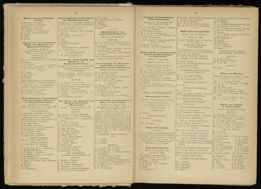 36 37 A . Grooters , met pers . titel van inspecteur der agenten . H . G . Hemmes . J . L . G . Krugers Dagneaux , met pers . titel van ingenieur der R . V . B . J . W . A . Losecaat van Nonhuys , met pers . titel van Inspecteur der agenten . R . Lukkien . C . F . G . Metsch , met pers . titel van in- genieur der R . V . B . N . M . Meijnema Jr . M . Oosters . C . Plokhooij . Ph . Th . Poelman . A . H . van Schieveen . G . Verbeek Jr . GENEESKUNDIGE DIENST , AMBTSGEBIED AMSTERDAM . Amsterdam I * G . P . van Trooijen . J . W . Elenbaas , Assistent . P . Wijga , idem . Amsterdam II : D . Brocx . Raad van Beroep . ( Ongevallenverzekering ), Bureau : Stadhou- derskade 47 , Tel . Z 1407 . Mr . G . A . de Graag , Voorzitter . Mr . G . M . W . Jellinghaus , Plaatsterv Voorzitter . Mr . Ch . Thors , idem . Mr . K . J . van Nieukerken , idem . Mr . I . G . Jaxon Deelman , Griffier . Mr . H . J . A . J . Niemeijer , Plaatsverv.- • Griffier . Mr . J . J . H . J . van Reenen , idem . Mr . J . G . Steneker , idem . Baad van Arbeid te Amsterdam . Kantoor ; Heerengracht 237/239 . BESTUUR : P . Keulemans , Voorzitter . Mr . H . Verkouteren . PI . Voorzitter . W . A . C . Hünkemöller , Bestuurslid . S . J . Pothuis , Bestuurslid . F . L . v . der Bom , Pi . Bestuurslid . G . J . M . v . Lingen , PI . Bestuurslid . Mr . J . E . B . van Lier , Secretaris . Chefs van Diensten : P . L . Gerritse . M . Stavast Jzn . Werkgeversleden : PI . Werkgeversleden : G . H . Bührmann . W . J . de Maar . F . Poulie . J . Kattenburg . F . L . van der Bom . A . Dooyewaard . F . Veerhoff . J . Bald'er.W . A . O . Hünkemöller . A . J . K . Grond.H.VermeulenWindsant . J . W . B . Bröcker.E . A . Loeb . H . G . v . Dorssen . Werknemersleden : PI . Werkn.-leden : G . Baas K.zn . D . de Ridder.P . v . Eek . H . H . Wollring.Mej . A . de Jong . B . Diamant.C . Kitsz . L . B . Spanjer.J . Pieksma . J . Hesseling.G . v . Lingen . H . J . de Vries.S . J . Pothuis . Jac . Gottschalk . Hand werkers- Vrienden- kring . H . Barnstein , Voorzitter . D . van Strien , 2e Voorzitter . 3 . Zodij Jzn ., Ie Secretarie . Sam . Hartog , 2e Secretarie . I . J . Drilsma , Ie , Penningmeester . 3 . M . Hes , 2e Penningmeester . D . Chapon . E . Sterk.N . Simons . Algemeene Vederlandsche Hond Tan Handels - en Kantoor bedienden » Gevestigd te Amsterdam . Goedgekeurd laatstelijk iij Koninklijk Besluit van 7 Augustus 1919 . Staatsblad No . 74 . BONDSBESTUUR . / Kantoor : PI . Franschelaan 6 . Tel . N 2569 . H . Schutjes . } Ie Voorzitter , .( D ^ ch G . 3 A Smit Jr ., Wam . s /^ C . W . Jacobsen , Penning - 1 meester . ) Fh . Barmes . S . de la Bella Jr . B . Feitsma , H . Verver . REDACTEUR ORGAAN „ ONZE STRIJD ". G . J . A . Smit Jr ., Plantage Franschelaan 5 . BESTUUR AFD . „ AMSTERDAM ". Kantoor : Plantage Franschelaan 5 S . de la Bella Jr ., Voorzitter . Hï J . Meijer , Secretaris . B . J . de Beer , Penningmeester . Wederlandsche Vereenlging van Christelijke Hantoor - en Handelsbedienden . Gevestigd te Amsterdam . Erkend bij Kon . Besl . d.d . 15 Aug . 1894 , No . 27 St.-Ct . No . 216 . HOOFDBESTUUR . G . Baas Kzn ., Amsterdam , Voorzitter . 3 . Nauta , Secretaris en Propagandist . Prinsengracht 415 , Amsterdam . K.Rij per ¥ zn.,Penningm ., Prinsengracht 415 . W . J . Bossenboek , Amsterdam . A . de Jong , Utrecht . K . Drexhage , Leeuwarden . H . A . C . van der Kraan , Rotterdam . N . de Visser Jr ., Dordrecht . J . v . d . Wonde , Zwolle . Joh . B . Visser , Groningen . A . v . der Voort , Zwartsluis . Ondersteuningsfonds . Seer . : A . Vietor , Amstelveld . 2 . Afdeeling Amsterdam . A . v . der Brug , Ie Voorzitter . 2e Voorzitter . P . J . van Wijk Pin ., Ie Secretarie , Wijttenbachstraat 84 . J , W . Holm , 2e Secretarie . 3 . C . Hendriks Ph.Jzn ., Ie Penningm . Kwakersstraat 12 . H . J . Vermeulen , 2e Penningm . 3 . Tewis , Corr . Werkt . Fonds , Zeeburger- dijk 72 . S . Postema . H . Visch . C ." J . Cromboseh . Vederlanilsche Vereeniging van Bandelsagenten . ( Goedgekeurd bij Koninklijk Besluit van 9 Februaril$12 , gewijzigd 8 Octoberl915 ). H . J . van der Borg , Voorzitter . Louis Kaas , Vice- Voorzitter . M . Joosten , Secretarie , Prins Hendrik- kade 124 . Caspar Meijer , Penningmeester . B . v . der Nap.S . Kool . J . Samson . D . Spanjaerdt Speekman . J . Zeegers . RECHTSKUNDIG ADVISEUR : Mr . Godfried Parser . ADMINISTRATEUR : C . W . Höfelt , Zeilstraat 14 . „ Vooruit ", Vereeniging van Handel »- en Hanjoor bedienden . ( Goedgek . bij Kon . Besl . van 14 Juni 1887 .) COMMISSIE VAN BIJSTAND UIT PATROONS . Mr . J . L . Gunning . Gottfr . H . Crone . Mr.H.P.v.HenkeIom . W . H . J . Oderwald . Mr . R . van Rees . BESTUUR . A . J . Knebel Czn ., Voorzitter . C . W . Höfelt . Secretaris . Zeilstraat 14 . J . Herman Siestrop , Penningmeester . P . Barends , 2e Secretaris . S . Hoekstra , 2e Penningmeester . W . Swart , Administrateur der Ver- zekeringen . K . F . Campagne , Archivaris . Vat . Bond van Handels - en Kantoorbedienden „ SI erCHrius " . Kantoor : Aert van Nesstraat 1282 . Rotterdam . BESTUUR : Jac . Bakker , Voorzitter , Rotterdam . W . Brouwer Jr ., Secretaris , Amsterdam . F . G . Mastenbroek Jr ., Penningmeester , Leiden . H . C . Snel , Amsterdam . J . Hermans , Amsterdam . Joh . M . de Zeeuw , Rotterdam . J . Ratte , Rotterdam . H . Maohielse , Rotterdam . Jac . T . Vogel , Rotterdam . J . Hartog , Rotterdam . W . C . van Daalen , Haarlem . Jac . Nolten , Rotterdam . H . Vos , Rotterdam . R . A . Mijne , Haarlem . J . Roetert , Tiel . P . J . H . Hoing , Maastricht . C . J , Peusken , Deventer . H . Lambrechts , Coevorden . AFD . AMSTERDAM . Secretariaat : 2e Helmersstraat 32 . BESTUUR : J . Hermans , Voorzitter . /'*'" J . M . Snel , Secretarie . C . A . v . Dgk , Penningmeester . H . Rietmeijer , 2e Voorzitter . D . Snel , 2e Secretarie-Administrateur . M . G . C . Pas , 2 « Penningmeester . 3 . M . Ovezall . Mej . Versèlewell de Witt Hamer . E . Limper . J . Hofkamp . M . v . Houten . J . Spa