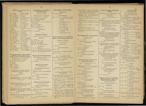 20 21 Maaalhaensplein 2 , West : alle werkdageu Z uur . Oost : Maandag , Dinsdag , Don- derdag , Vrijdag en Zaterdag 9 uur . Prinsenqracht 266 , alle werkdagen 2 } uur - Westerpark , Noord : alk werkdagen 9 uur Zuid : alle werkdagen 2 uur . Laanweg 28 , Dinsdag , Donderdag en Zater- dag 2 uur . Hoekschewaardweg 78 , Donderdag 2 uur . Orionstraat 46-48 , Dinsdag en Zaterdag 2 uur . Beemsterstraat 36 , Dinsdag en Vrijdag 2 uur . Tuinbouwstraat 53 , Dinsdag 2 uur . Sloterweg 1193 , Woensdag 11 uur . Woonwagenkamp , Osdorperweg , Donderdag lij uur - Bank Keuringsdienst van Waren . Keizersgracht 780/734 . DIRECTEUR . Dr . A . v . Raalte . SCHEIKUNDIGE-PLAATSVERV . DIRECTEUR. J . Straub . s . i . SCHEIKUNDIGEN . R . N . M . A . Malotauz . G . A . van Stijsferen . F . C . M . Jansen . TECHNISCH ASSISTENT . M . M . Lerner . CHEF KEURMEESTER . C . Segaar . Gemeentelijk Bouw . en Won i ngtoezicht . Bureaux Valckenierstraat 2 hoek Weesperplein . Geopend van81/j — 12I / 3 en van 2—5 } uur . ( des Zaterdags van 81/g — 12 % uur .) DIRECTEUR . M . E . H . Tjaden c . i . HOOFDINGENIEURS . J . C . van Teijlingen c . i . F . E . Samson c . i . SECRETARIS Dr . G . H . Arnhardt . AFD . BOUWTOEZICHT . INGENIEURS. J . Potma , c . i . J . H . A . Ringeling c . i . J . Zuiderhoek c.i . HOOFDINSPECTEURS . E . N . Scheephorst ( Adj . Hoofd v . Afd .). W . J . van Dorp . AFD . WONINGTOEZICHT . HOOFDINSPECTEURS. J . S . Crouse ( Adj . Hoofd v . Afd .). P . Verhave . AFD . ADMINISTRATIE . BUREAUCHEF. Mevr . T . Scheephorst-v . d . Zwaard . MBTENAREN VOOR SOCIALEN ARBEID . H . R . J . Kroon . Joh . M . Krull . M . Levie . J . Licht . P . J . van der Linden . J . Marnette . C . G . v . d . Meer . J . C . Polling . W . Post . W . Roodenburg . J . E . de Rooij . H . A . Ross . J . Ie Roij . H . M . M . Ruijze - naars . J . P . van Rijswijk . F . W . Salm . 1 . Schouw . J . de Swarte . J . A . Thümann . H . Toledo . J . J . v . Velthoven . H . C . J . Vermeulen . J . M . H . Vliege . A . W . Vogel . J . L . Voig . K , H . Voous . C . Vrieling . H . Wesseling . J . G . Westerheek . W . P . Wienke . O . B . T . Wijngaarden J . H . J . Zwager . P . O . Adams . H . S . Bauge . Mej . D . Batavier . H . K . Blankstein . A . G , v . Bodegraven , A . D . E Bolier . F . J . W . Bönig . F . C . Brekelmans.A . J . Bresser . J . v . d . Bijl . J . I . Byvank . A . Christiaanse . Mej . J . M . A . J . C . Croes . J . Davids . B . Diamant.Mej . A . van Dijk.E . H . Eerhart . S . P . C . v . Erk . H . J . J . Fransen . A . J . Haring . E . J . Heemink . J . Heeringa . H . J . v . ' t Hof . G . W.J.Hollanders J . A . Holtes.Mej . A . R . M . Jans- sen . J . L . Jonker . M . F . Kiesel . A . P . H . de Koning . Th . Konsbroek P . J . v . Krieken . Gemeentelijke Verzorgings- huizen voor ondel van dagen en het Wedawenhof . COMMISSIE VAN TOEZICHT . F , van Meurs , Weth ., Voorzitter , A . van der Laarse , Secretarie . M . E Olie . G . Kramer.Mej . S . Baarda.Mej . A . de Jong.Mr . K . Jansma.J . G . Leibhrandt . DIRECTEUR DER GEM . VERZOR- GINGSHUIZEN VOOROUDENVAN DAGEN . Roetersstraat 2 . J . D . Thumann . ADJ.-DIRECTEUR VAN HET GEM . VERZORGINGSHUIS VOOR OUDEN VAN DAGEN . HOOFDVERPLEEGSTER AAN BET GEM . VERZORGINGSHUIS VOOR OUDEN VAN DAGEN . Mej . B . van der Horst . Huismeester van het Gem . Verzor- gingshuis voor onden van dagen te dorp Sloten . J . van den Berge . Huismeester van het Weduwenhof . Karthuizersslraat 21—127 . B . J . H . van den Ouwelaut . Inrichting voor Stads- bestedelingen . Prinsengracht 484 . COMMISSIE VAN TOEZICHT . F . van Meurs , Weth ., Voorzitter . A . v . der Laarse , Secretarie . Mevr . M . Gerhard-Brandon . Dr . O Hesterman . Mevr . H . M . C . v . Rijn van Alkemade- De Hartogh . Mr . H . J . Hulsmann . Mr . W . H . Ariëns . Mevr . A . van Blitz-Bonn . J . G . M . Erfteméier . DIRECTEUR . P . den Hollander . H u rgerweesh uis . Kalverstraat 92 , St . Luciënsteeg 27 . BESTUUR . F . van Meurs . Mej . Mr . O Frida Katz . Jhr . F . J . E . v . Lennep . Dr . D . M . E . Hahbema . Mej . Mr . A . E . Ribbius Peletier . DIRECTEUR : H . A . van Ravesteyn . Htofdboekhouder-Kassier . Kantoor : St . Luciënsteeg 27 , alle werkdagen va * 9—5 uur , Zaterdags tot 4 uur . Gemeente Ziekenhuizen . Hoofdadministratie gevestigd in het Wilhelmina Gasthuis HOOFD-ADMINISTRATEUR , ir . H . Sanders . Binnen-Gasth uis . Grimburgwal 10 . GENEESHEER-DHtECTEUR O . van der Reijden . MEDISCH ADJUNCT-DIRECTEUR . J . Elte . ADJUNCT-DIRECTRICE . Mej . B . Barger . ADMINISTRATEUR . R . W . Poolman . Wilhelmina-Gasthuis . Ie He/mersstraat 104 . GENEESHEER-DIRECTEUR . W . F . Veldhuizen . MEDISCH ADJUNCT-DIRECTEUR . H . Kindermann , arts . ADJUNCT-DIRECTRICE . Mej . J . C . Peterson . ADMINISTRATEUR . A . Visser . Stads Bank van Leening . DIRECTEUR . J . P . van der Tak . BANKHOUDERS . No . 1 . J . Grootegoed , Hoofd- bankhottder , O . Z . Voorburg- wal 800 . „ 5 . H . Eimers , Leidschekruisstraat 34 . , 6 . W . C . Buwe , Mauritskade 98 . „ 7 . A . F . du Puis , Marnixstraat 315 . , 8 . L . F . H . Wassink , Lindengracht 204 . „ 11 . E . Garrelfs , Gerard Doustraat 156 . Gemeentelijke Geneeskun- dige en Gezondheidsdienst . CENÏRAAL BUREAU . N . Achtergracht 100 DIRECTEUR . L . Heijermans . ADMINISTRATEUR . Mr . W . Etty . CONTROLE - EN MELDINGBUREAU . Leider : S . Spijer . AFD . VOLKSGEZONDHEID . Bacteriologisch , Serologisch en Epidemi- ologisch Laboratoria . Leider : Dr . H . Peeters . QUARANTAINE-INRICHTING . Zeeburgerdijk 321 . AFDEELING KINDERHYGIENE . Leider : C . L . Deyll . CONSULTATIE-BUREAU'S VOOR ZUIGELINGEN . Waterlooplei *, Maandag , Dinsdag . Woens- dag , Donderdag en Zaterdag 2 uur . Ie Conradstraat \% g , alle werkdagen 2 uur . Kramatweg 45 ( ingang Baweanstraat ), alle werkdagen 2 uur . Polderweg 10 , Maandag , Woensdag , Vrij- dag en Zaterdag 2 uur . Camperstraat 17 ( ingang Tilanusstraat ) Maandag , Woensdag en Vrijdag 2 uur . Hetvici de Keijjserstraat 14 , alle Werk- dagen 2 uur . Roerstraat 75—79 , M