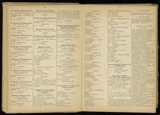 Ie Hoogere Burgerschool » MET VIJFJARIGEN CUESUS . Keizersgracht over de Westermarkt , 177 Schoolgeldregeling : Zie Gymnasia van Amsterdam . DIRECTEUR . Dr . S . C . Bokhorst . 8e Hoogere Burgerschool . MET VIJFJARIGEN CURSUS . Koelof Eartstraat 1 . Schoolgeldregeling : Zie Gymnasia van Amsterdam . DIRECTEUR . Dr . H . H . Buzeman . 3e Hoofere Burgerschool . MET VIJFJARIGEN CURSUS . Mauritskade 58 . Schoolgeldregeling : Zie Gymnasia van Amsterdam . DIRECTEUR : Dr . G . C . Gerrits . 4e Hoogere Burgerschool . MET VIJFJARIGEN CURSUS . HULPSCHOO LGE BOUW . Jozef Israëlskade 45 . Schoolgeldregeling : Zie Gymnasia van Amsterdam . DIRECTEUR . Dr . E . Rijpma . Se Hoogere Burgerschool » MET DRIEJARIGEN CURSUS . Zocnerstraat 23 . Schoolgeldregeling : Zie Gymnasia van DIRECTEUR . Dr . J . Ruinen . Se Hoogere Burgerschool . MET DRIEJARIGEN CURSUS . Lhinamsstraat 137 . Schoolgeldregeling : Zie Gymnasia van Amsterdam . DIRECTEUR . Dr . A . J . v . Peach . 4e Hoogere Burgerschool » MIST DRIEJARIGEN CURSUS . Opleiding voor den Handel en klassen met algemeen ontwikkelend programma . P . L . Takstraat 34 . Schoolgeldregeling : Zie Gymnasia van Amsterdam . DIRECTEUR . Dr . D . M . E . Habbema . Hoogere Burgerschool » VOOR MEISJES . VIT VIJFJARIGEN CURSUS . Euterpestraat 85 . Schoolgeldregeling : Zie Gymnasia van Amsterdam . DIRECTRICE . Mej . W . G . Kernkamp . 28 Hoogere Burgerschool » MET VIJFJARIGEN CURSUS MET GEWIJZIGD LEERPLAN voorheen Ie Openbare Handelsschool » Raamplein 1 . Schoolgeldregeling : Zie Gymnasia van Amsterdam . DIRECTEUR . Dr . J . A . Bruins . Hoogere Burgerschool » VET VIJFJARIGEN CURSUS HET GEWIJZIGD LEERPLAN voorheen Se Openbare Handelsschool » Pieter Lodewijk Takstraat 38 . Schoolgeldregeling : Zie Gymnasia van Amsterdam . DIRECTEUR . Dr , F . G . Schuringa . Handelsscholen » met 8 - en 5-jARiGEN cursus . Der Slichting : • Middelbaar Handelsonderwijs ". BESTUUR . L . J . G . v . d . Maesen , Voorzitter . J . Ch . J . Hfitter , Secretaris . A . P . de Ruiter , Penningmeester . S . van Adelsbergen . I . de Lieme . G . Drewes . J . J . Korff . W . Rehbock . COLLEGE VAN CURATOREN . Dr . I . H . J . Vos , Voorzitter . Not . A . Bonga . Mr . D . C . Endt . Mej . Mr . C . Frida Katz . Mevr . A . M . Koek — Mulder . DIRECTEUR . J . N . Holtzappel . De scholen zijn gevestigd van Ostade straat 101 . Telefoon 27798 en als • Erkende Handelsscholen " met 3 j . c . en 5 j . c . door de Regeering aangewezen . Spreekuur van den Directeur School Kweekschool voor Onderwijzers en Onderwijzeressen . Nieuwe Prinsengracht 89 . COMMISSIE VAN TOEZICHT . E . Boekman , Weth . v . Onderw , Voort . Mevr . L . A . E . Boele van Sxtite,Secretaresse . Prof . Dr . K . H . Bonman . Dr . D . Herderschee . Prof . Dr . R . H . Woltjer . Mevr . L . C . M . Ketelaar-Struycken . Mevr . M . M . G . SchuringaKamminga-van der Meer . De schoolgeldregeling voor de afdeeling A is overeenkomstig die voor de Gymnasia en de Openb . Middelb . Scholen ( zie pag . 25 ). Het maximum is echter f 200 . Op de afdeeling B bedraagt het schoolgeld voor eene les ƒ 80 , voor twee lessen ƒ 40 en voor drie en meer lessen ƒ 60 per cursus . DIRECTEUR . P . Jansen . De Hervormde H . weekschool voor Onderwijzers en Onderwij zeressen . ( Van de Vereenig . voorChr . Volksonderwijs .) Plantage Middenlaan 27 . BESTUUR : Mr . L . M . de Jong Schouwenburg , Voorzitter . G . C . F . Schoch , Secretaris . Jhr . F . Hooft Graalland , Penningmeester . DIRECTEUR : A . P . Snoep . • Lager Onderwijs » INSPECTIE AMSTERDAM . HOOFDINSPECTEUR in de 2e Hoofdinspectie . P . van Nes Czn , te * s-Gravenhage . INSPECTEUR . A . P . Vooren , te Amsterdam . BUREAU Oosterpark 53 , Tel . 50356 . Geopend op werkdagen van 9—1 uur en van 2—5 uur . Zaterdags van 9—1 uur . van de leden van het Schooltoezicht des Woensdagamiddags van ll/jj-3 uur . ( niet tijdens examens en vacantie ). AMBTENAREN : F . W . van der Bilt . A . Nagtegaal . SCHOOLOPZIENERS . Ressort A J . F . Luycx . „ B S . Anema . , C Mej . C . M . den Boer . Commission tot wering van Schoolverzuim . RESSORT I . P . Wagenaar . W . M . M . Moonen , Ir Secretarie . Joh . H . Straub . G . P . J . Starrenburg . G . P . N . Westenbroek . RESSORT II . S . E . Asscher . G . H . de Jong . H . Holtrop , Ie Secretaria . E . Bakker . Mevr . A . Udink-Christen . RESSORT Hl . J . F . Finkemeier . P . van Soeren , Ie Secretaris . G . Strijaards . N . G . van der Horst . RESSORT IT . H . Schutte Sr . Th . Bouwer , Ie Secretaris . H . Loohuijs . J . Emous . H . J . van Dqk . RESSORT 8 ., C . Broerse Jr ., A . Huisman , Je Secretaris . T . Boonstra . J . H . G . van Vliet . I . F . W . Burmeister . RESSORT VI . A . G . Mater . J . Z . Kannegieter , Ie Secretarie . K . van Duijker . B . W . Blase.I . Bloch . RESSORT VII . W . H . Eygenhuysen . J . J . Capelle . G . Mnijs , Ie Secretaris . J . Rozeman . RESSORT VIII . J . P . Mackaaij , Ie Secretarie . 3 . Q . C . Machielse . H . A . Scherer . A . B . Ogterop Jr . G . Jongeneel . RESSORT IX . F . A . Gertenbach.Mr . P . F . Swagerman . C . van Altena , Ie Secretaris . H . Lanfermeijer . J . Candel . RESSORT X . A . Blankesteijn . J . Bokma . H . Bredschneyder , Ie Secretaris . N . J . Hoelhamer . C . J . A . Suutendam . RESSORT XI . J . Mantel . C . F . Capelle . J . Nibourg , Secretaris . H . J . Dijkman . L . Gorter . G . J . Asjes . RESSORT DURGERDAM . G . Boom . J - Meij . J . Ritman , \ e Secretaris . L . Visser . S . Honingh Jr . RESSORT NIEUWENDAM . H . G . Smaling . S . Komin . A . van Gaasbeek . J . P . Klinkenberg . B . J . Veerkamp . 29 RESSORT RANSDORP—HOLYSLOOT . D . Koppedraaijer . H . v . Vuure Azn . D . G . Kruse Jzn . H . de Ruig , 1 » Secretarie . RESSORT SOHELLINGWOUDE . J . Pauws . S . van Vuure . Mevr . J . de Vries , Ie Secretaresse . B . Nieuwenhuijse . A . Jong . RESSORT SLOTEN—OSDORP . A . Schaap . W . van Hulsen . H . J . Schuss , Ie Secretaris . J . Hopman . J . J . van der Veldt . RESSORT SLOTEN—OVERTOOM . X . L . van
