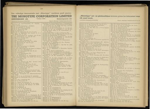 866 867 Een volledige demonstratie met „ Monotype " machines geeft gaarne : THE MONOTYPE CORPORATION LIMITED AMSTERDAM ( C ) Telefoon 43606 Keizersgracht 142 Ingeschreven Handelsmerk MONOTYPE Gezet in „ Monotype " Rockwell aeries 371 en 391 ,, Monotype " zet - en gietmachines leveren prima los letterzetsel voor elk soort werk . - Ingeschreven Handelsmerk MONOTYPE Gezet ia „ Monotype " Rockwell series 371 en 391 Moei ( J . C . de ) Amstelveenscheweg 161 . Kapelaan . Giro M 2524 . Moei ( J . J . W . de ) Sperwerlaan 1 . Melkslijter . Moei ( P . de ) Argostraat 68 . Monteur-i Moei ( P . 6 . de ) Ie Helmersstraat 81 : Moei ( S . de ) Buiksloterdijk 323 . Moelee ( A .) Balistraat 18 . Moelker ( M . P .) Antillenatraat 25 . Giro M 3277 - Moen ( Adr .) van Baerleatraat 112 . Architect B . N . A . Tel . 92343 . Giro M 5853 . Moen ( A .) Hasebroekstraat 34 . Goudsmid . Giro M 969 . Moen ( A .) Hasebroekstraat 111 . Giro M 1166 . Moen ( Mej . A . J .) Overtoom 273 . Moen ( C .) Celsinsstraat 22 . Moen ( Wed . C .) Balth . Floriszstraat 20 . Moen ( D .) Spoorbaanstraat 36 . Kruier . Tel . 54758 . Moen ( E .) Bonairestraat 29 . Giro M 3421 . Moen ( G .) Rijnstraat 25 . Moen ( G .) Texelweg 6 . Moen ( H .) Fokke Simonszstraat 21 . Melkslijter . Moen Jr . ( H .) Stadionweg 300 . Moen Jr . ( H.C ) leWeteringdwarsstr . 66 . Onderw.in de Muziek . Moen ( Wed . H . G . P .) Valeriusstraat 17 . Moen ( H . L . W .) Bonairestraat 29 . Gnso M 728 . Moen ( J .) Celsinsstraat 66 . Moen ( J . C .) van Spilbergenstraat 159 . Moen ( J . C .) Dintelstraat 87 . Moen ( J . H .) Smaragdstraat 37 . Hoofdopzichter der Ge- meente Eleclriciteits Werken . Tel . 21146 . Giro M 2114 - Moen ( J . J .) Vechtstraat 38 . Moen ( KI .) Molenpad 21 . Moen ( L .) Singel 353 . Moen ( P . G .) van Hallstraat 123 . Huis . Secretaris Bond va * Polks- Tuinders . Tel . 84859 . Moén ( P . R .) Geintuurbaan 141 . Giro M 1836 . Moen Jr . ( P . E .) Ceintuurbaan 141 . Giro M 3049 . Moen ( H . J .) Uselstraat 29 . Giro M 475 . Moen ( Wed . W .) Lijnbaanstraat 24 . Moen ( W . A .) Tuinstraat 256 . Moen ( W . C .) Bosch en Lommerweg 48 . Giro M 1355 . Moen & van der Wielen . Keizersgracht 285-987 . Commis- sionnairs in Effecten . Tel . 37768 . Moenking ( K .) Heerengracht 88 . Damesconfectiefabriek . Tel . 44300 . Moens ( A . F .) 2e van der Helststraat 50 . Aanspreker . Moens-Tjarda van Starkenborgh ( Mevr . A . W . L .) Konings- laan 33 . Moens ( C .) Adm . de Ruijterweg 401 . Moens ( F . X .) Waverstraat 62 . Moens ( J .) Thérèse Schwartzestraat 18 . Moens ( J . C . B .) Jan van Eijckstraat 19 . Tel . 24184 . Moens ( K . J .) Baarsjesweg 120 . Behanger . Tel . 83022 . Moens ( K . L .) Rokin 99 . Moens ( N .) Keizersgracht 28 . Moens ( P . H . W . A .) Meeuwenplein 5 . Moens ( Ph . W . A .) van Wonstraat 240 . Moens ( T .) Reguliersdwarsstraat 87 . Verlofhouder . Moens ( W .) Adm . de Ruijterweg 407 . Moens ( W .) Orionplantsoen 19 . Moens ' Handelmaatschappij ( N . V .) Keizersgracht 28 . In Stijfsel , Aardappelmeel . Tarwebloem enz . Tel . 44848,45611 . Moens ' Rijwielmaatschappij . Keizersgr . 23 . Tel . 44848,45611 . Moer-Brusse ( H . van der ) Haringvlietstraat 43 . Tel . 28968 . Moerbeek ( Mej . A . C .) Potgieterstraat 39 . Moerbeek ( A . L .) Hillegomstraat 38 . Giro M 3657 . MoerbeekJr . ( B .) Firma Schmidt & Polman . Prinsengracht 757 . Tel . 37405 . Giro M 607 . Filialen : OvertoomlO?.Tel.80212 , de Clercqstraat 113 . Tel . 82106 . Bier-Comp . Concordia . Moerbeek ( C .) de Clercqstraat 125 . Moerbeek Jr . ( F .) Jac . van Lennepkade 41 . Giro M 2326 . Moerbeek ( F .) Jac . van Lennepkade 41 . Giro M 2293 . Moecbeek- Verburgt ( Wed . G . M .) Biesboschstraat 72 . Giro M 3195 . Moerbeek- Nagel ( Wed . J .) Adm . de Ruijterweg 201 . Moerbeek Jr . ( J .) Adm . de Ruijterweg 201 . Giro M 1839 . Moerbeek ( K .) Schimmelstraat 79 . Caféhouder . Moerbeek ( P . B .) Jac . van Lennepkade 41 . Giro M 1885 . Moerbeek ( W . L . H .) Zomerdijkstraat 13 . Giro M ioi . Moerbeek ( Mej . W . R .) Potgieterstraat 39 . Moerbeek ( Gebr .) Schimmelstraat 79 . Scheepsbouwer !. Tel . 80327 . Giro M 397 . Moerbergen ( E . G .) Middenweg 117 . ( Vm . Wgrmeer ). Moerdijk ( I .) Katwijkstraat 10 . Moerdijk ( M . W .) Levantkade 1 . Adj.-Chef der Etabl . K . N . S . M . Tel . 44233 . Moerei ( A .) Weteringschans 221 . Moerei ( A . A .) Raphaelplein 5 . Mleclrotech *. Ingenieur . Tel . 26934 . Moerei ( E . M .) Hendrik Jaoobszstraat 50 . Moerei ( H .) Hendrik Jaoobszstraat 50 . Giro M 3555 . Moerei ( W . A .) J . J . Viottasfraat 19 . Tel . 28126 . Kantoor : Koningsplein 14 . Advocaat en Procureur . Tel . 34335 . Moerenhout Jr . ( H . W .) Olympiaweg 111 . Behanger en Stoffeerder . Moerenhout ( W . H .) Reyer Anslostraat 20 . Ie Etage . Behanger en Stoffeerder . Tel . 80685 . Giro M 2719 . Moerke ( E .) Aurikelstraat 112 . Moerkens ( P . J .) Beukenweg 28 . ' Ryksveldwachter . Moerkerk ( C . H .) Pijnackerstraat 80 . Moerkerk ( G .) Nieuwe Looiersstraat 124 . Moerkerk ( H .) Amstelveensebeweg 54 . Giro M 2453 . Moerkerken ( J .) Nieuweweg ( Groote IJpolder ) F 246 . ( Voorm . Sloten ). Band-bouwer Moerkerken ( C.J . van ) van der Waalsstraat 95 . Gem . Ambtenaar . Moerkerker ( C .) Aurikelstraat 20 . Moerkoert ( J . G .) Sportstraat 24 Moerkoert ( J . P .) Simsonstraat 18 . Giro M 3758 . Moerland ( On .) Polanenstraat 14 . Moerland ( J .) Clematisstraat 22 . Moerland ( J .) Zaanstraat 17 . Moerland ( K .) Jacob van Lennepkade 170 . Moerland ( L .) Westerstraat 18 . Caféhouder . Moerland ( P .) Admiralengracht 104 . Moerman ( B .) Ombilinstraat 9 . Moerman ( D . K .) Marathonweg 29 . Moerman ( Mej . E . D .) Roelof Hartstraat 26 . Giro M 5480 . Moerman ( H .) Nieuweweg 35 . ( Voorm . Wgr.meer ). Moerman Jr . ( H . A .) Nieuweweg 85 . ( Voorm . Wgr.meer .) Giro M 2817 . Moerman ( H . A .) Veeteeltstraat 56 . Moerman ( H . G .) Javaplantsoen 23 . Moerman ( J .) Adm . de Ruijterweg 255 . Hoofdopzichter der O . E . V . Tel . 81917 . Giro M 2328 . Moerman 