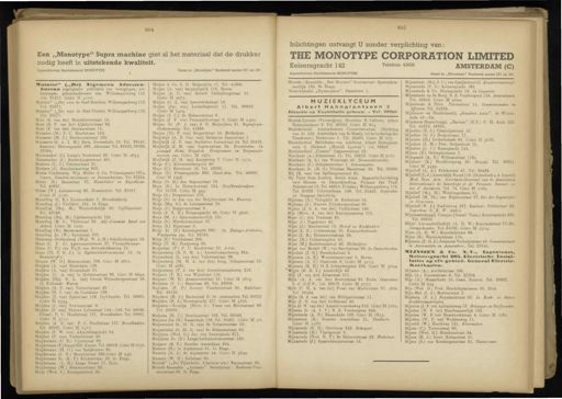 894 895 Een „ Monotype " Supra machine giet al het materiaal dat de drukker nodig heeft in uitstekende kwaliteit . Ingeschreven Handelsmerk MONOTYPE Gezet in „ Monotype " Rockwell series 371 en 391 Inlichtingen ontvangt U zonder verpüchting van : THE MONOTYPE CORPORATION LIMITED Keizersgracht 142 Telefoon 43606 AMSTERDAM ( C ) Ingeschreven Handelsmerk MONOTYPE Gezet in „ Monotype " Rockwell series 371 en 391 Mutator " („ 0e ) Algemeen Adremen bureau dagelijkscbe publicatie van vestigingen , verhuizingen , geboorteadressen enz . Willemsparkweg 112 . Tel . 91077 . Giro M 4100 . Mutator " („ De ) voor de Stad Haarlem . Willemsparkweg 112 . Tel . 91077 . Mutator " („ De ) voor de Stad Utrecht . Willemsparkweg 112 . Tel . 91077 . Muts (&. van der ) Muurbloemstraat 14 . Muts ( G . P . van der ) Kijkduinstraat 93 . Muts ( P . van der ) Zwaluwstraat 13 . Mutsaers ( M .) P . p . Hooftstraat 163 . Mutsaers ( M . J ) Beethovenstraat 136 . Mutsaerts ( G . A . J . M .) Bern . Zweerskade 10 . Tel . 28547 . Kantoor : Heerengracht 388 . Advocaat . Tel . 36630 , 36838 , 37094 . Mutsemaker ( I .) Laing's Neckstraat 20 . Giro M 2673 . Mutsemaker ( J .) Rustenburgerstraat 461 . Mutters ( C . J .) Celebesstraat 21 . Mutters ( J .) Haarlemmerweg 603 . Mutua Confidentia . Wijs Muller & Co . Prinsengracht 707a . Intern . Handels-informatie en Incassobureau . Tel . 37234 . Mutze ( B .) Zaanstraat 27 . Houtvlotter en Expediteur . Tel . 40927 . Mütze ( W .) Aalsmeerweg 86 . Houtvlotter . Tel . 81857 . Giro M 3796 . Muurling ( G . K .) Linnaenskade 2 . Broodbakker ^. Muurling ( J .) Vrolikstr . 134 . Ie Etage . Muurling ( Mej . M .) Westerdoksdrjk 60 . Caféhoudster . Tel . 47040 . Muurling ( Mej . M .) Lijnbaansgracht lib . Muurling ( M . J .) Vlietstraat 38 . Adj.-Commies Raad van Arbeid . Giro M 1220 . Muurling ( N .) Barentszstraat 7 . Muurling Jr . ( W .) Spuistraat 201 . Munrman-Dobbenberg ( Wed . W . A . M .) Schollenbrugstr . 22 . Muus ( C . F . X .) Agamemnonstraat 27 . Vleesschhouwer . Muus ( C . P .) van Tuyll van Serooskerkenweg 15 . Muus ( Th . P . G . J .) Ie Egelantiersdwarsstraat 12 . In Brandstoffen . Muusze ( W . D .) Meeuwenlaan 198 . Giro M 2870 . Muijden ( A . van > Sloterkade 129 . Muijden ( A . van ) Geuzenkade 21 . Muijden ( C . A . van ) Ie Helmersstraat 92 . Giro M 6691 . Muijden ( Mej . E . L . van ) Groote Wittenbtirgerstraat 56 . In Koloniale Waren . Muijden ( S . E . van ) Veeteeltstraat 48 Muijden ( H . I . van ) da Costakade 139 . Muijden ( I . van ) Spuistraat 189 . Caféhouder . Tel . 36965 . Giro M 2554 . Muijden ( J . van ) Newtonstraat 9 . Muijden ( J . van ) Nieuwe Leliestraat 144—146 . Tel . 44840 . Filiaal : P . C . Hooftstraat 127 . Broodbakker . Tel . 20807 . . Giro M 3779 . Muijden ( J . N . van ) P . C . Hooftstraat 127 . Broodbakker . Tel . 20507 . Giro M 1317 . Muijden ( J . W . van ) Admiralengracht 54 . Muijden ( P . van ) Veeteeltstraat 40 . Muijderman ( C . D .) Vijzelstraat 90 . Muijderman ( F .) Singel 233 . Kruier . Tel . 49916 . GIRO M 1676 . Muijderman ( H . O .) van Speijkstraat 90 . Muyderman ( J . H .) Marniistraat 290.GIRO M 930 . Muijderman Sr . ( K . F .) Kinkerstraat 20 . 3e Etage . Muijderman ( L . H .) Lange Niezel 17 . Huis . Muijderman ( W .) Mercatorstraat 93 . Muije ( Wed . J .) Kraaipanstraat 35 . Murjen & Co . J . D . Meijerplein rl . Tel . 41368 . Muijen ( A . van ) Sarpliatipark 113 . Boven . Murjen ( A . C . van ) Gerard Callenburgstraat 31 . Giro M 3075 . Muijen ( C . A . van ) Leeuwerikstraat 18 . Muijen ( Jac . van ) Leidschegracht 11 . Tel . 80022 . Giro M 1404 . Muijen ( J . C .) 2e Helmersstraat 6 . Muijen ( J P . van ) Paramaribostraat 9 . Giro M 2302 . Muijen Jr . ( P . J . van ) J . D . Meijerplein 21 . BegrafenisOnderneming . Tel . 41368 . Muijen ( Th . P . van ) Borgerstraat 54 . Melis/ijler . Muijlwijk ( A . E . Cur . van ) Zacharias Jausestraat 1 . Muijlwijk ( J . F . van ) Zacharias Jansestraat 24 . Tel . 53423 . Muijlwijk ( J . M . van ) Laplacestraat 35 . Houtvlotter . In gezaagd Hout , Heipalen , Houtgraniet - en Torgament vtoeren , enz . Giro M 1970 . Muijlwijk ( J . M . van ) Karperweg 7 . Giro M 1970 . Mnijs ( C .) Kloveniersburgwal 20 . Muys ( C .) Boerstraat 16 . Tel . 23839 . Muys ( D .) Prinsengracht 693 . Huid-Arts . Tel . 48962 . Giro M 1948 . Muijs ( D . H .) Jan Mayenstraat 10 . Muys ( G .) Ie Helmersstraat 124 . Hoofdonderwijzer . Tel . 81706 . Giro M 444 . Muijs ( G .) Borgerstraat 272 . Muijs ( G ) Ie Jan van der Heijdeustraat 54 . Musicus . Muijs ( Mej . G .) de Lairessestraat 76 . Muijs ( J .) Roggeveenstraat 3 . Muijs ( J . N . H .) Prinsengracht 46 . Giro M 3608 . Muys ( M . J .) Spaarndammerdijk 121 . Muijs ( S .) Meerhuizenstraat 26 . Muys ( S .) Rijnstraat 8 . Muijs Jr . ( S ) Keizersgracht 380 . In Elalage-Artikelen , Wasfigurcn enz . Tel . 82788 . Muijs ( S .) Vrolikstraat 295 . Muijs ( T . H .) Postjesweg 85 . Muijselaar ( P .) P . C . Hooftstraat 52 . Artist . Muijsenberg ( B . P . M . A .) Amstelveenscheweg 954 . Muysenberg ( L . van den ) Valeriusstraat 36 . Muijsenberg ( M . M . A . van den ) Burg . Teilegen straat 10 . Giro M 2681 . Muijsenberg ( P . J . van den ) Amstelveenscheweg 318 . Muvjsers ( F . E .) van Wonstraat 110 . Muijsers ( W . H .) Amazonenstraat 51 . Giro M 2815 . Muijsken ( F . C .) Banstraat 86 . Tel . 28809 . Muysken ( F . P .) Roemer Visschersstraat 30 . Makelaar . Tel . 82120 . Muysken ( H . J .) Bachstraat 9 . In Assurantiën . Tel . 28252 . Muijskeu ( H . J .) Heerengracht 477 . GIRO M 5166 . Muijsken — Zeverijn ( Mevr . J .) Frans van Mierisstraat 96 . Tel . 26868 . Muijsson ( H . C .) Deurloostraat 108 . Tel . 90858 . Muysson Jzn ( B .) Nassaukade 119 . Tel . 85421 . Giro M 21 . Muijs winkel Sr . ( G . G . van ) 2e Helmersstraat 50 . Mnijswinkel Jr . ( G . G . van ) 2e Helmersstraat 50 . Muijtjens ( Wed . G .) Jac . van Leunepkade 277 . Muijtjens Jr . ( N .) Lange Leidscbedwarsstraat 136 . Muijzert ( B . F .) Noorder Amstellaan 224 . Muzerie ( H .) Ie Atje
