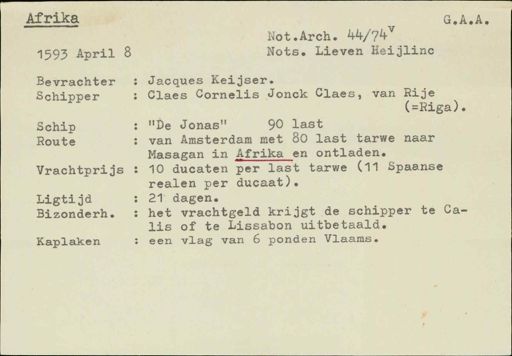 Stadsarchief Amsterdam, archieftoegang 30452, Archief van Simon Hart: (gedeeltelijke) toegang op de notariële archieven, inventarisnummer 351, Regesten van akten in de Amsterdamse notariële archieven en enige andere bronnen. 1578 - ca. 1800, Collectie Hart', 'H' of 'hoofdsysteem'. Regesten geordend op trefwoord. 1578 - 1700, 1711 - ca. 1800, Aardrijkskundige namen, Afrika - Grand Lahou