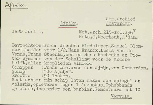 Stadsarchief Amsterdam, archieftoegang 30452, Archief van Simon Hart: (gedeeltelijke) toegang op de notariële archieven, inventarisnummer 351, Regesten van akten in de Amsterdamse notariële archieven en enige andere bronnen. 1578 - ca. 1800, Collectie Hart', 'H' of 'hoofdsysteem'. Regesten geordend op trefwoord. 1578 - 1700, 1711 - ca. 1800, Aardrijkskundige namen, Afrika - Grand Lahou